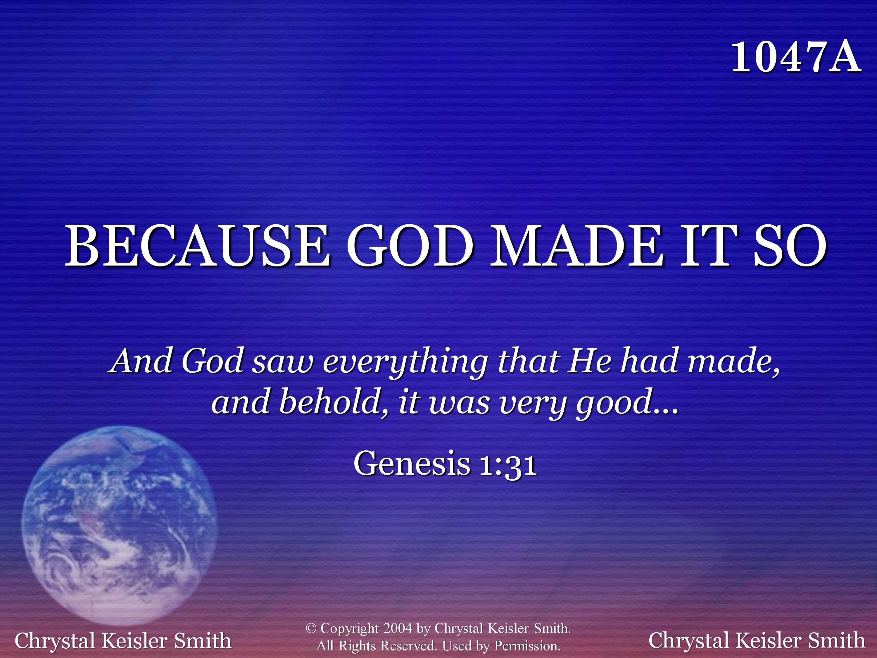 | Title | BECAUSE GOD MADE IT SO |