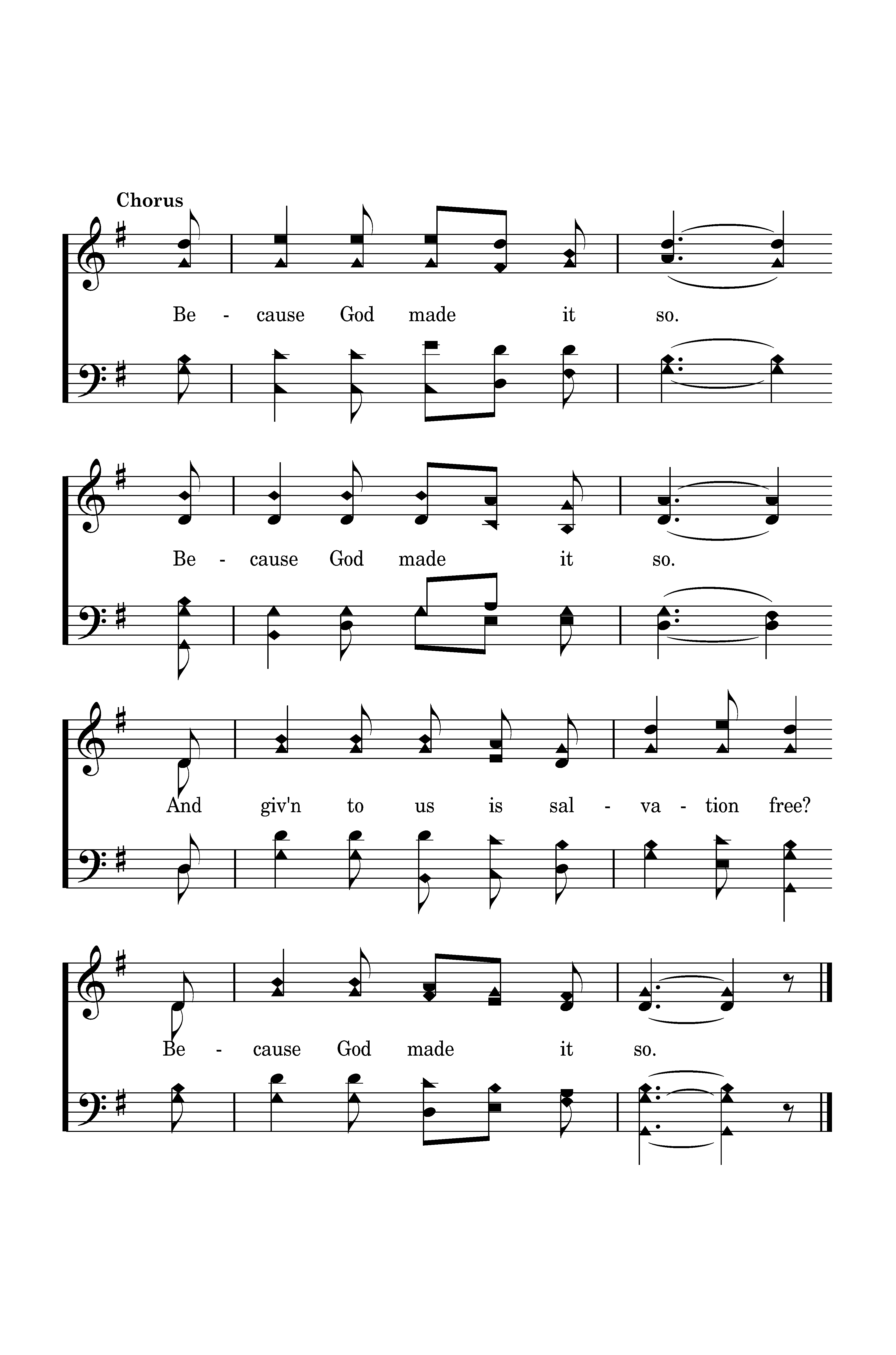 Because God made it so. Because God made it so. And giv'n to us is salvation free? Because God made it so.