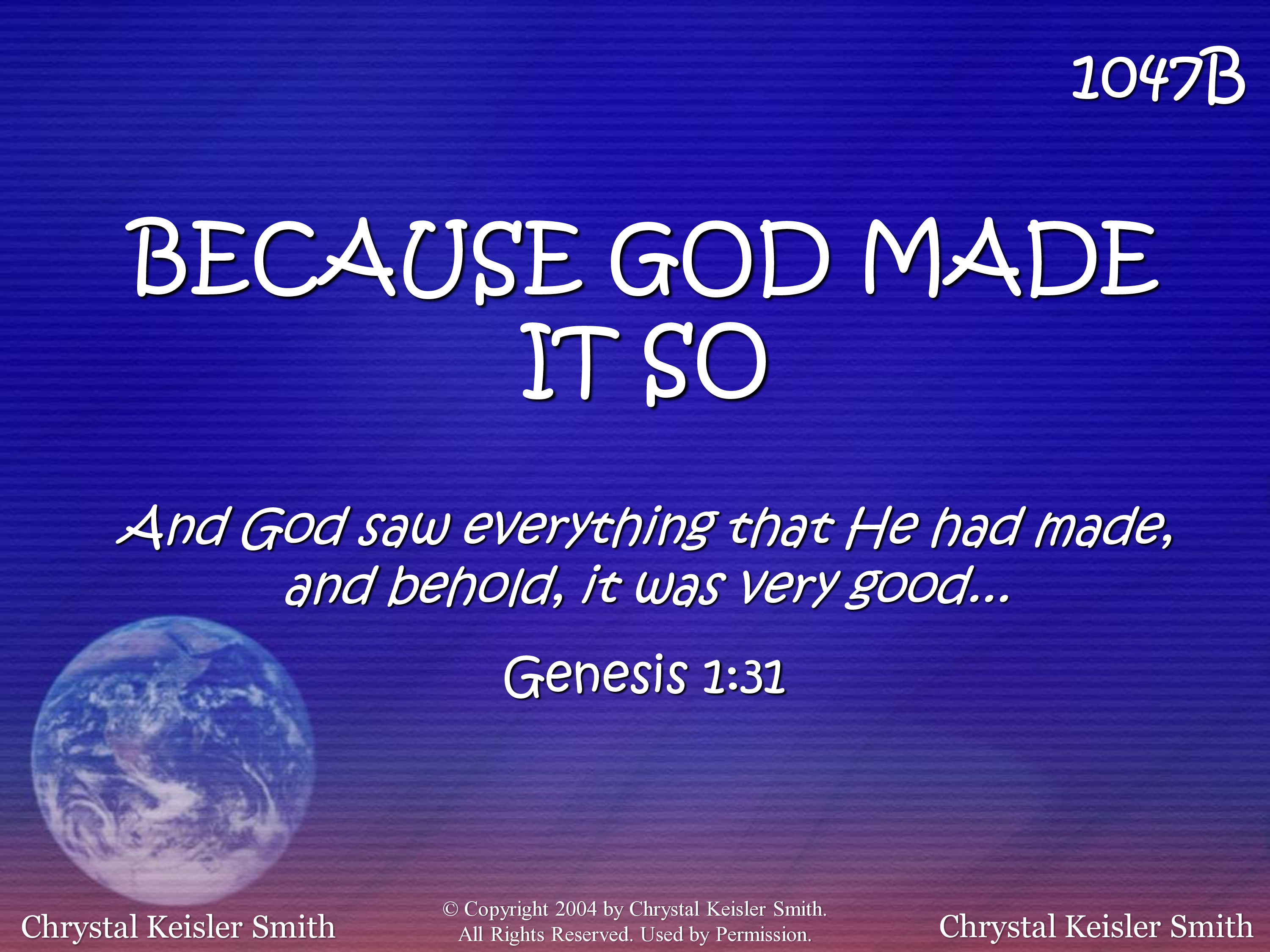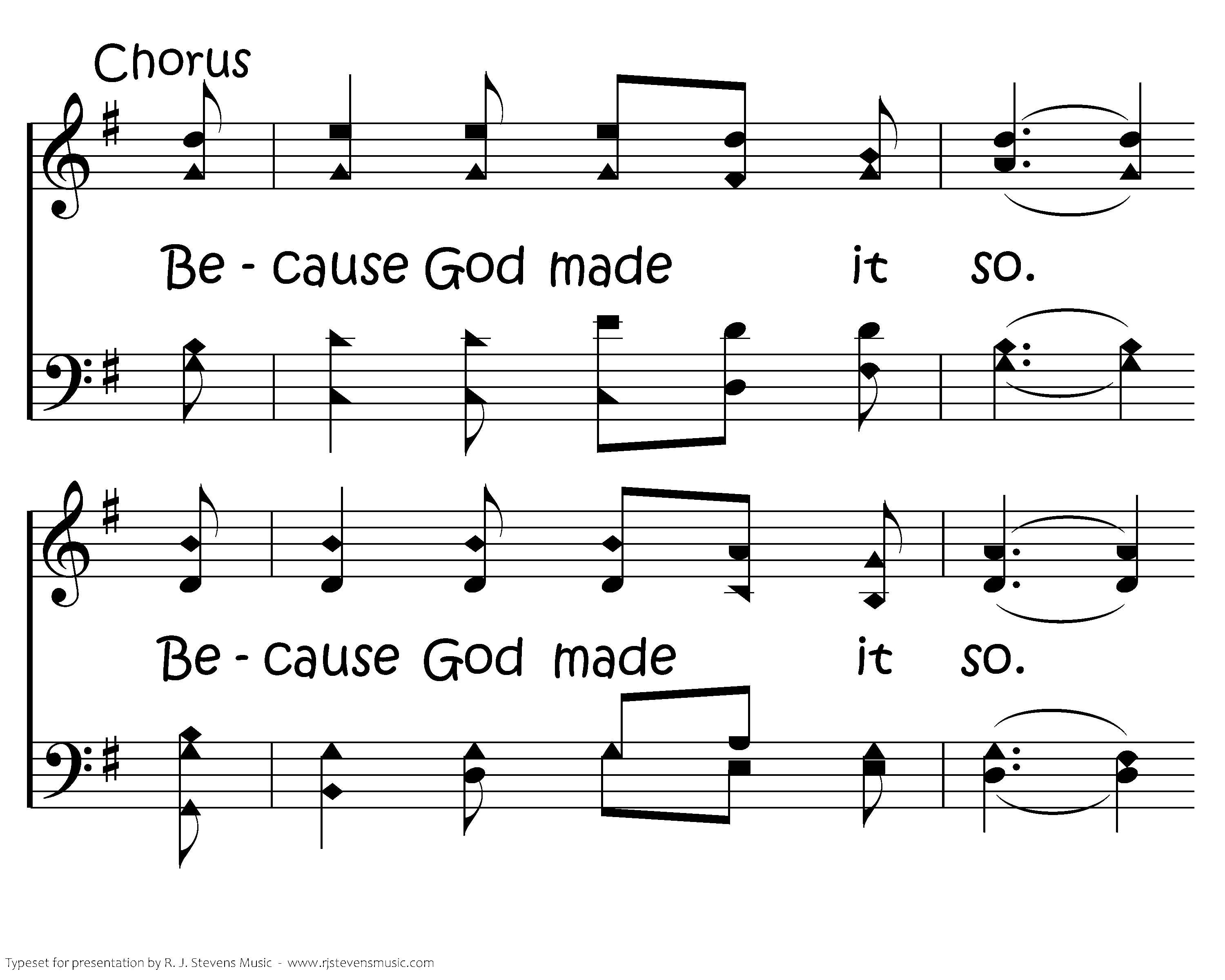 Because God made it so. Because God made it so. And giv'n to us is salvation free? Because God made it so.
