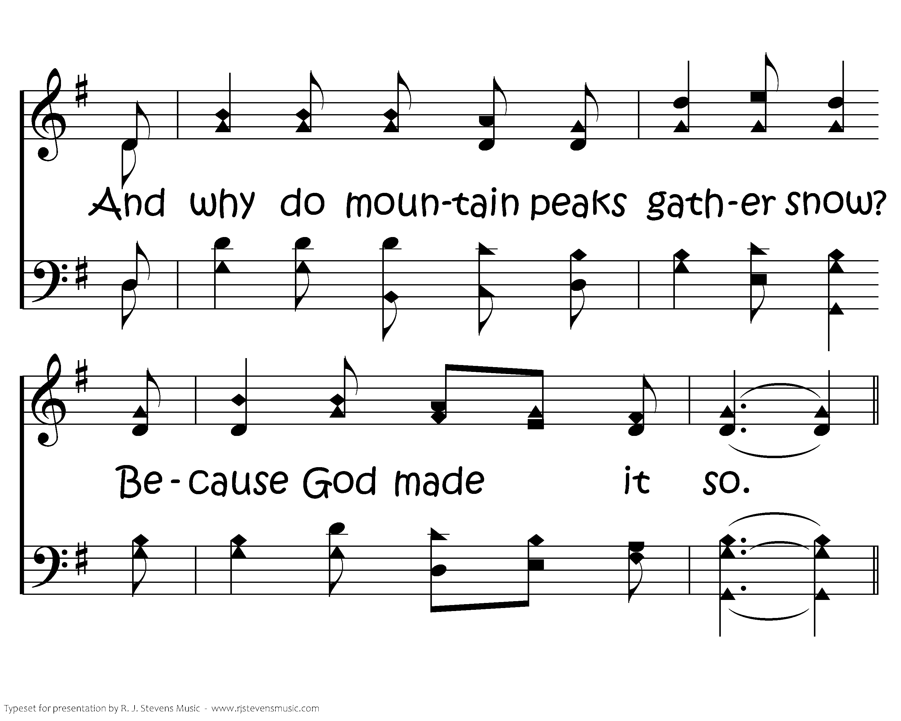 Why does the rain fall on valleys below? Because God made it so. And why do mountain peaks gather snow? Because God made it so.