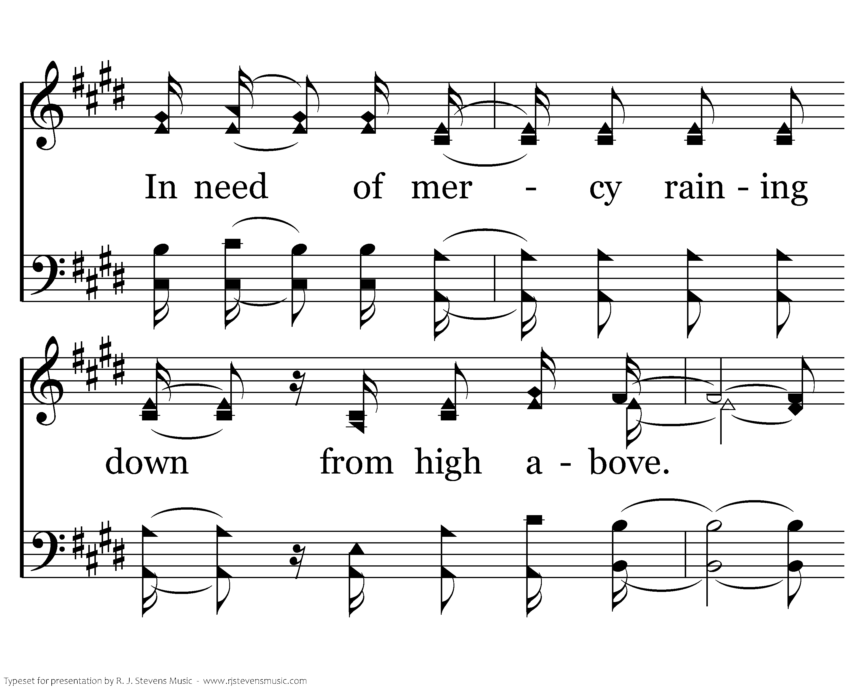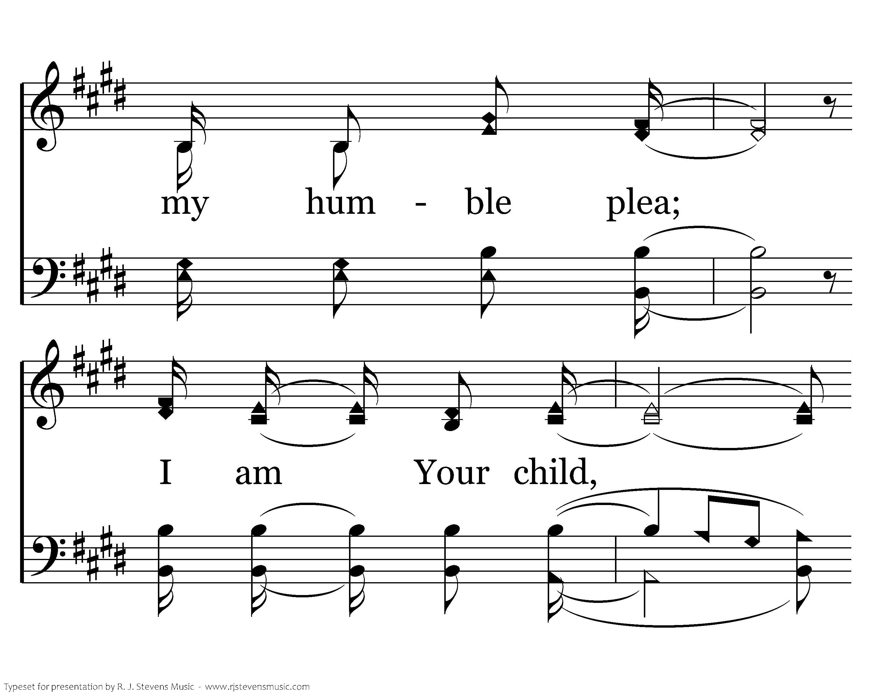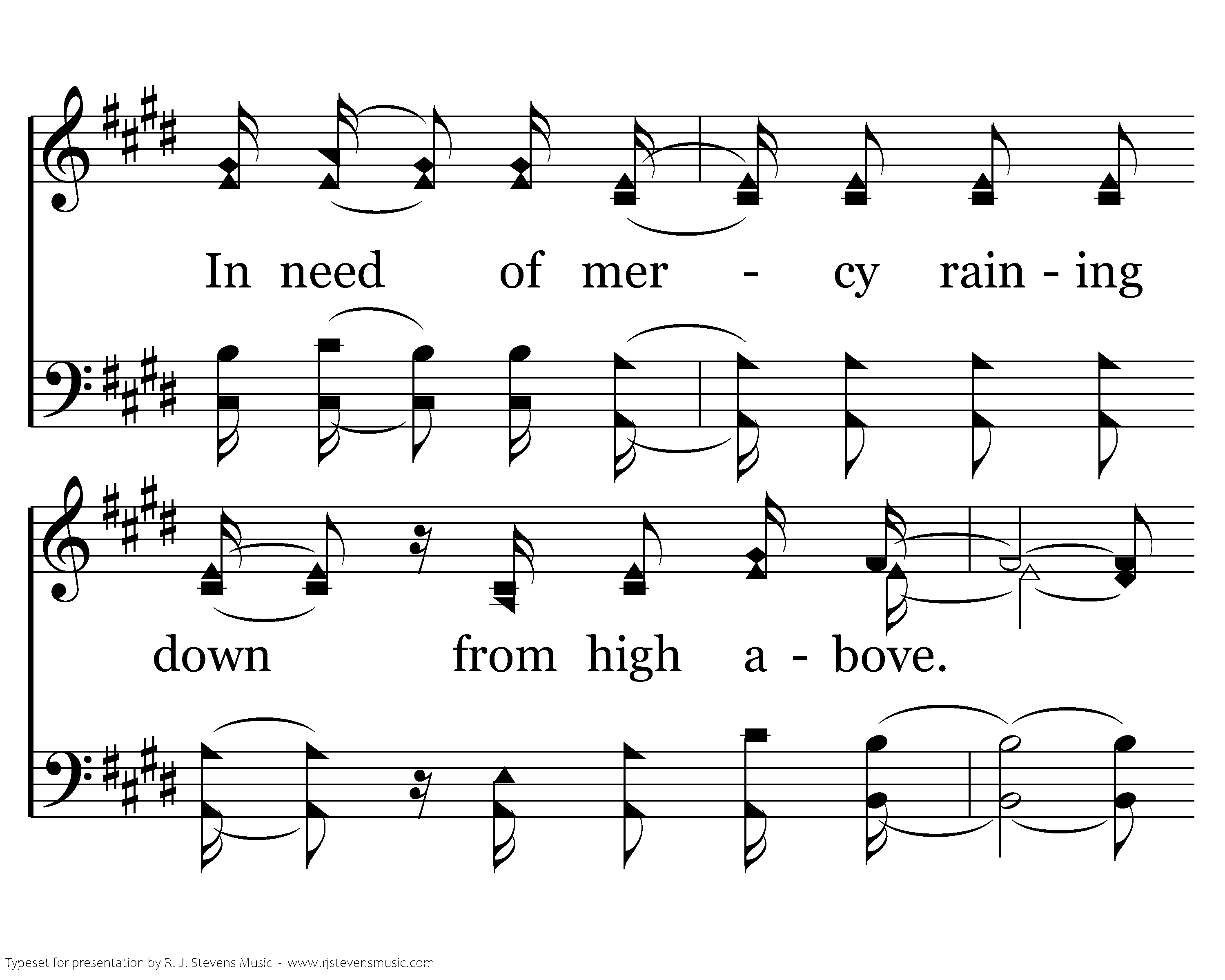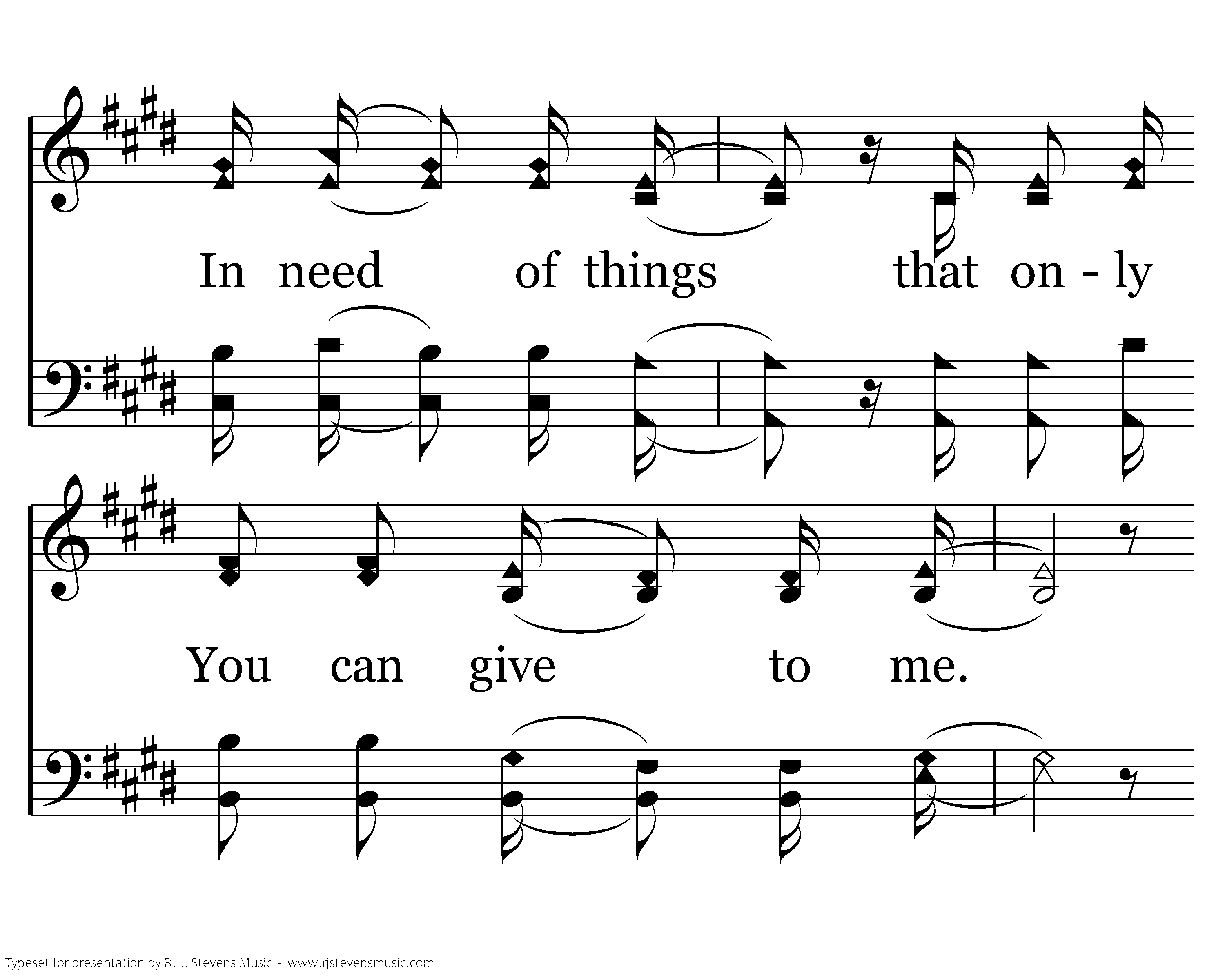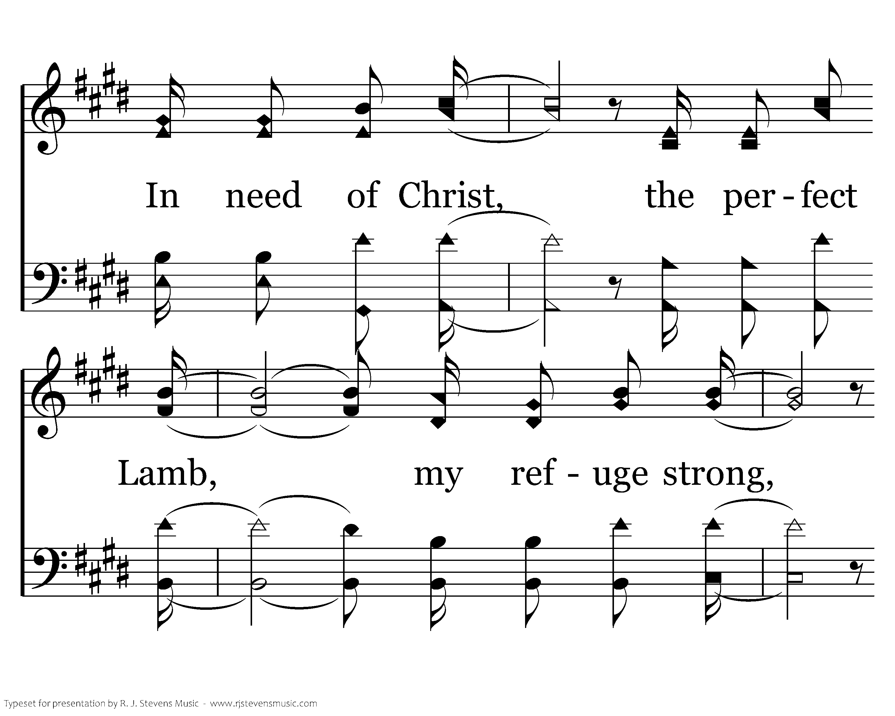 In need of grace. In need of love. In need of mercy raining down from high above. In need of strength. In need of peace. In need of things that only You can give to me. In need of Christ, the perfect Lamb, my refuge strong, the great I AM! This is my song, my humble plea; I am Your child, I am in need. In need of Christ, I am in need. I am Your child, I am in need.