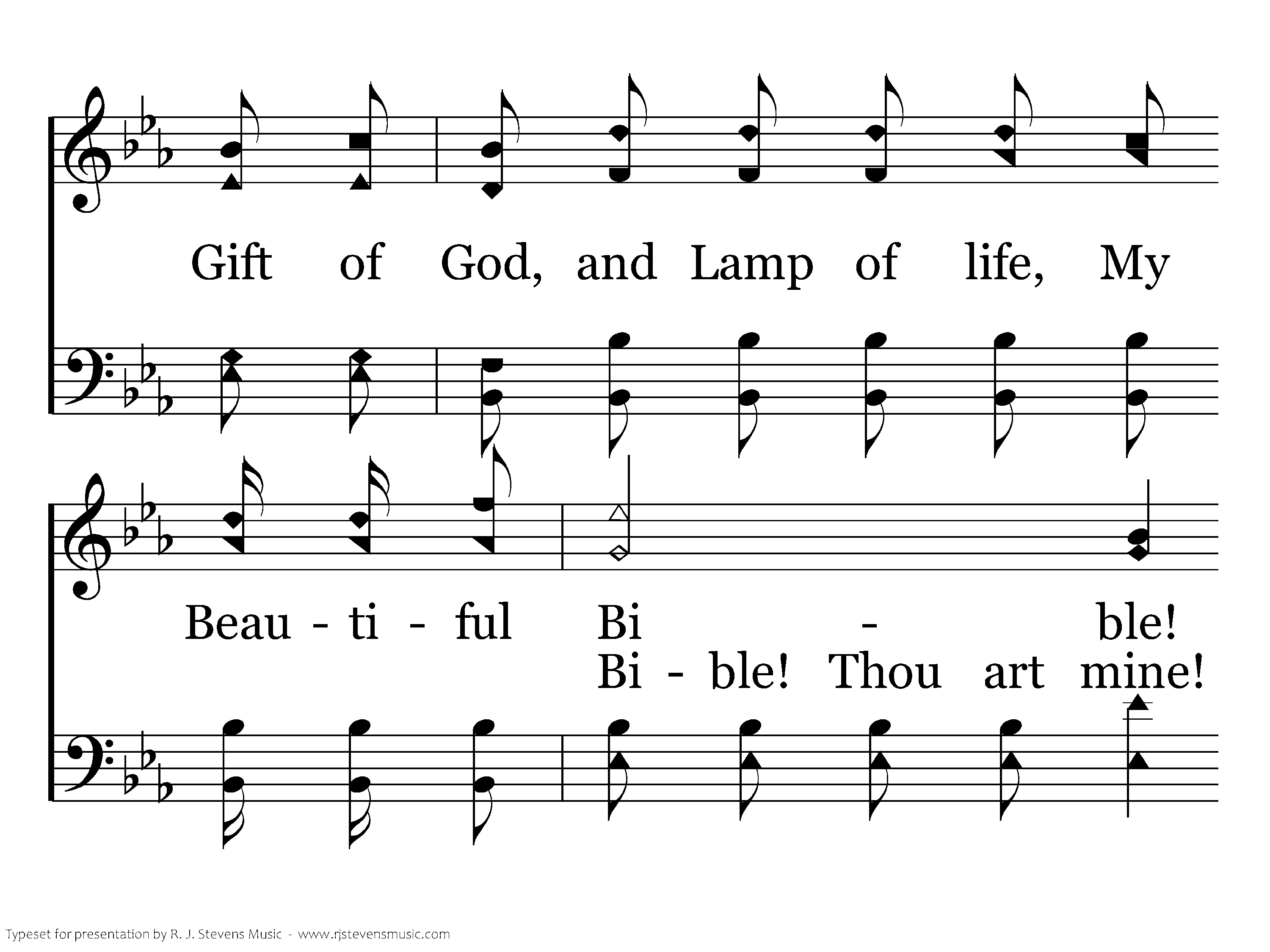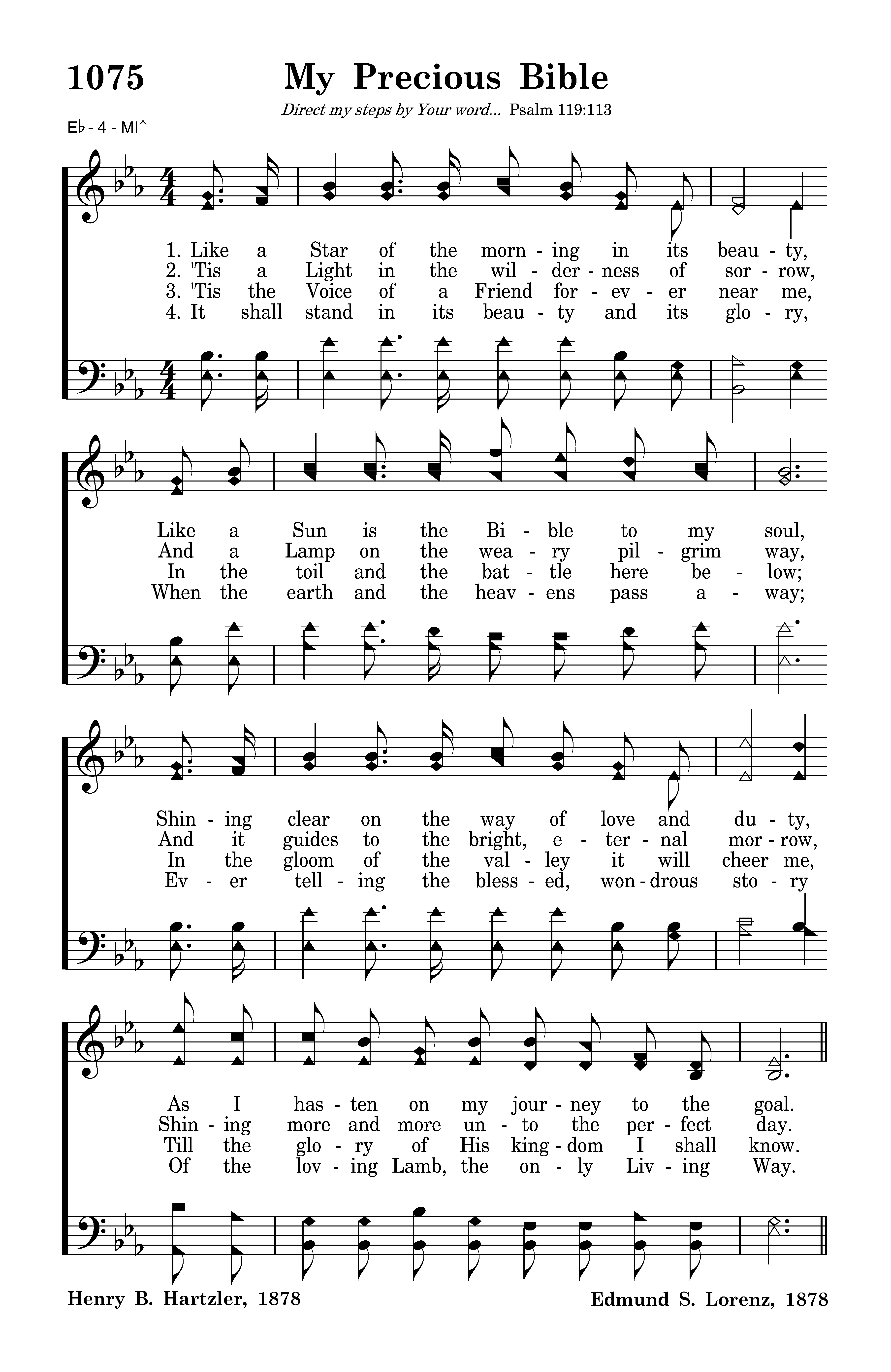 Like a Star of the morning in its beauty, Like a Sun is the Bible to my soul, Shining clear on the way of love and duty, As I hasten on my journey to the goal.
