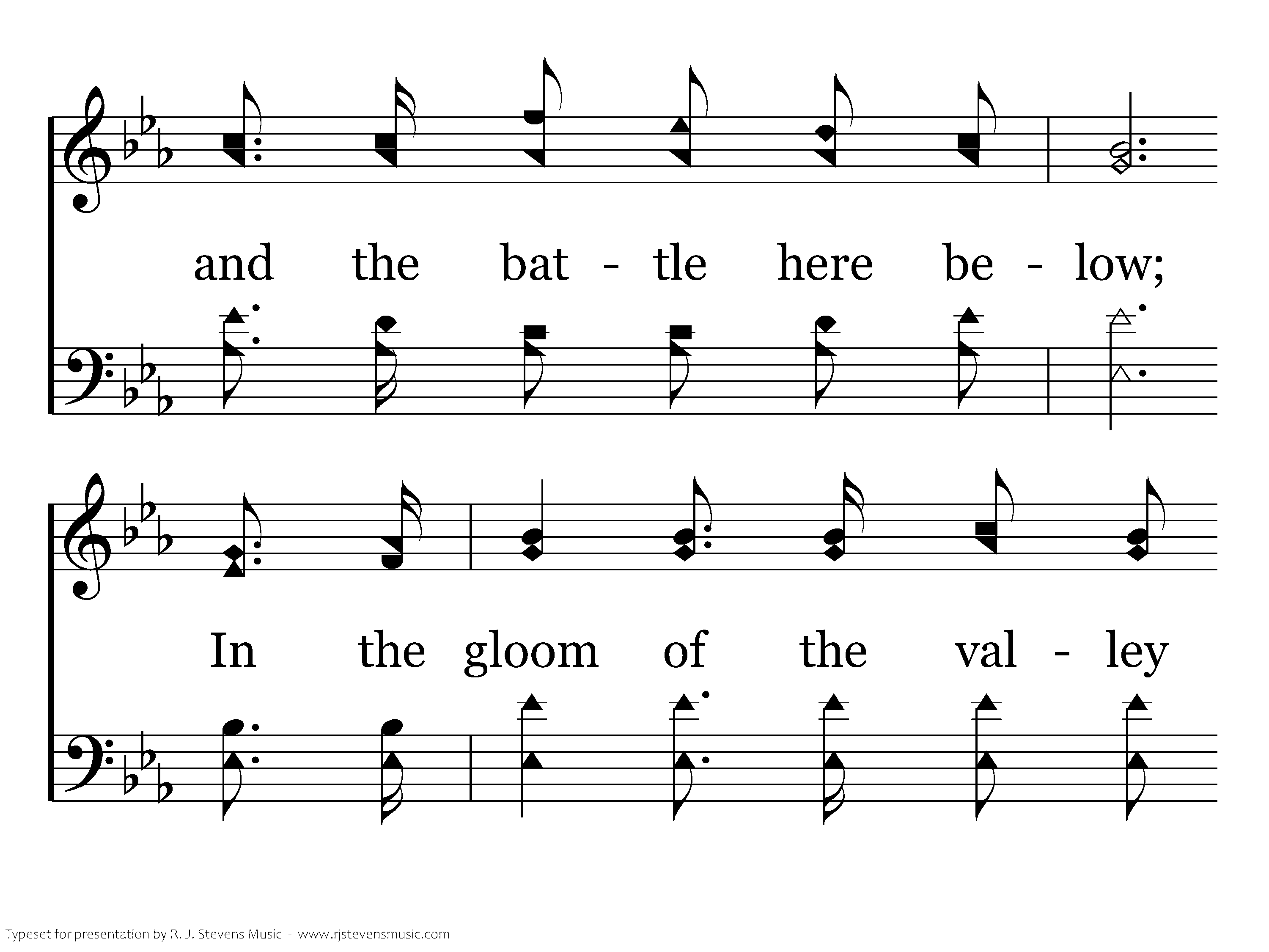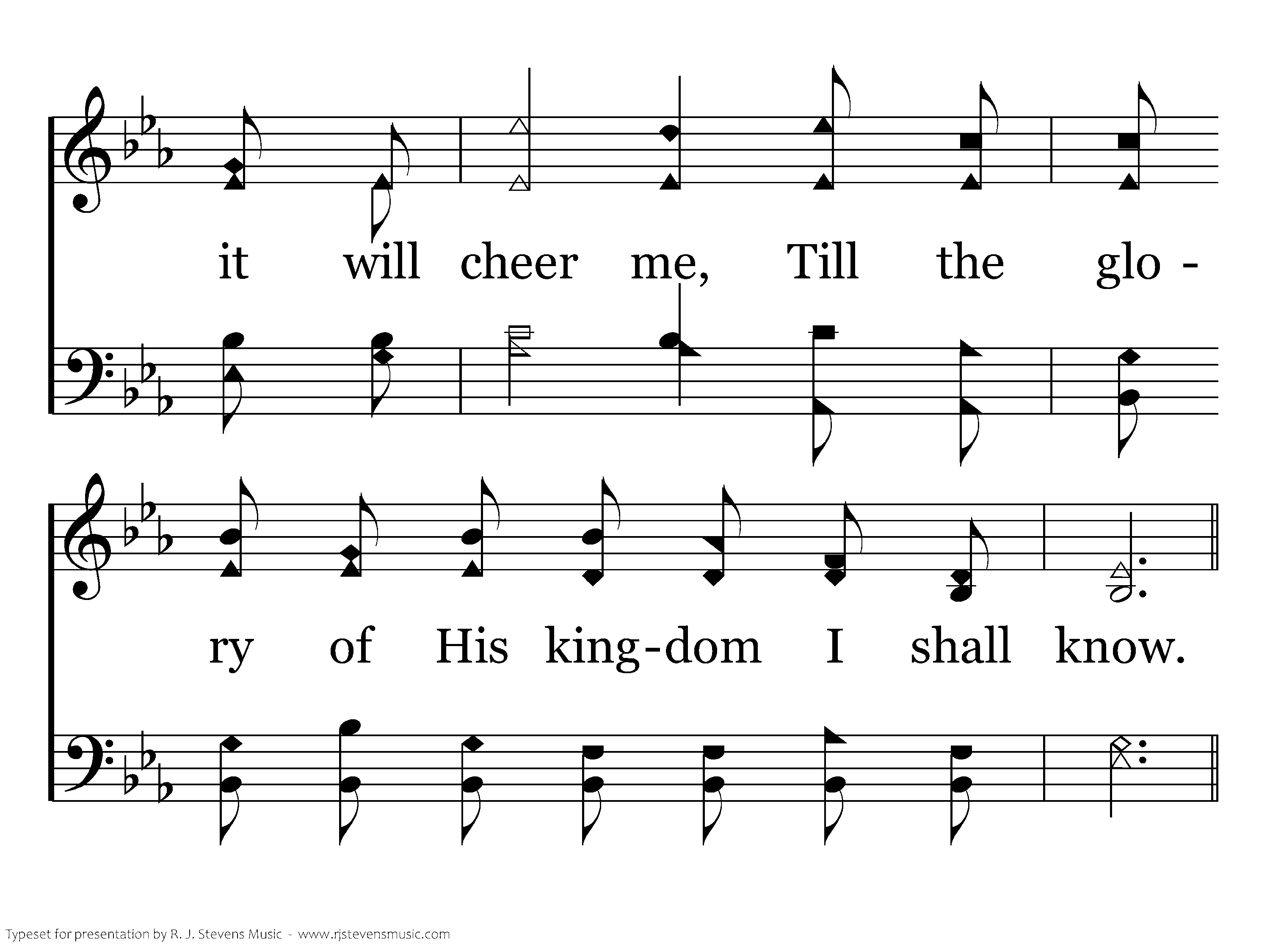 Tis the Voice of a Friend forever near me, In the toil and the battle here below; In the gloom of the valley it will cheer me, Till the glory of His kingdom I shall know.