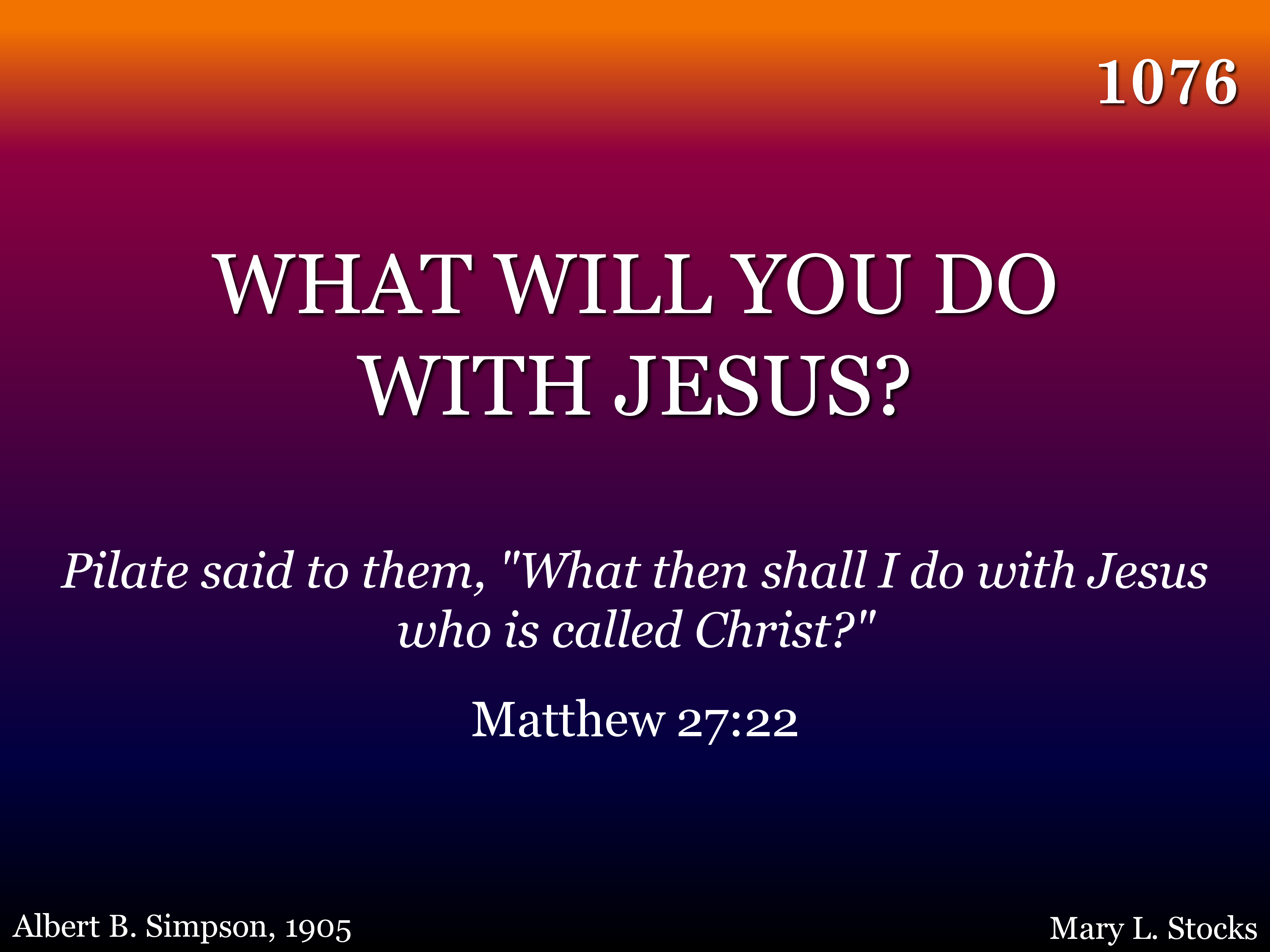 | Title | WHAT WILL YOU DO WITH JESUS |