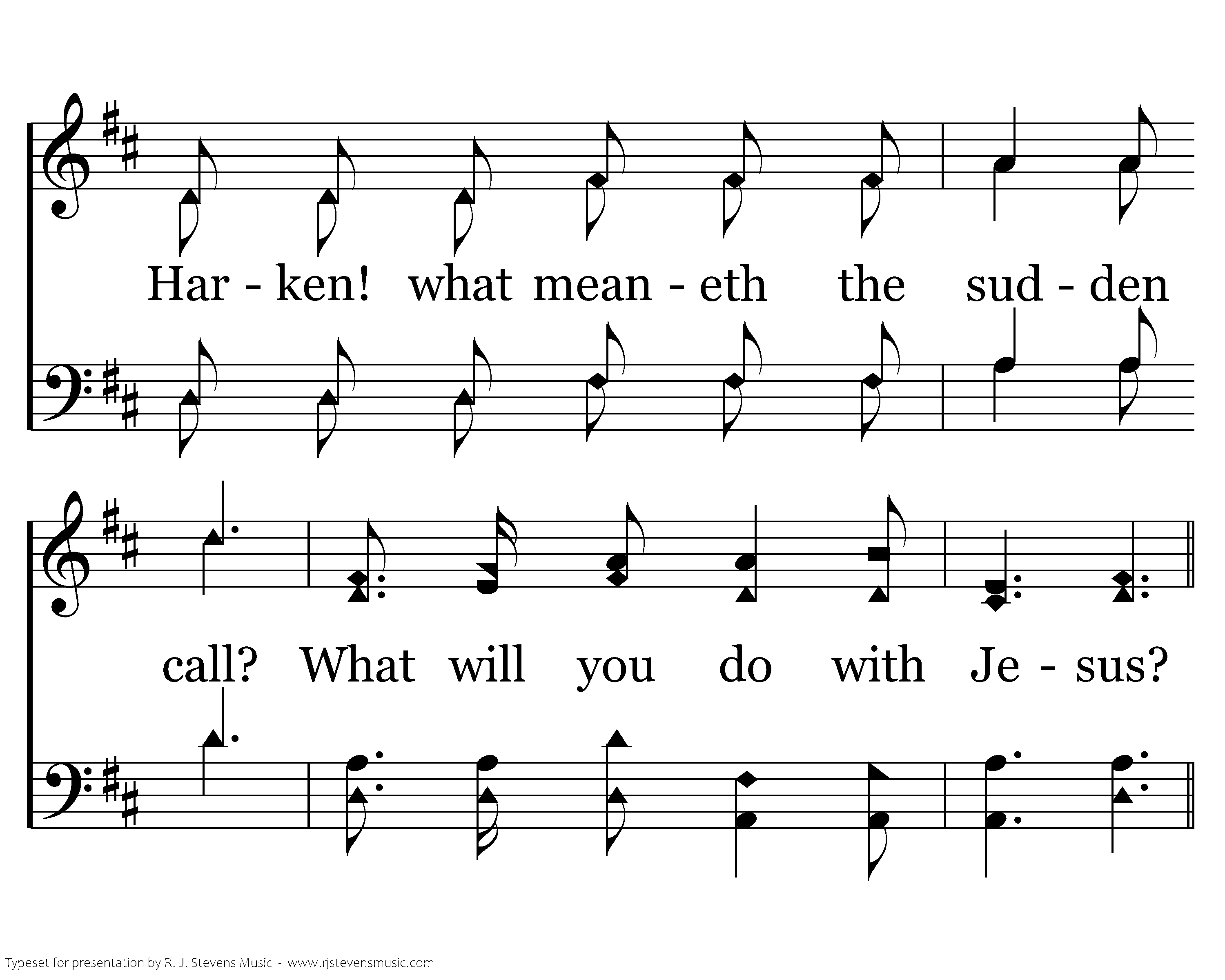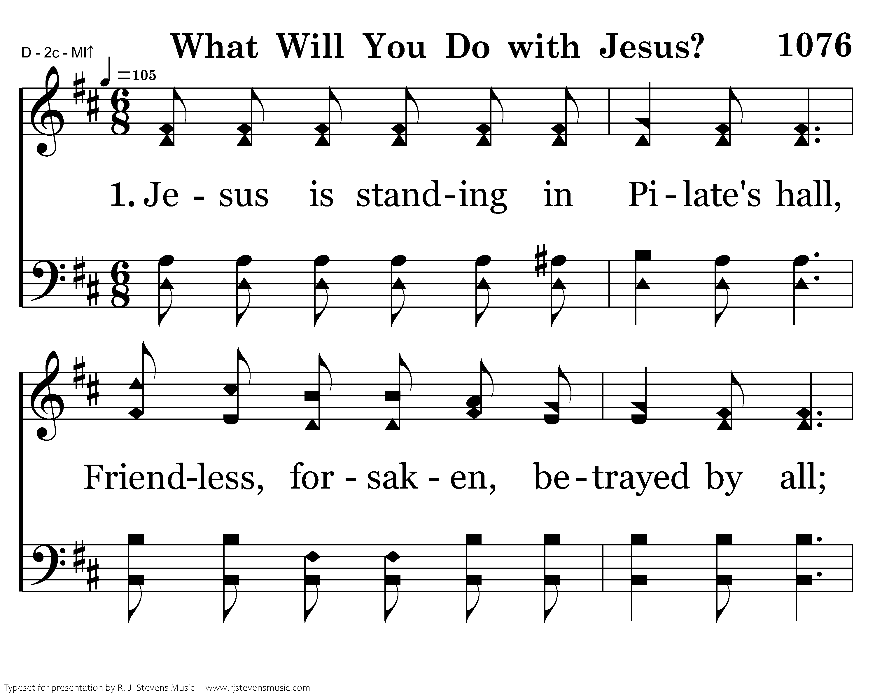 Jesus is standing in Pilate's hall, Friendless, forsaken, betrayed by all; Harken! what meaneth the sudden call? What will you do with Jesus?