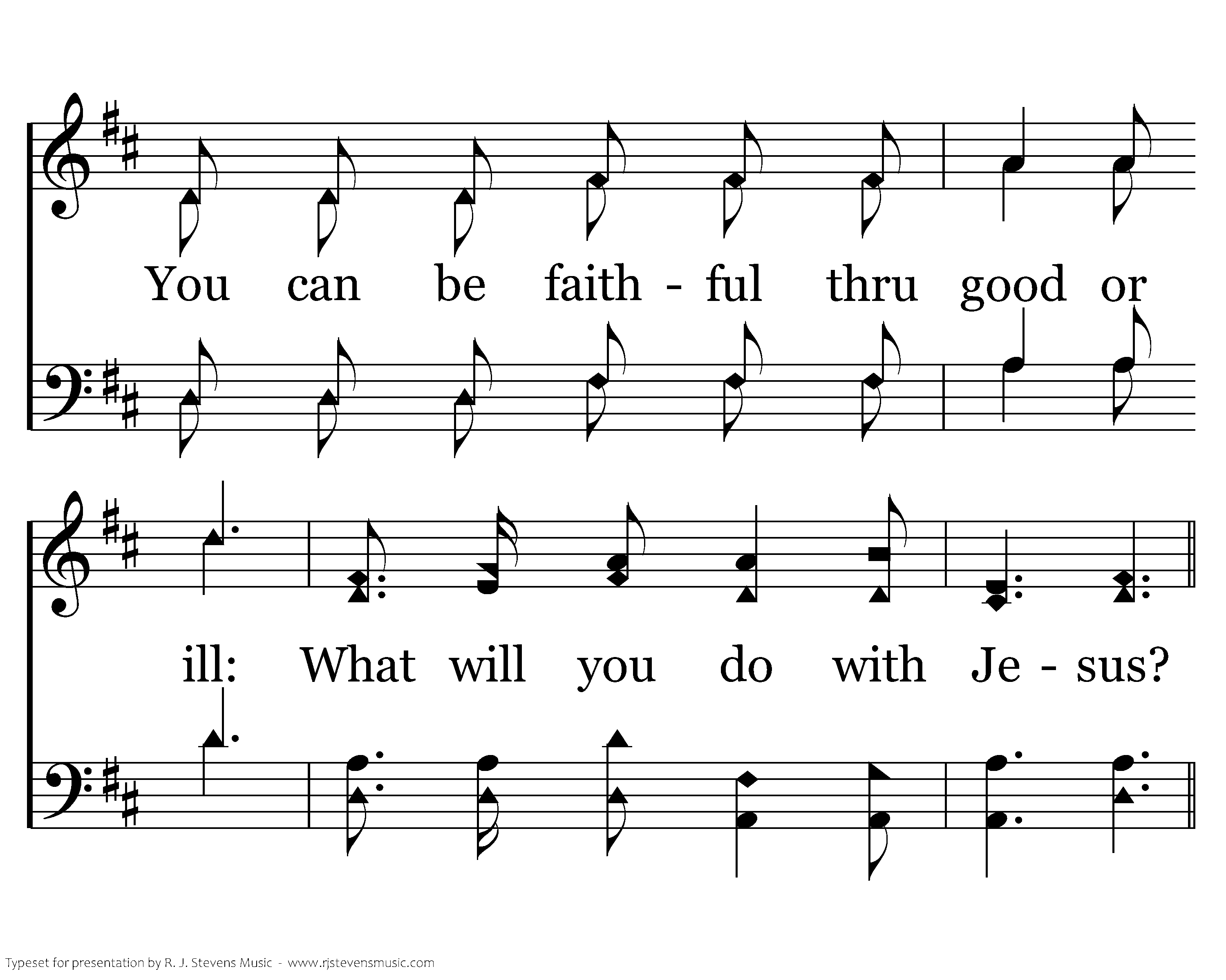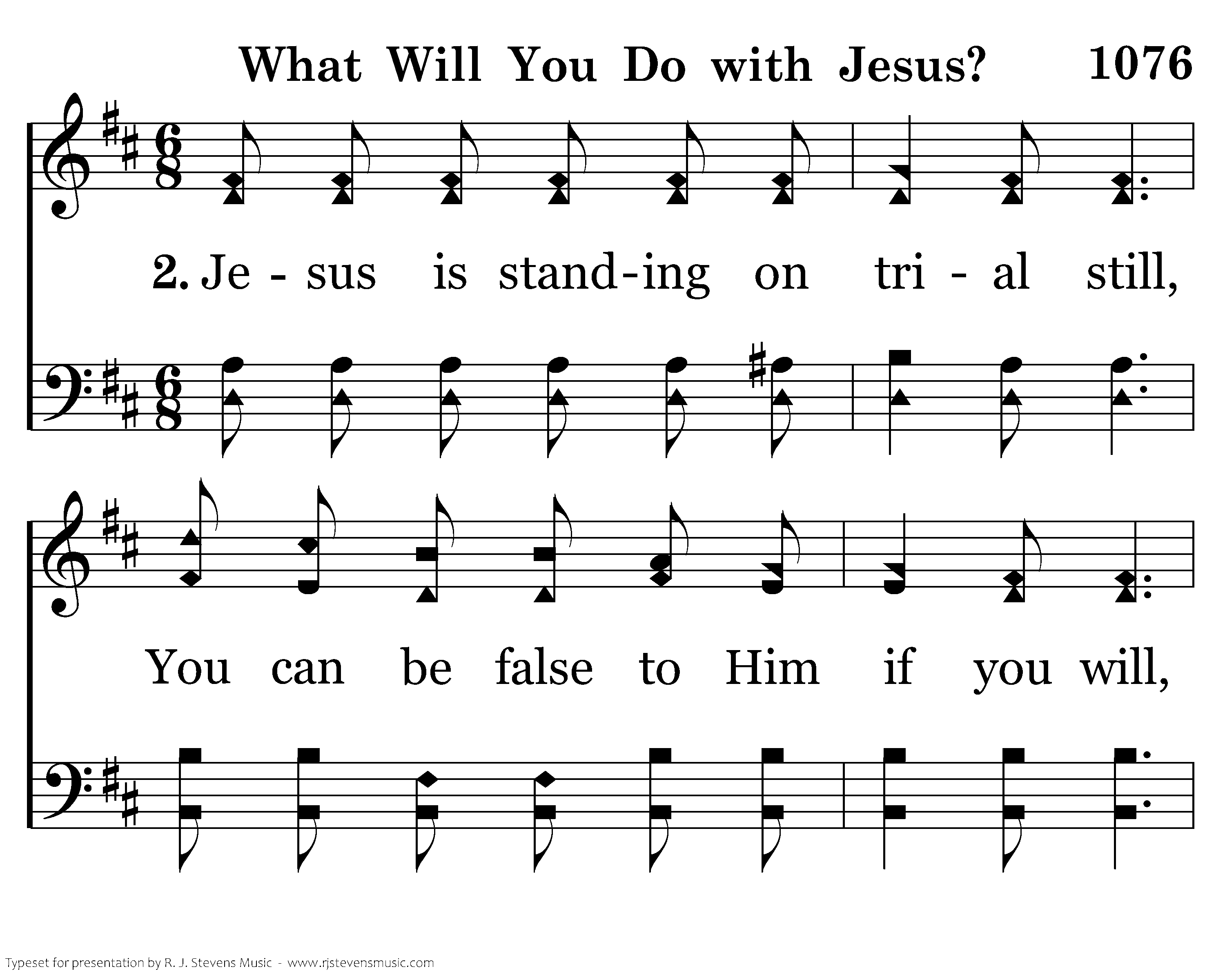 Jesus is standing on trial still, You can be false to Him if you will, You can be faithful thru good or ill: What will you do with Jesus?