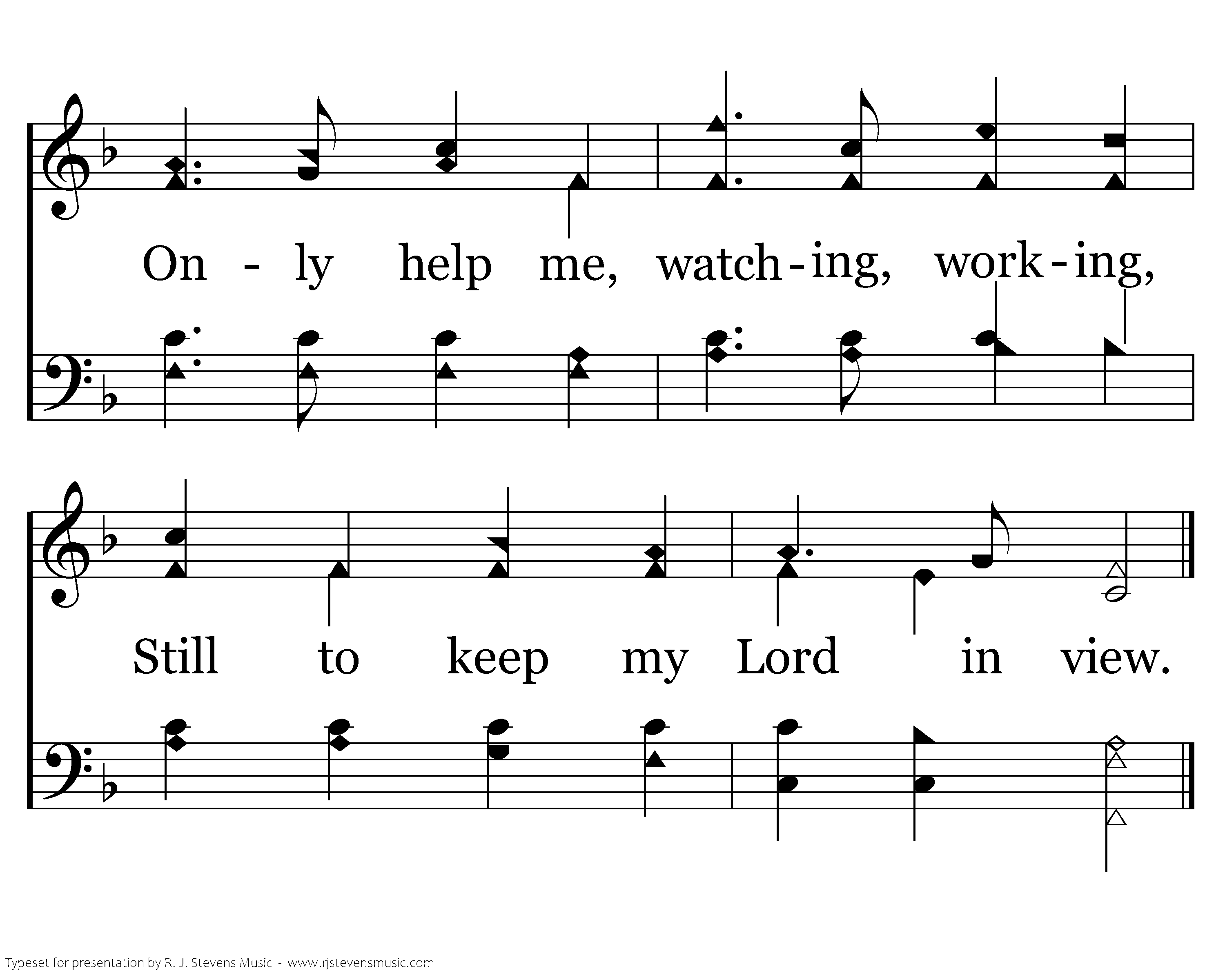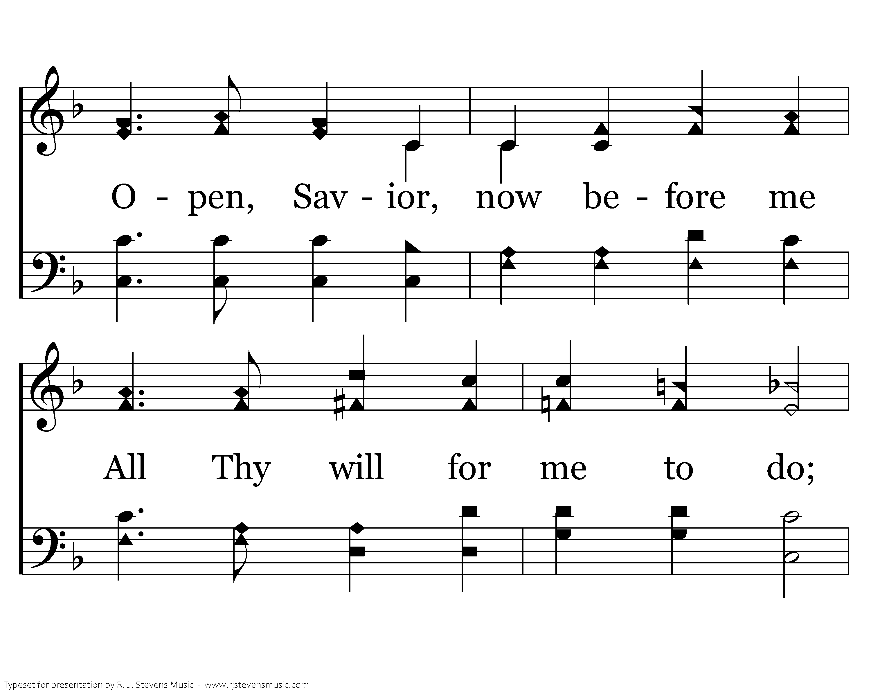 When the noontide falls upon me, With its fervid light-'ning ray, There's a voice divinely earnest, Bids me work while it is day; Open, Savior, now before me All Thy will for me to do; Only help me, watching, working, Still to keep my Lord in view.