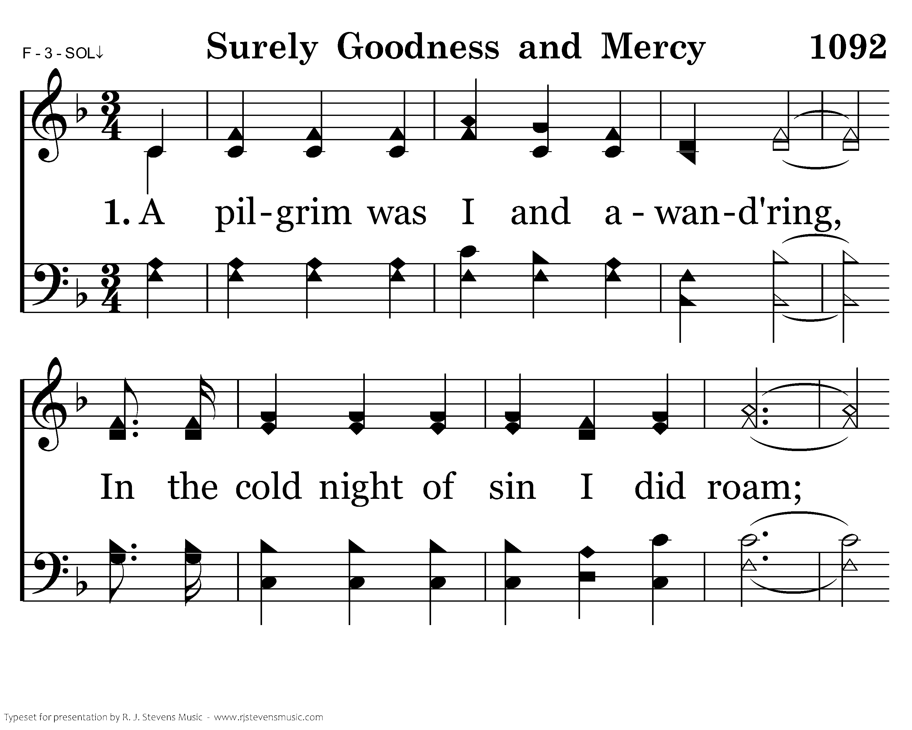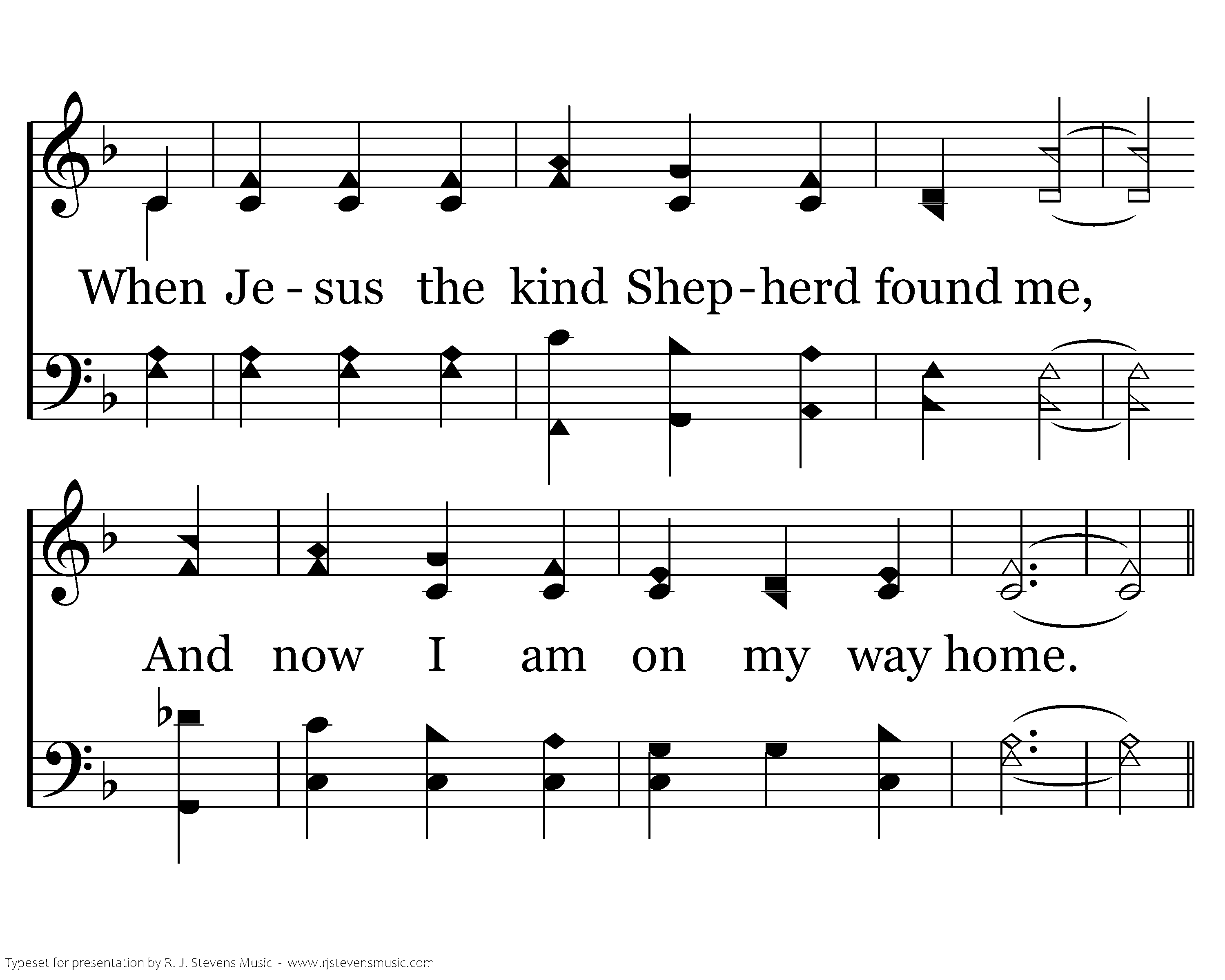 A pilgrim was I and awand'ring, In the cold night of sin I did roam; When Jesus the kind Shepherd found me, And now I am on my way home.