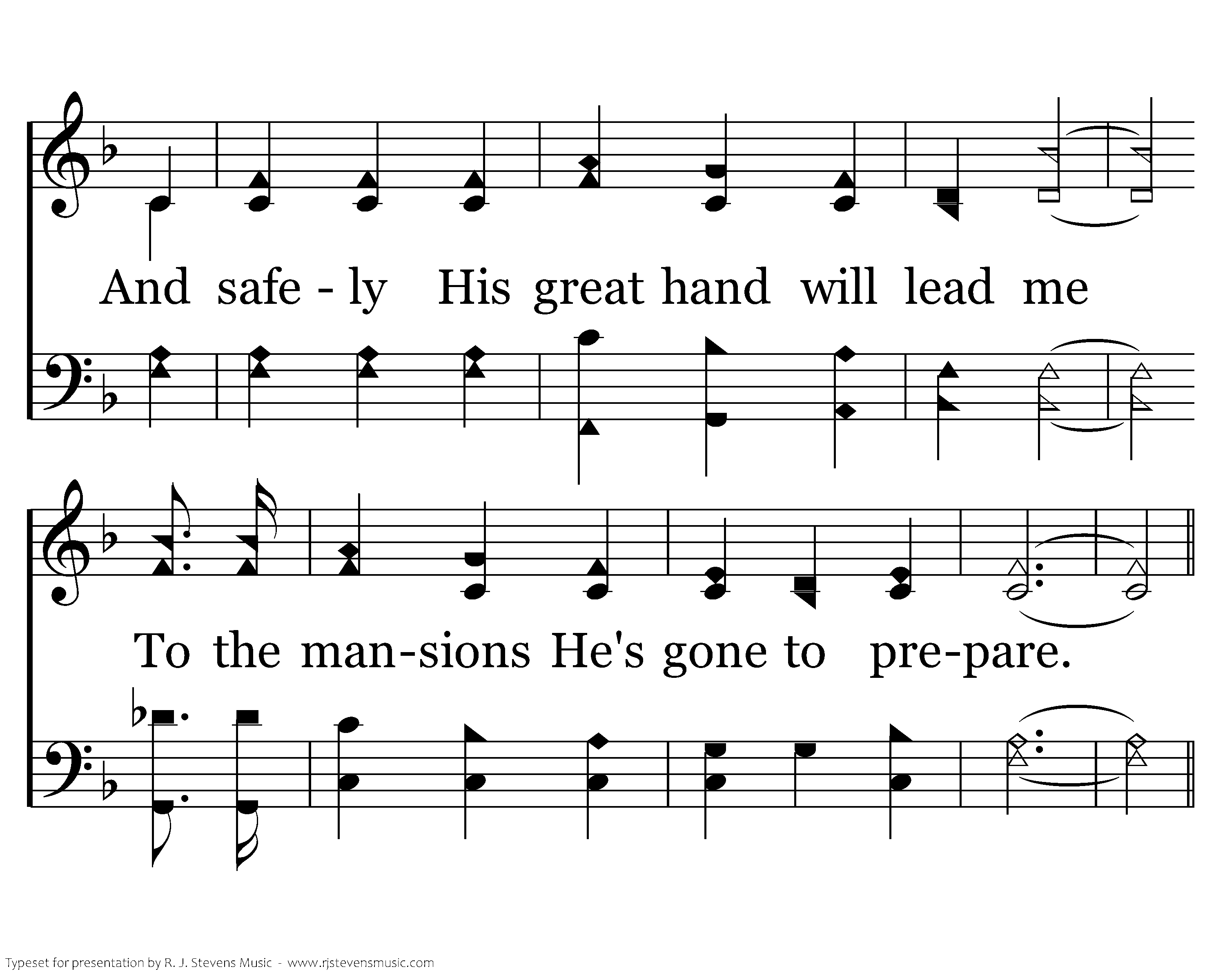 When I walk thru that dark lonesome valley, My Savior will walk with me there; And safely His great hand will lead me To the mansions He's gone to prepare.