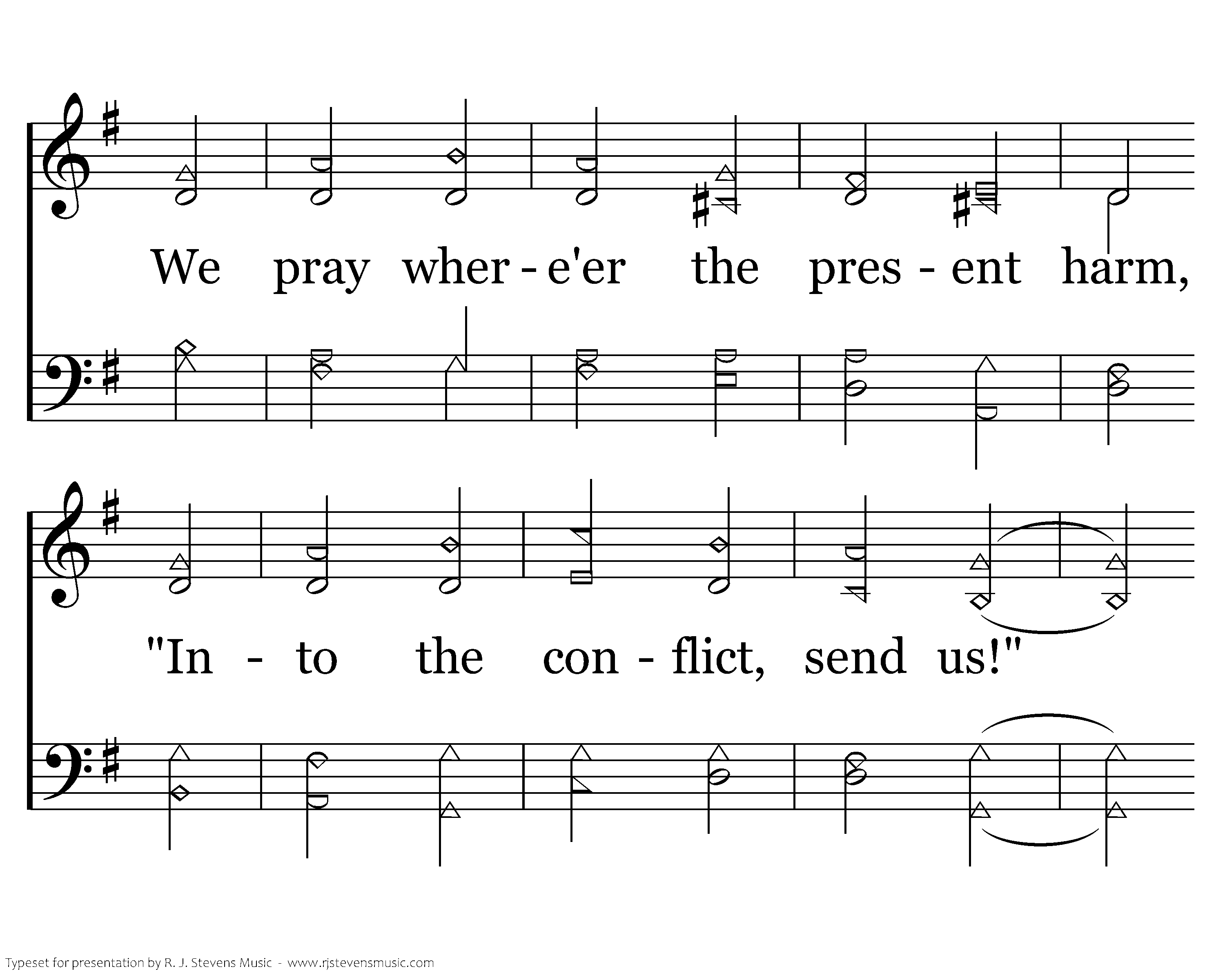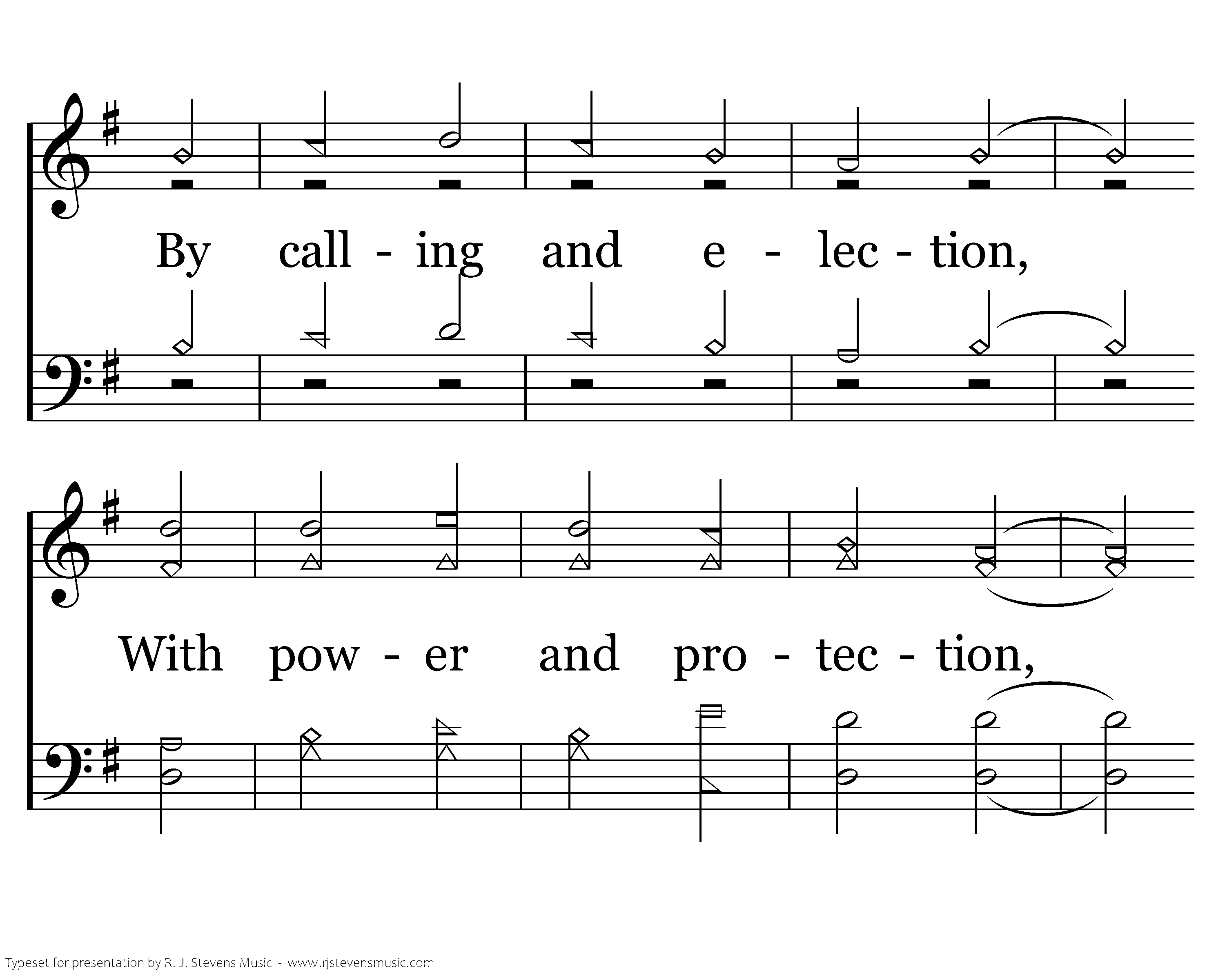Almighty God, whose outstretched arm Is certain to defend us, We pray where'er the present harm, "Into the conflict, send us!" By calling and election, With power and protection, Our cross of duty leads from here To crowns of resurrection.