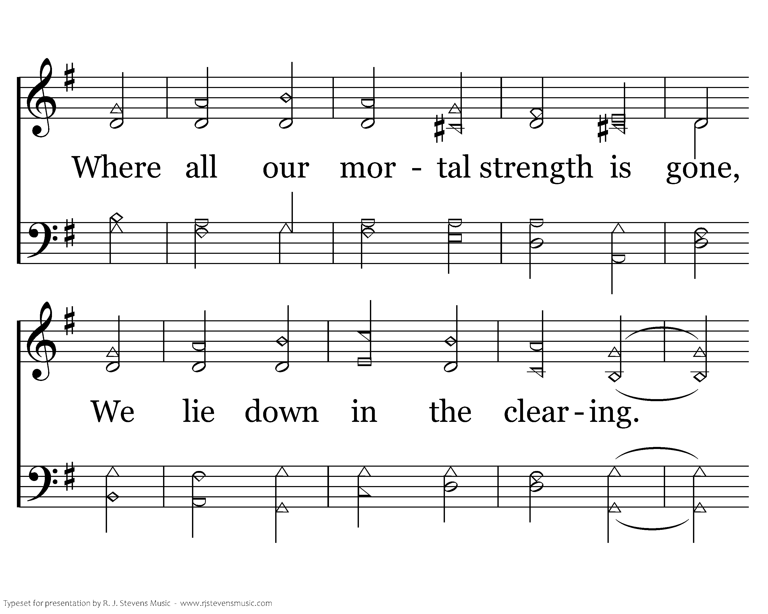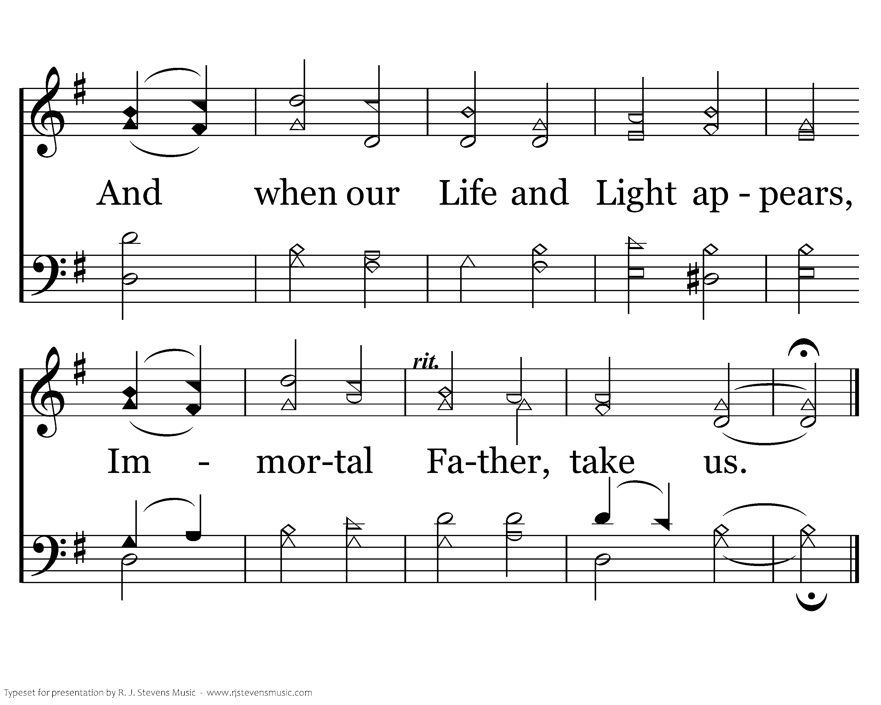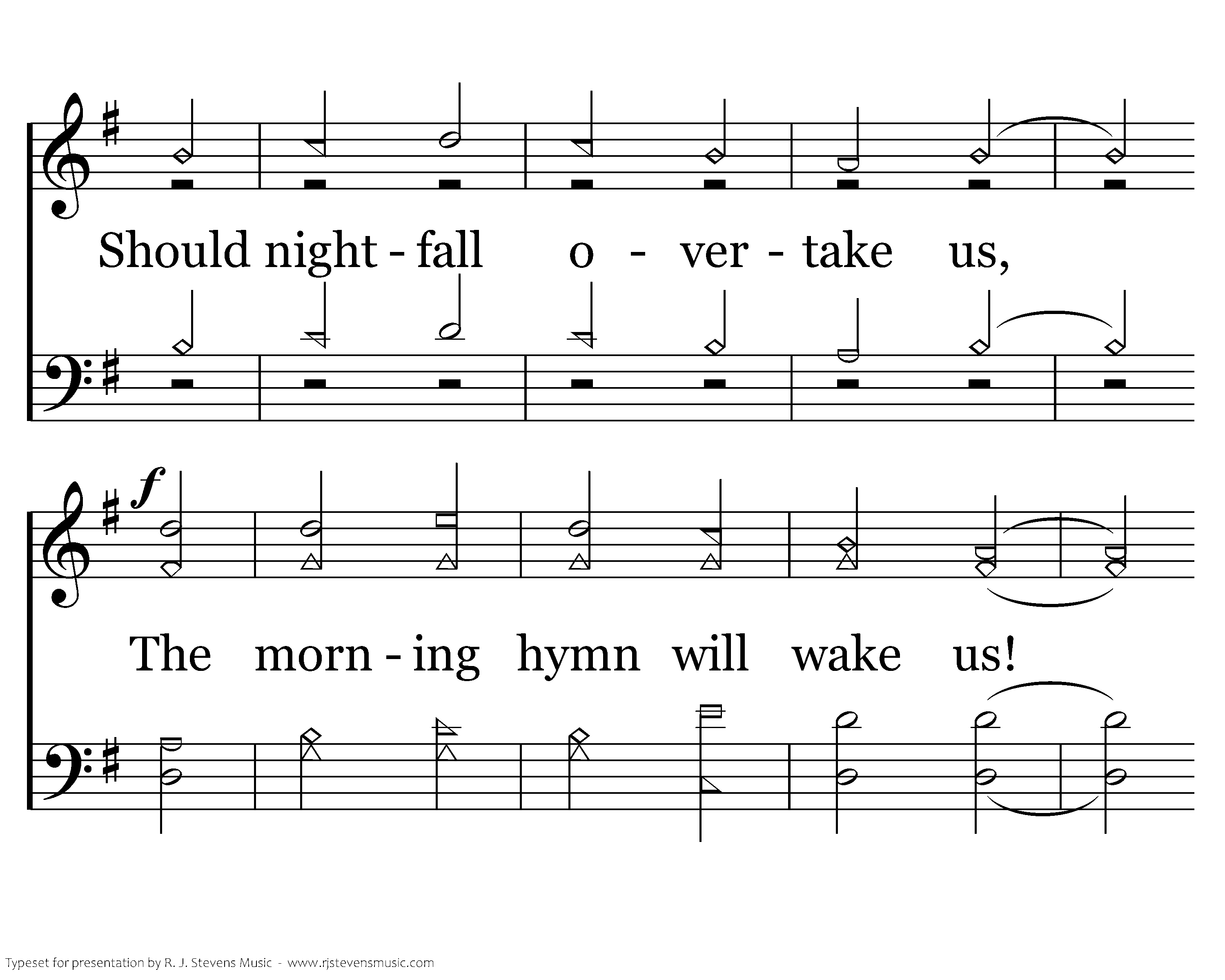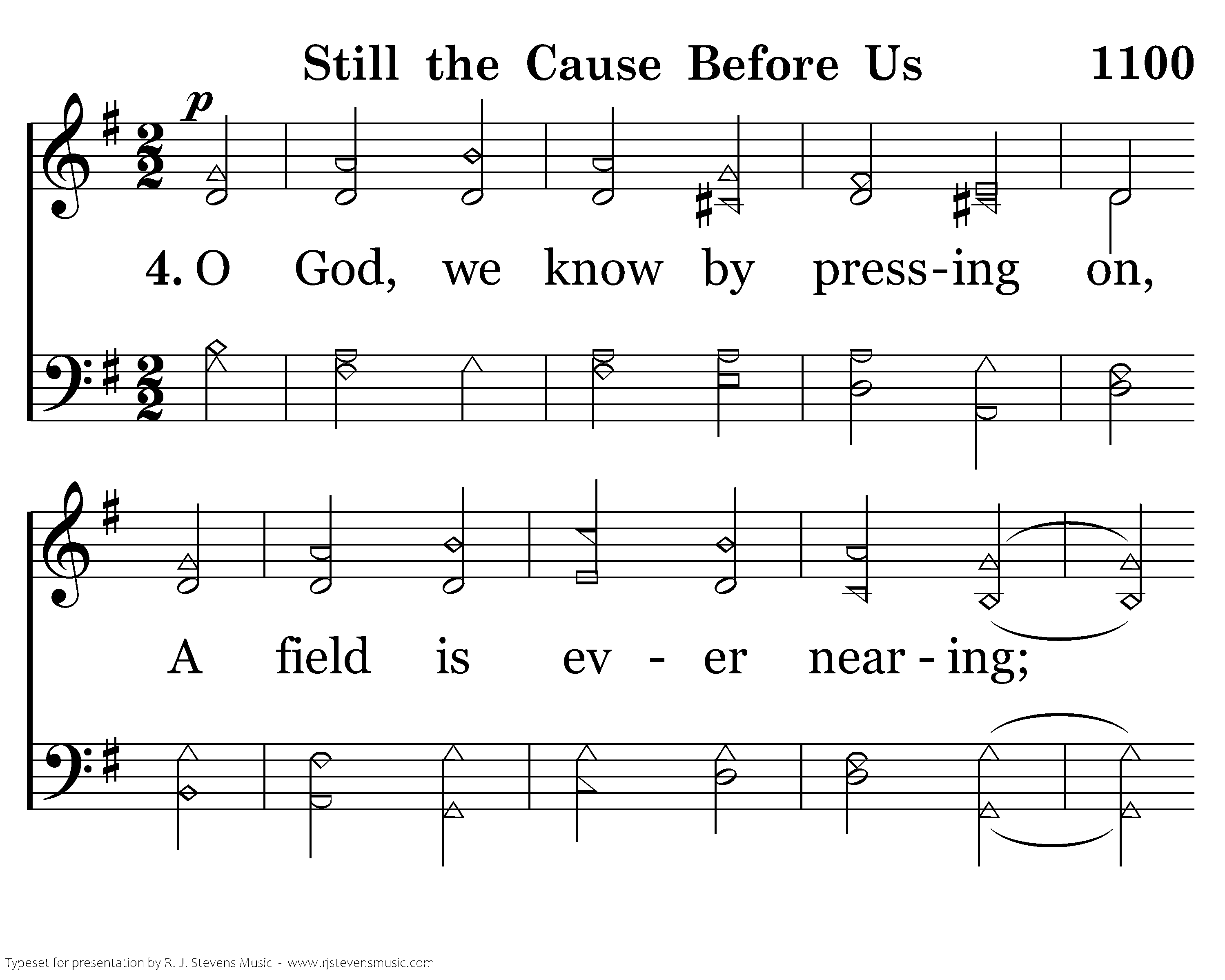 O God, we know by pressing on, A field is ever nearing; Where all our mortal strength is gone, We lie down in the clearing. Should nightfall overtake us, The morning hymn will wake us! And when our Life and Light appears, Immortal Father, take us.