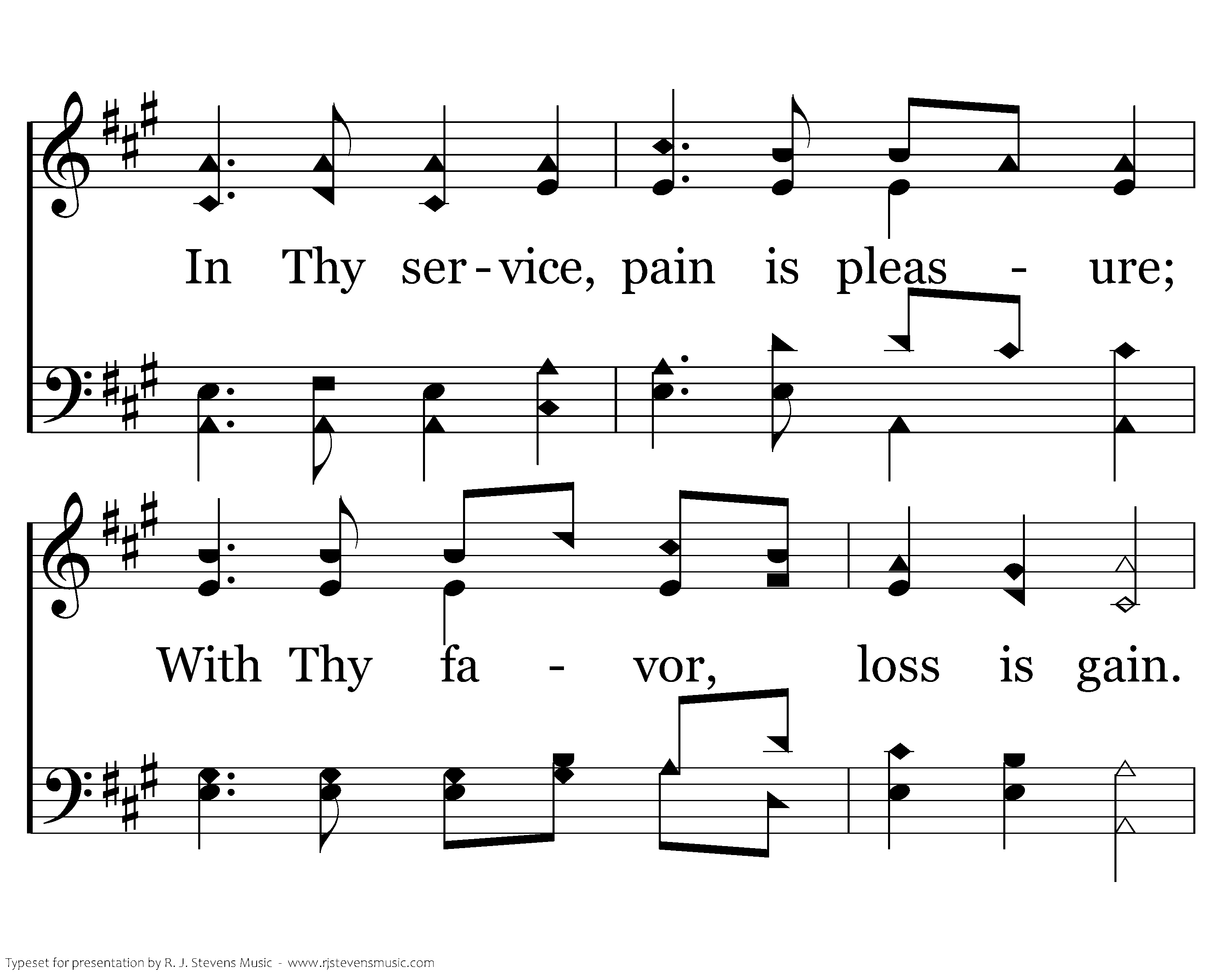 Go, then, earthly fame and treasure! Come, disaster, scorn, and pain! In Thy service, pain is pleasure; With Thy favor, loss is gain. I have called Thee, "Abba, Father"; I have set my heart on Thee; Storms may howl, and clouds may gather, All must work for good to me.