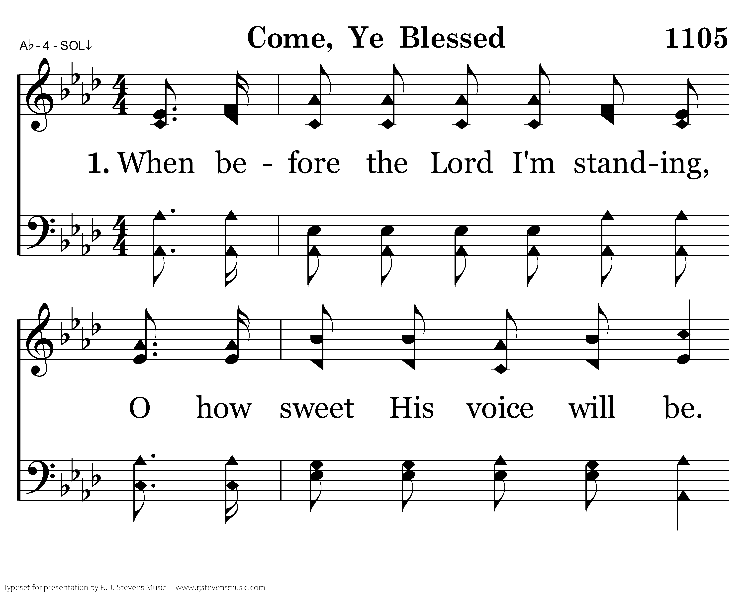 When before the Lord I'm standing, O how sweet His voice will be. As I hear Him gently calling, Come, ye blessed, unto Me.