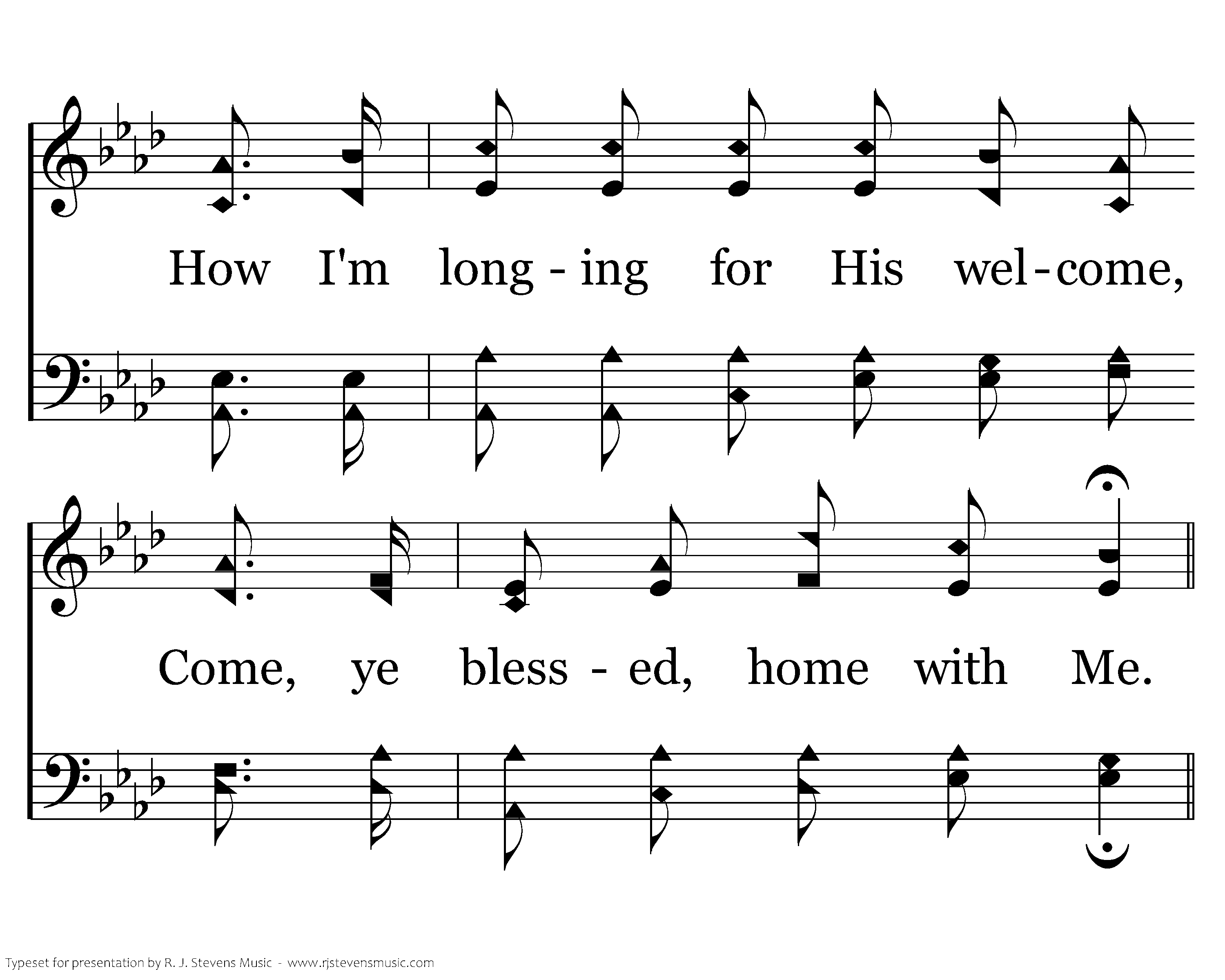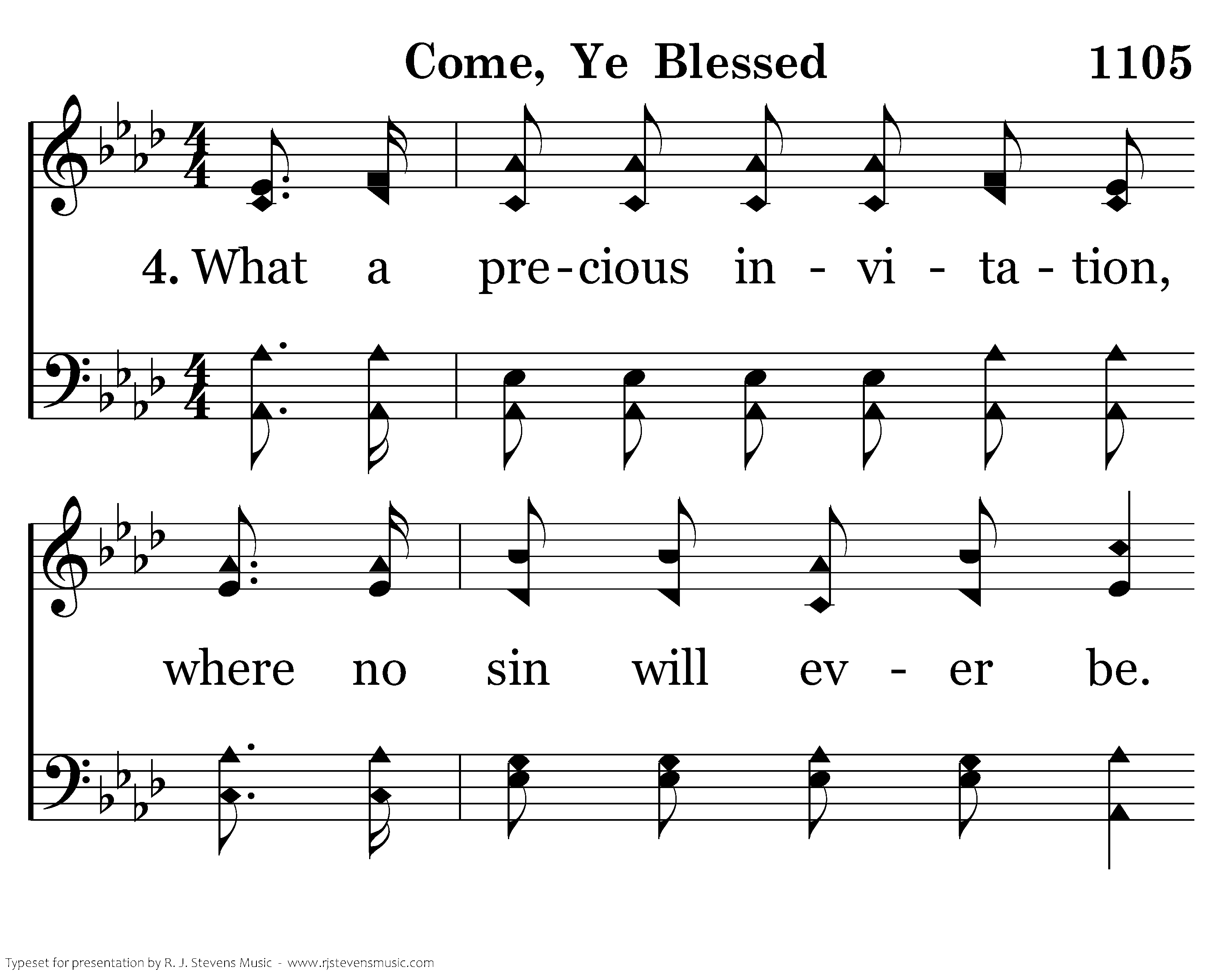 What a precious invitation, where no sin will ever be. How I'm longing for His welcome, Come, ye blessed, home with Me.