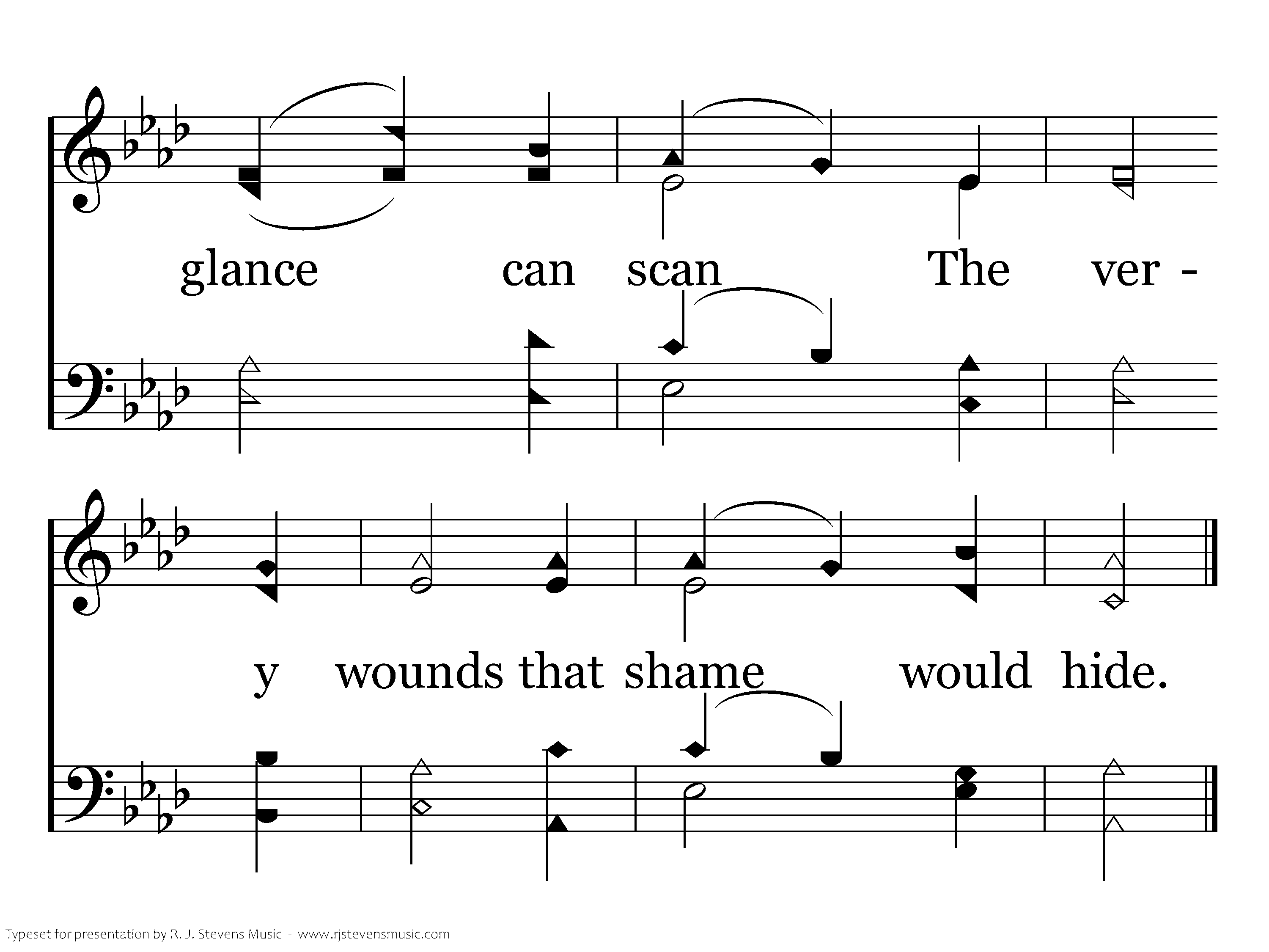 O Savior Christ, Thou too art man; Thou hast been troubled, tempted, tried; Thy kind but searching glance can scan The very wounds that shame would hide.