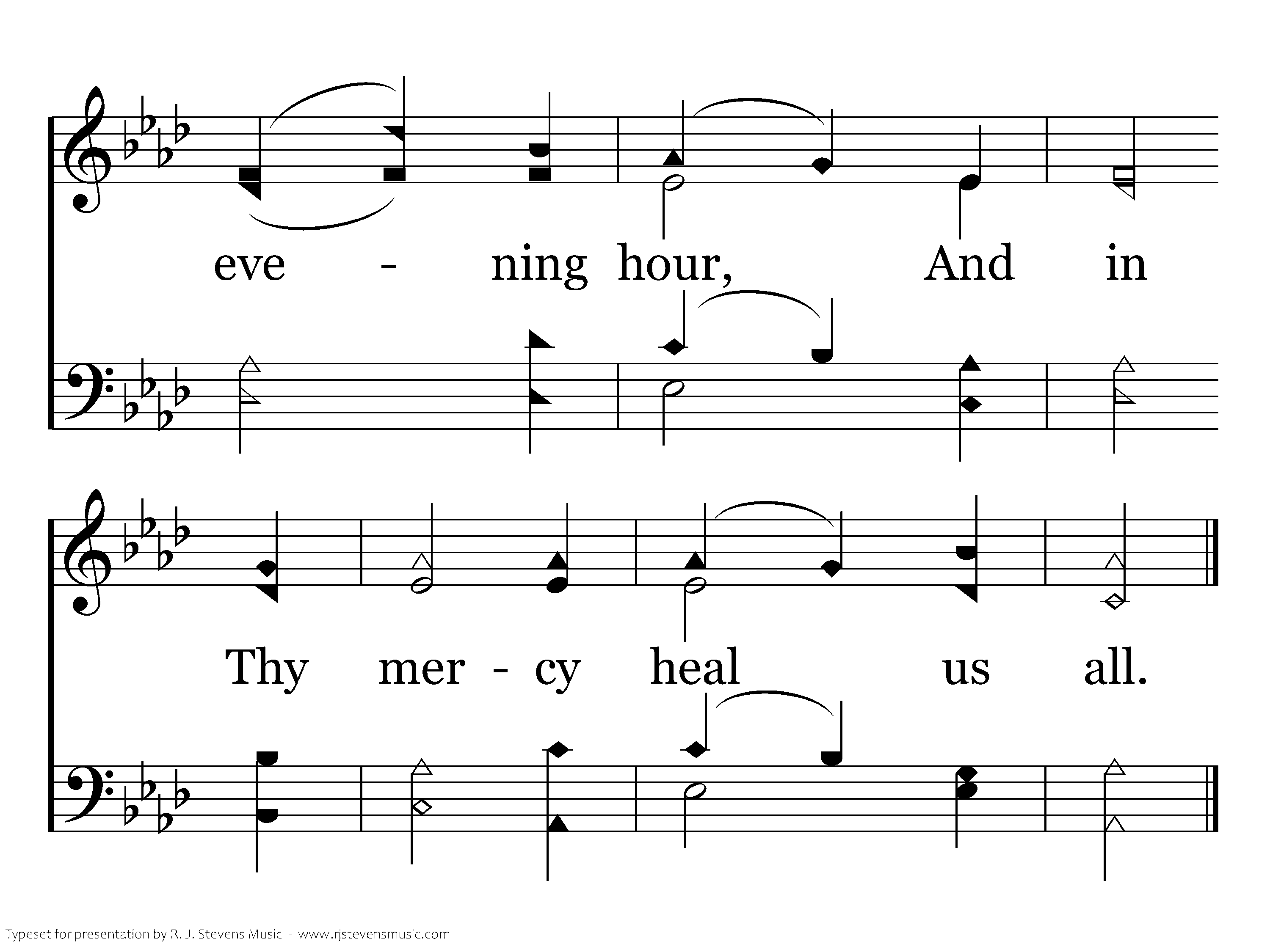 Thy touch has still its ancient power; No word from Thee can fruitless fall: Hear, in this solemn evening hour, And in Thy mercy heal us all.