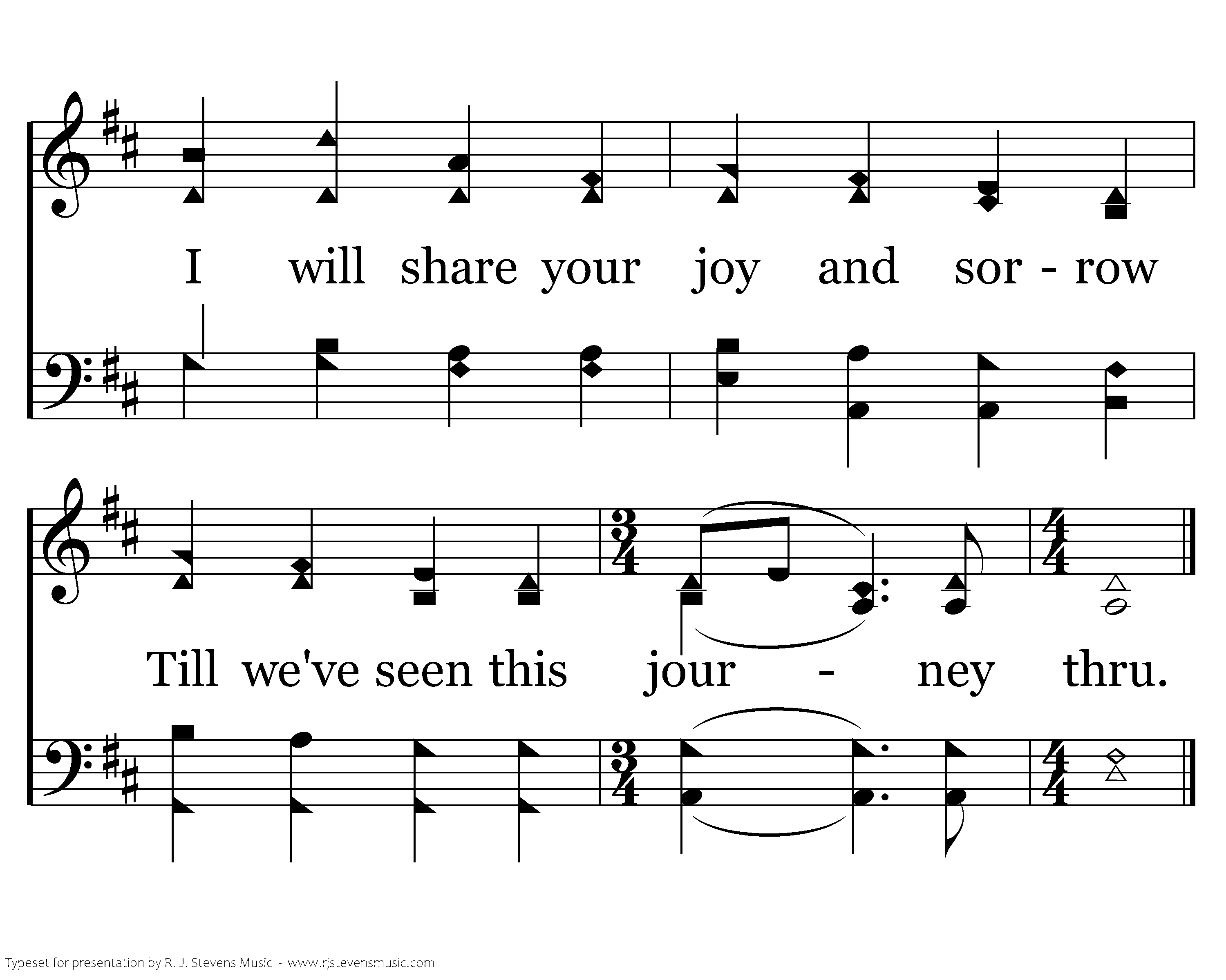 I will weep when you are weeping, When you laugh, I'll laugh with you. I will share your joy and sorrow Till we've seen this journey thru.