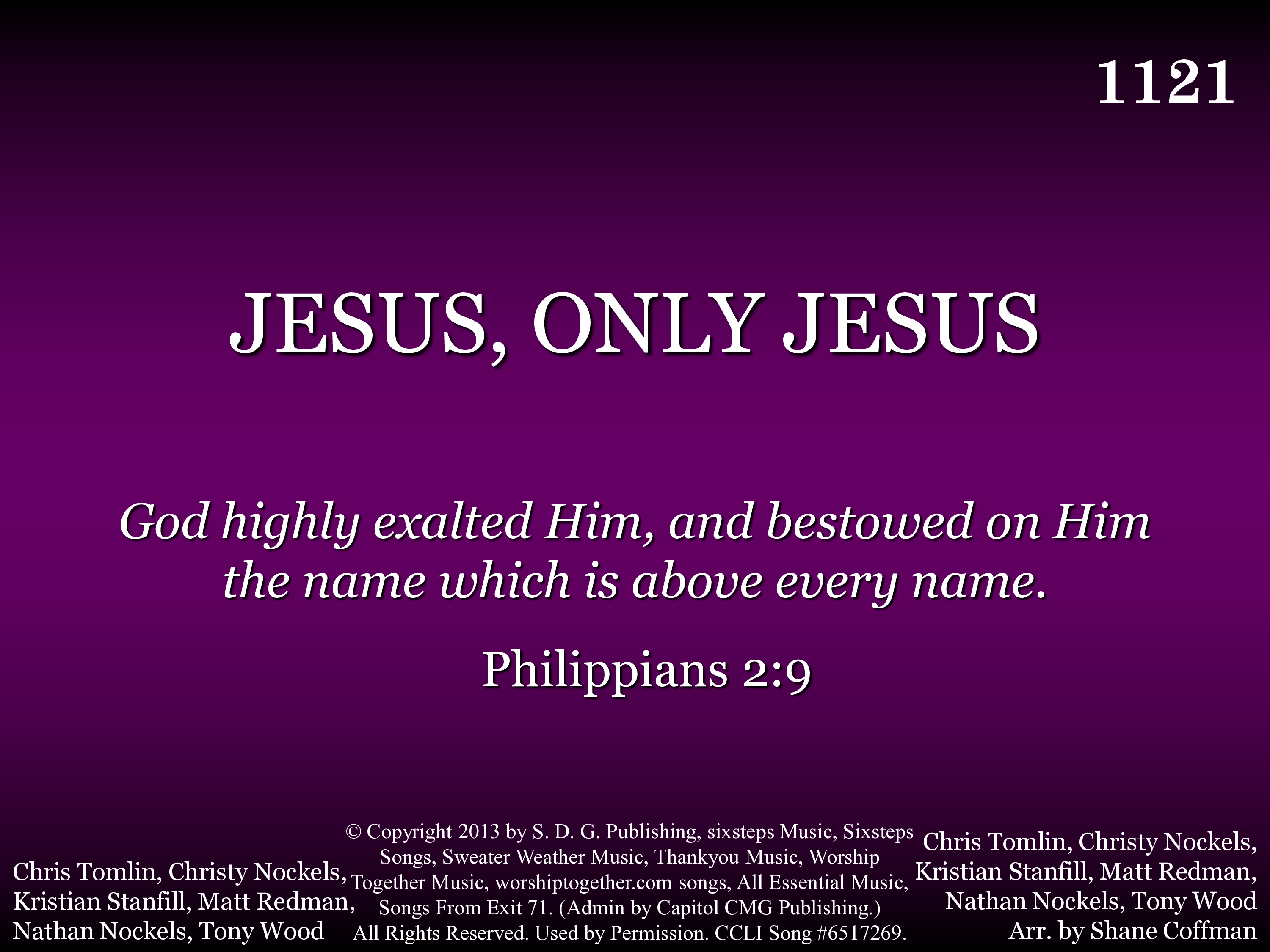 - License required through CCLI, OneLicense, Easy Licensing, or other licensing company for copyright compliance