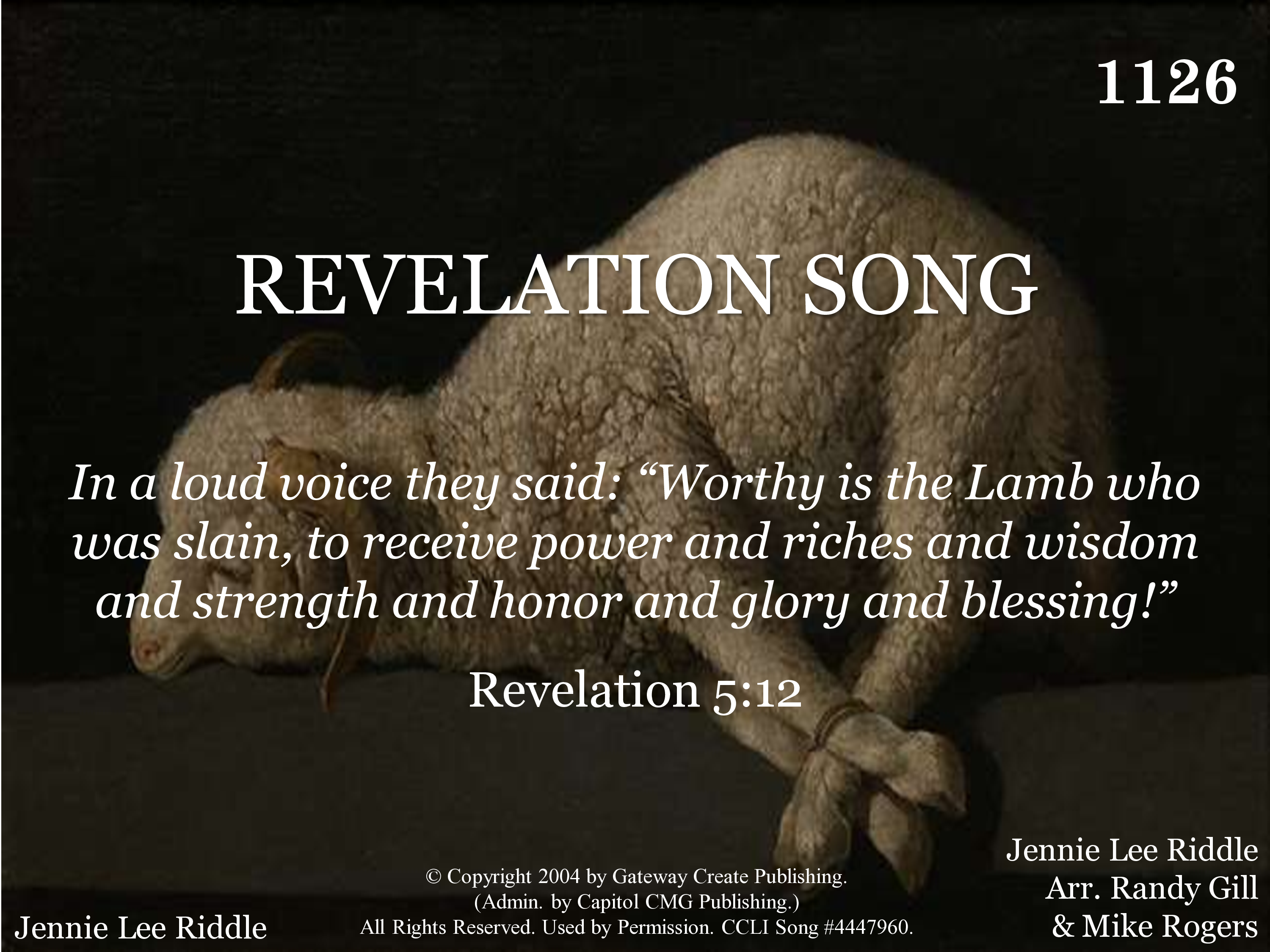 - Copyright © 2004 by Gateway Create Publishing. (Admin. by Capitol CMG Publishing.) All Rights Reserved. Used by Permission.