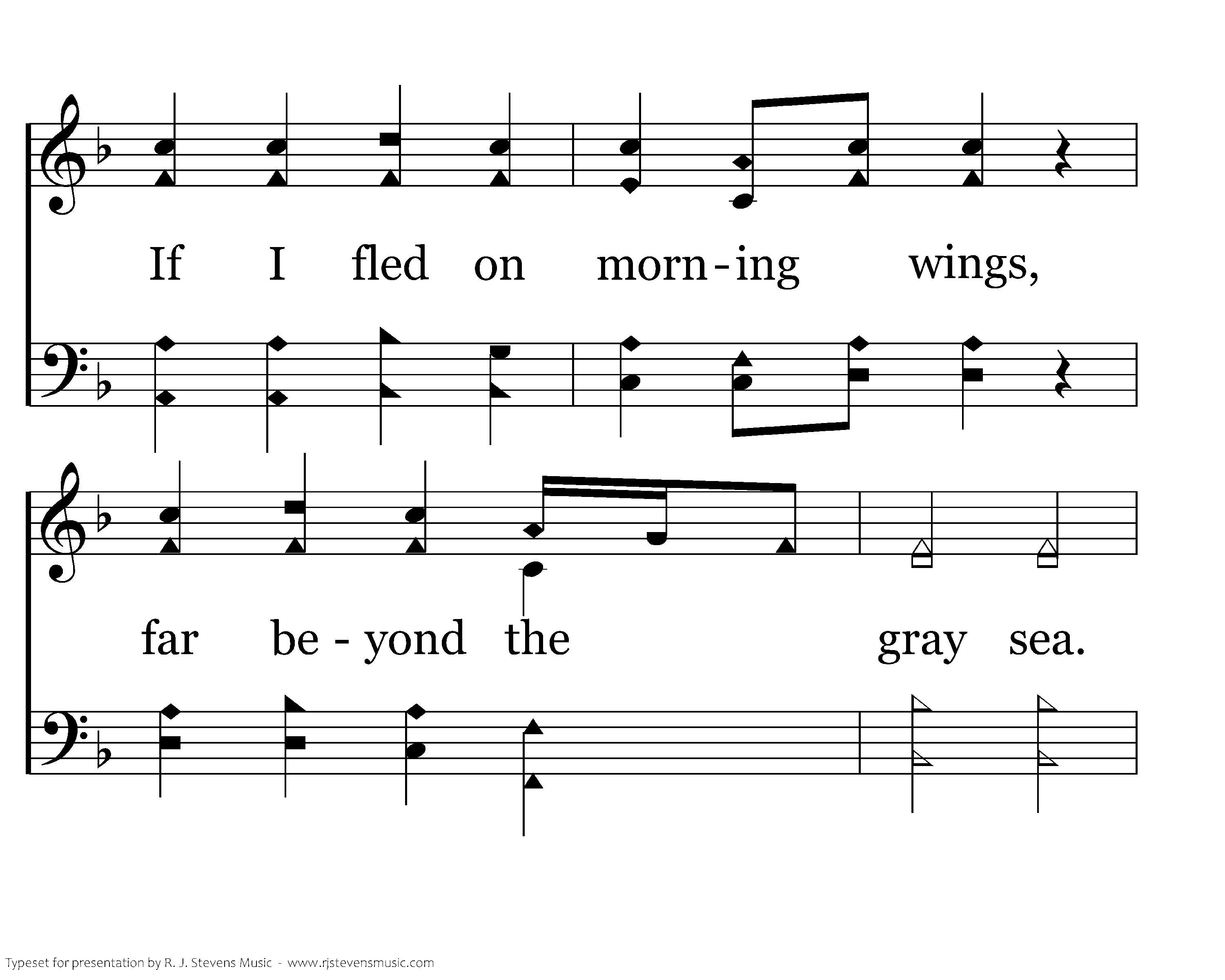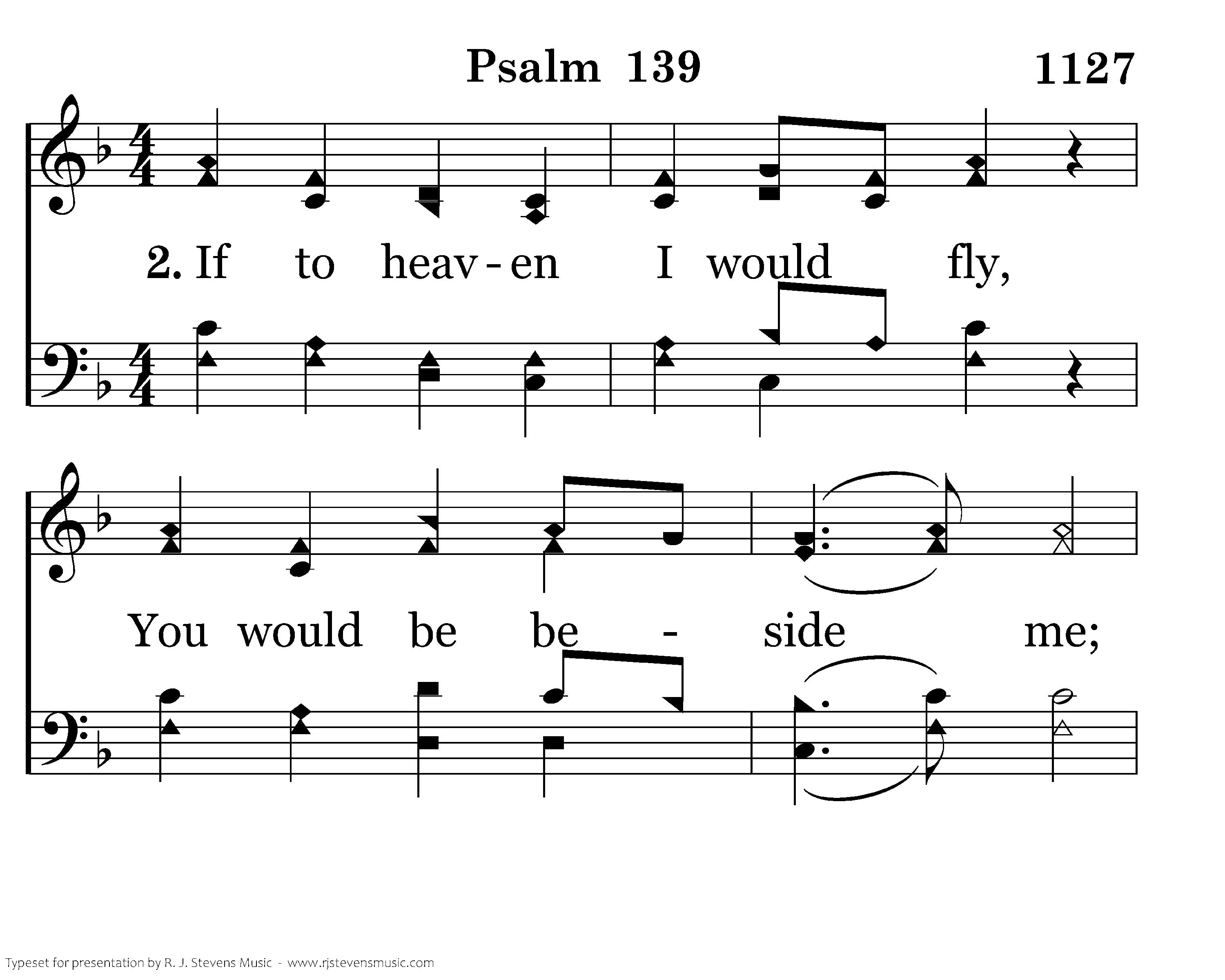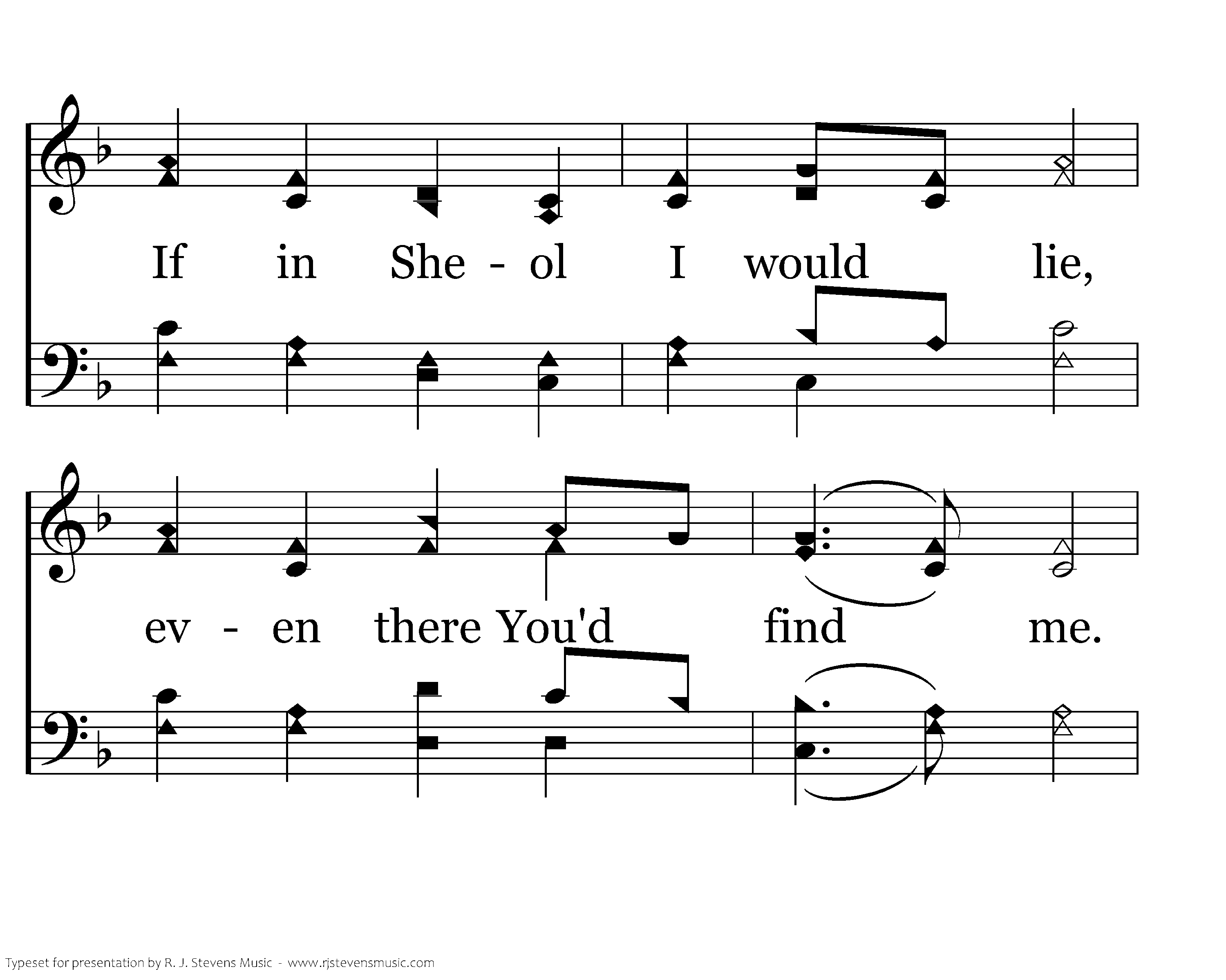 If to heaven I would fly, You would be beside me; If in Sheol I would lie, even there You'd find me. If I fled on morning wings, far beyond the gray sea. Even there Your hand would lead, Your right hand would guide me. How wonderful, how marvelous, how mighty are You, God. The darkness is as light to You, how boundless are Your ways.