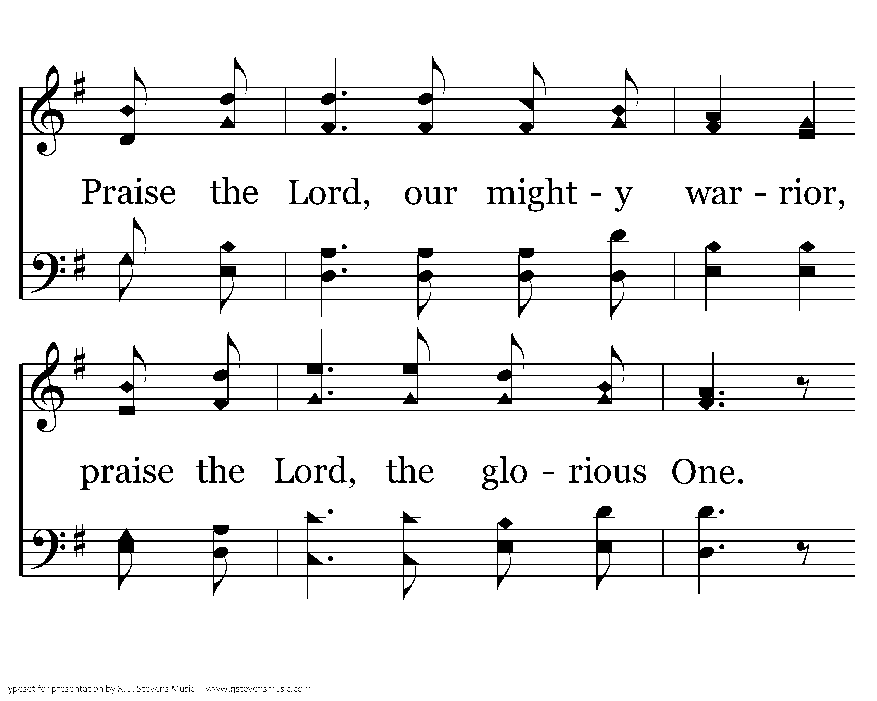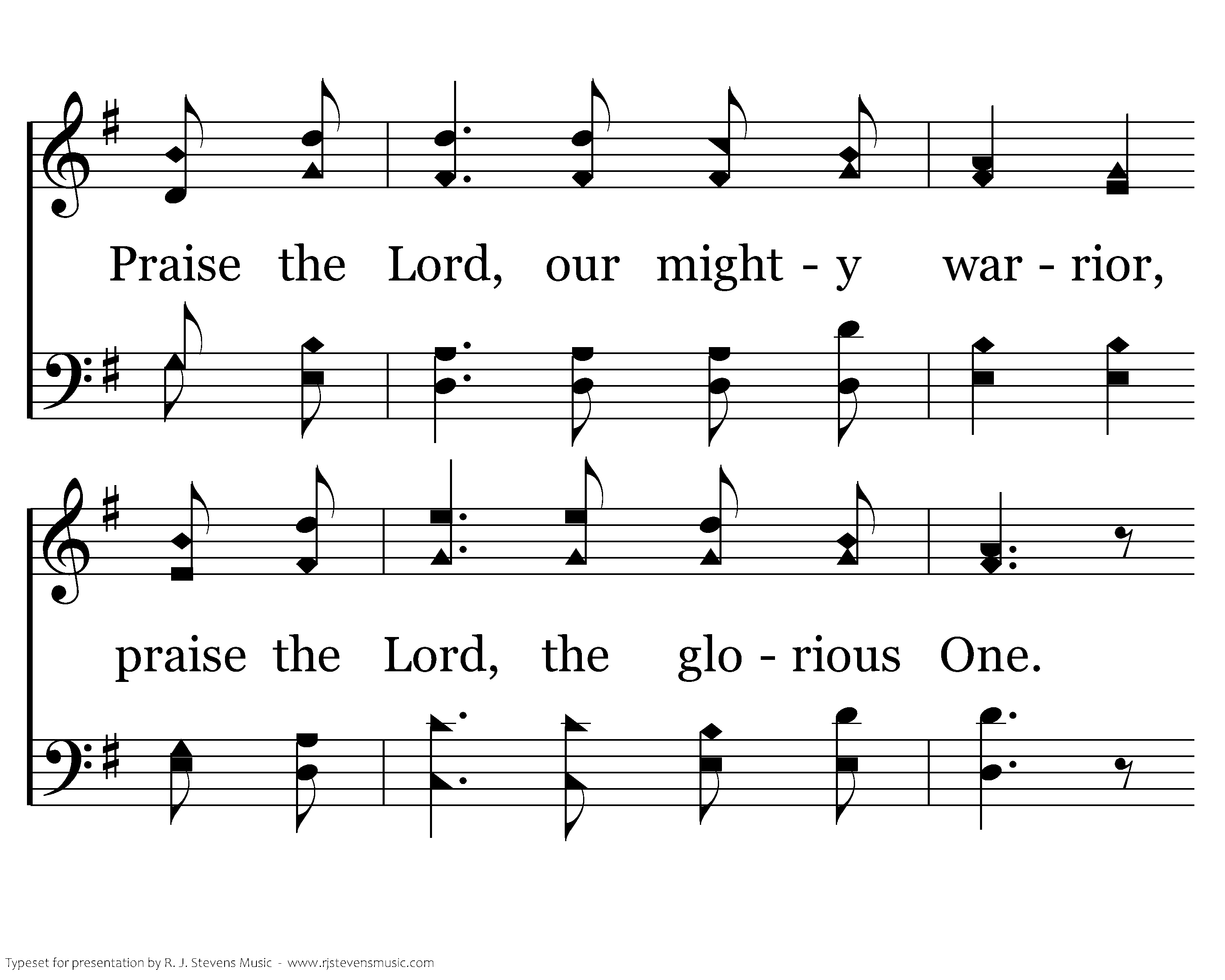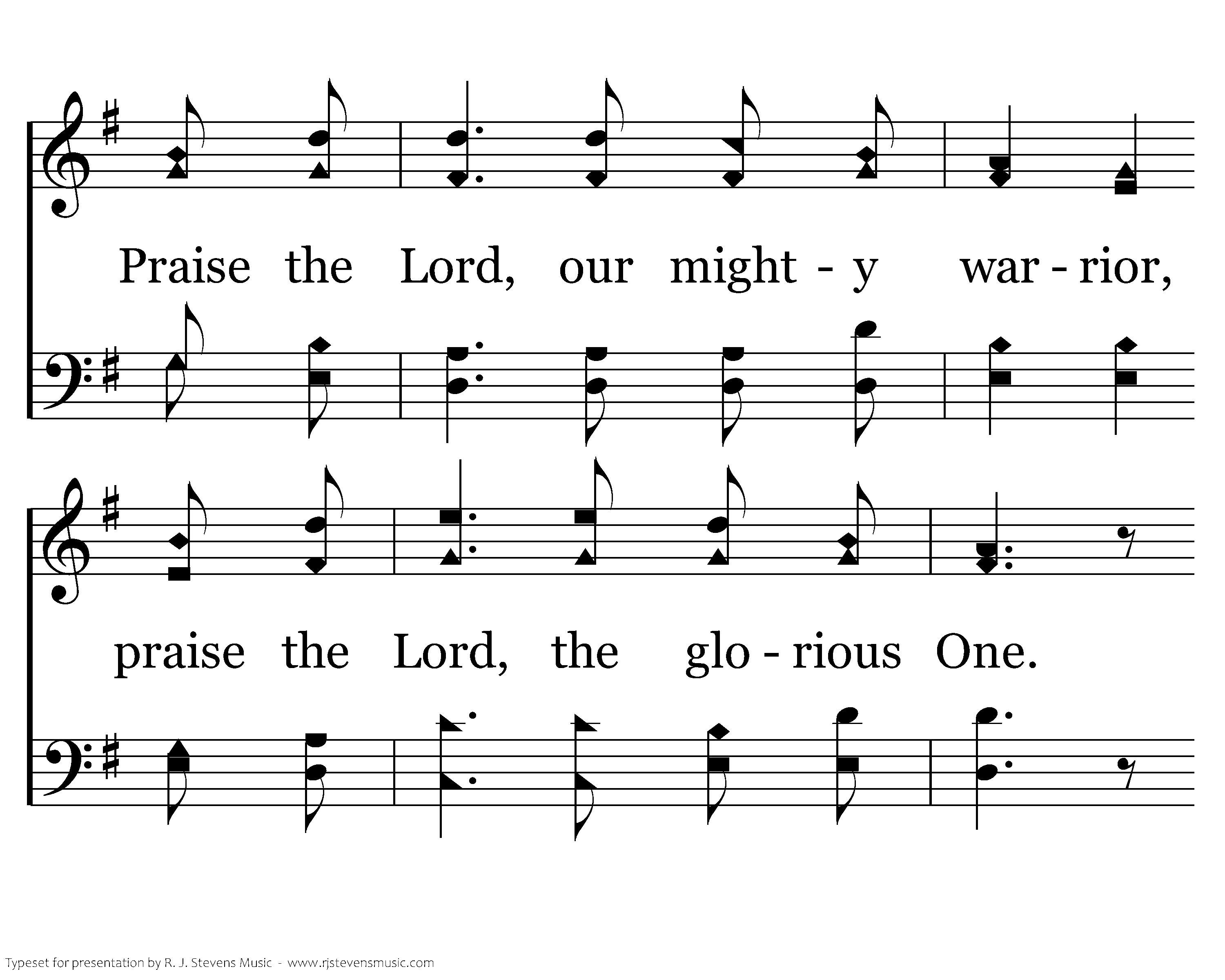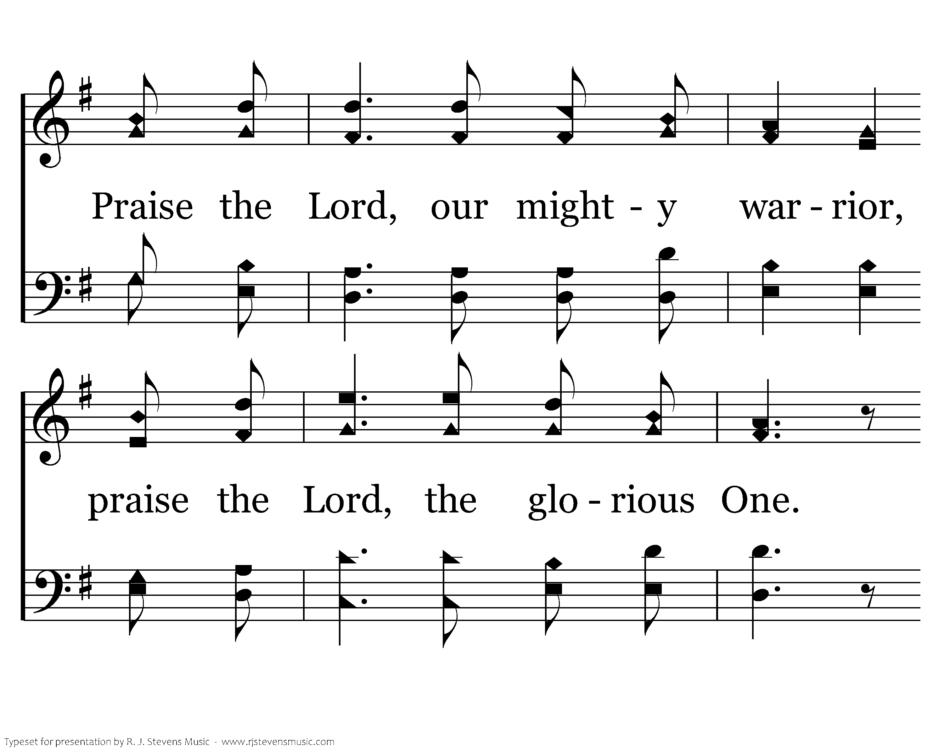 O the Lord, our strength and song, Highest praise to Him belongs; Christ the Lord, our conq'ring King, Your name we raise, Your triumphs sing. Praise the Lord, our mighty warrior, praise the Lord, the glorious One. By His hand we stand in victory and by His name we overcome. Tho' the storms of hell pursue, in darkest night, we worship You. You divide the raging sea. From death to life, You safely lead. Praise the Lord, our mighty warrior, praise the Lord, the glorious One. By His hand we stand in victory and by His name we overcome. All the saints and angels bow. Hosts of heaven are crying out, "Glory, glory to the King! You reign for all eternity!" The Lord shall reign forever and ever. The Lord shall reign forever and ever. The Lord shall reign forever and ever. The Lord shall reign forever and ever.