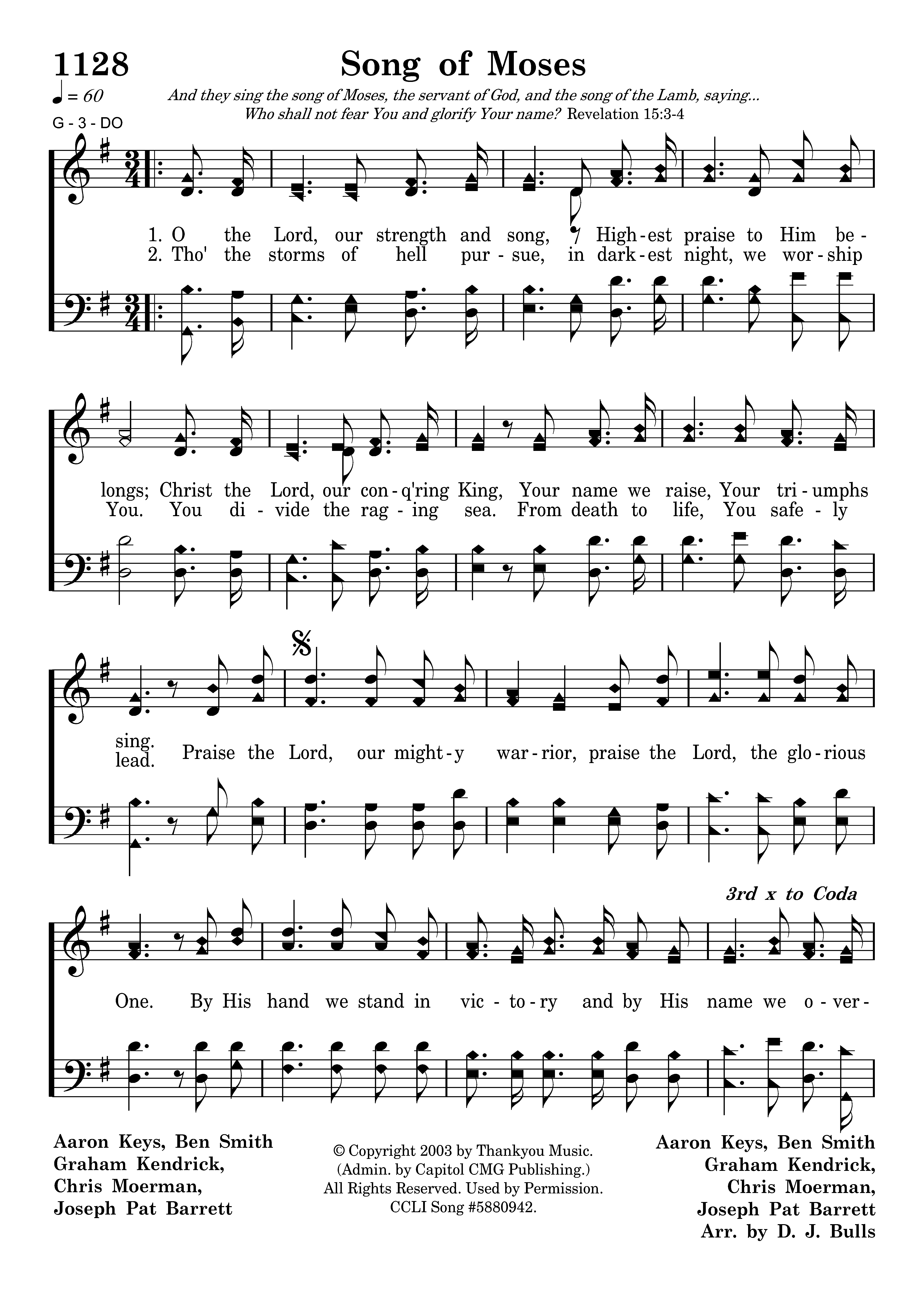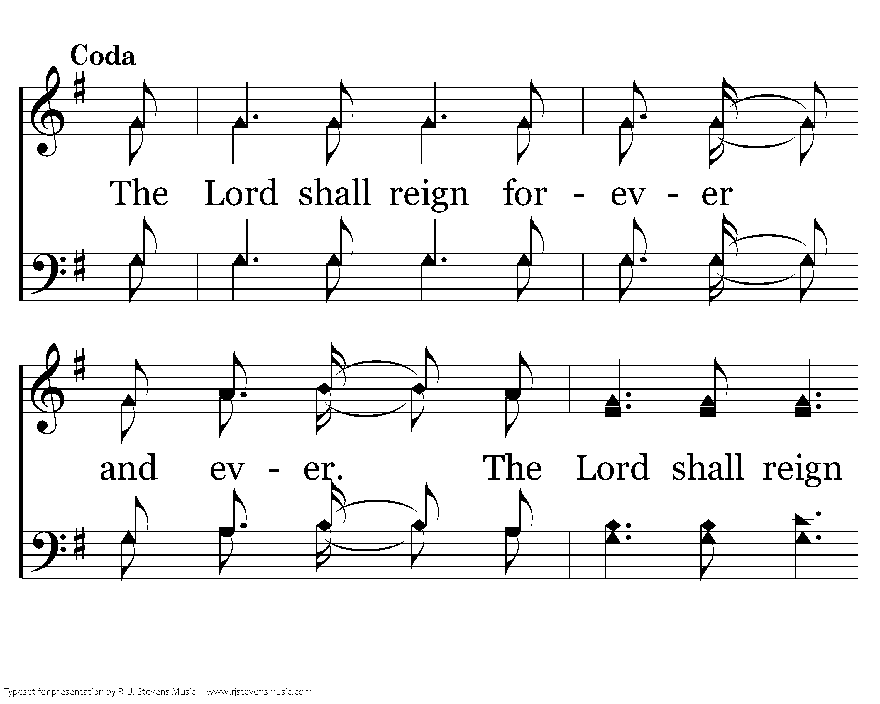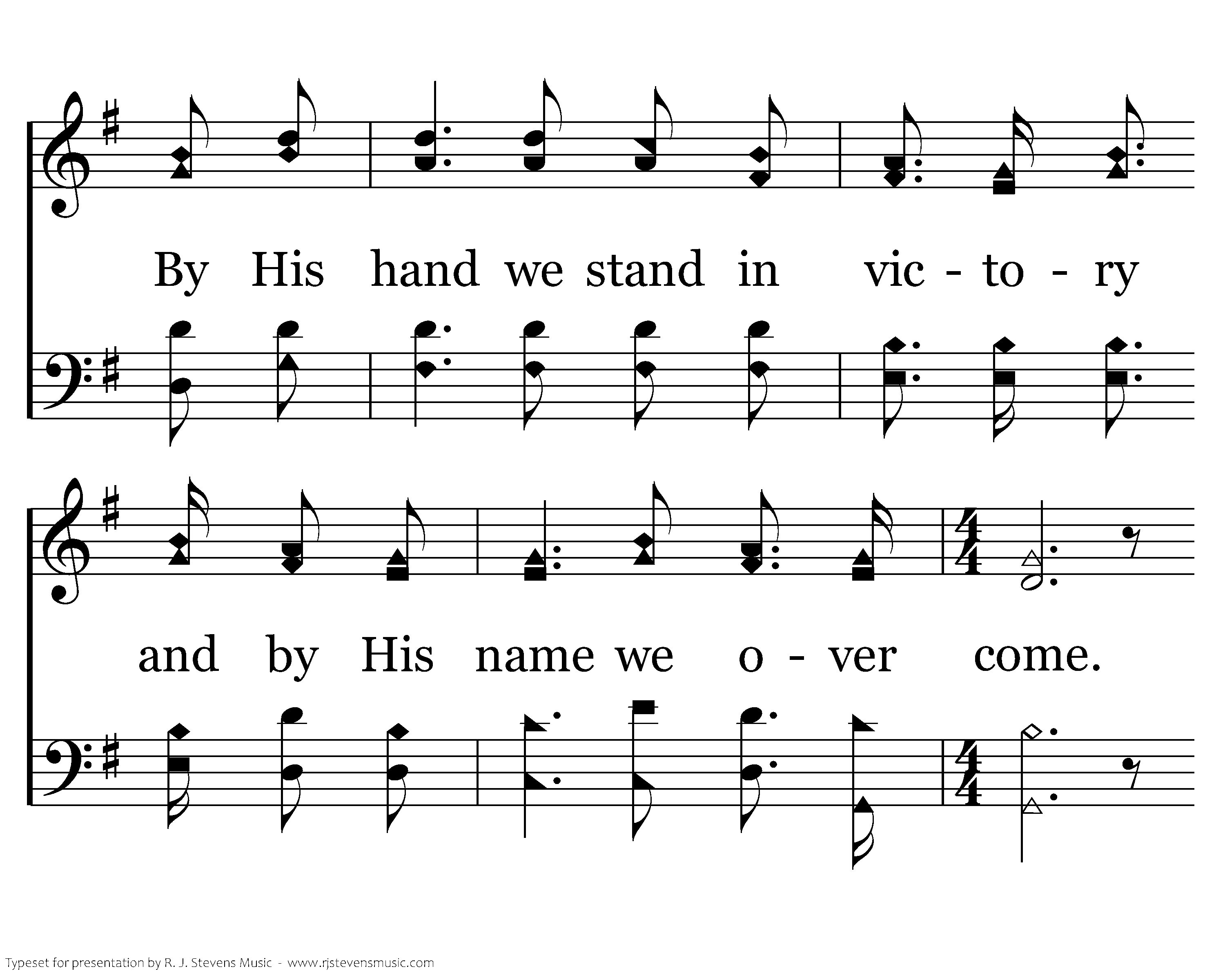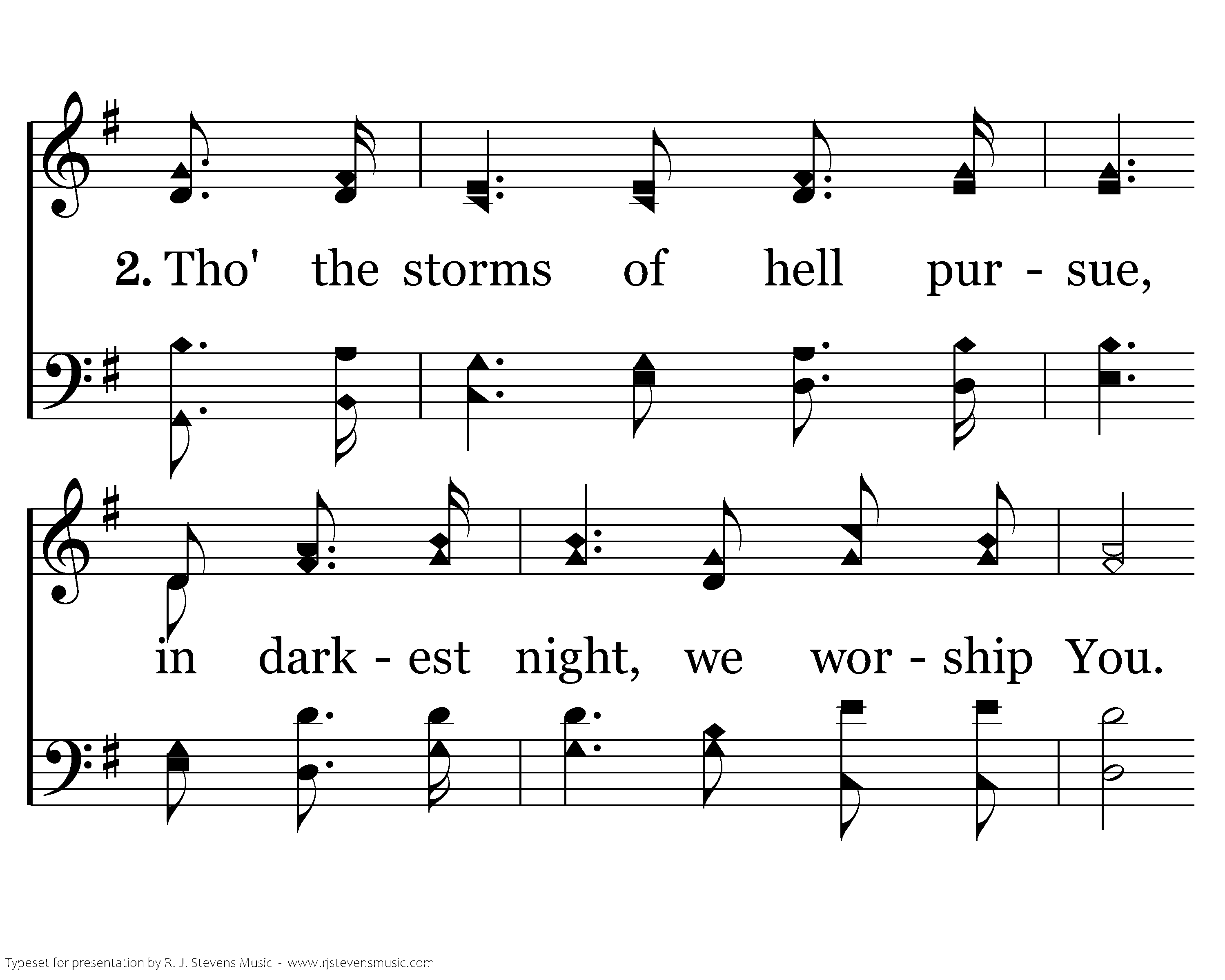 O the Lord, our strength and song, Highest praise to Him belongs; Christ the Lord, our conq'ring King, Your name we raise, Your triumphs sing. Praise the Lord, our mighty warrior, praise the Lord, the glorious One. By His hand we stand in victory and by His name we overcome. Tho' the storms of hell pursue, in darkest night, we worship You. You divide the raging sea. From death to life, You safely lead. Praise the Lord, our mighty warrior, praise the Lord, the glorious One. By His hand we stand in victory and by His name we overcome. All the saints and angels bow. Hosts of heaven are crying out, "Glory, glory to the King! You reign for all eternity!" The Lord shall reign forever and ever. The Lord shall reign forever and ever. The Lord shall reign forever and ever. The Lord shall reign forever and ever.