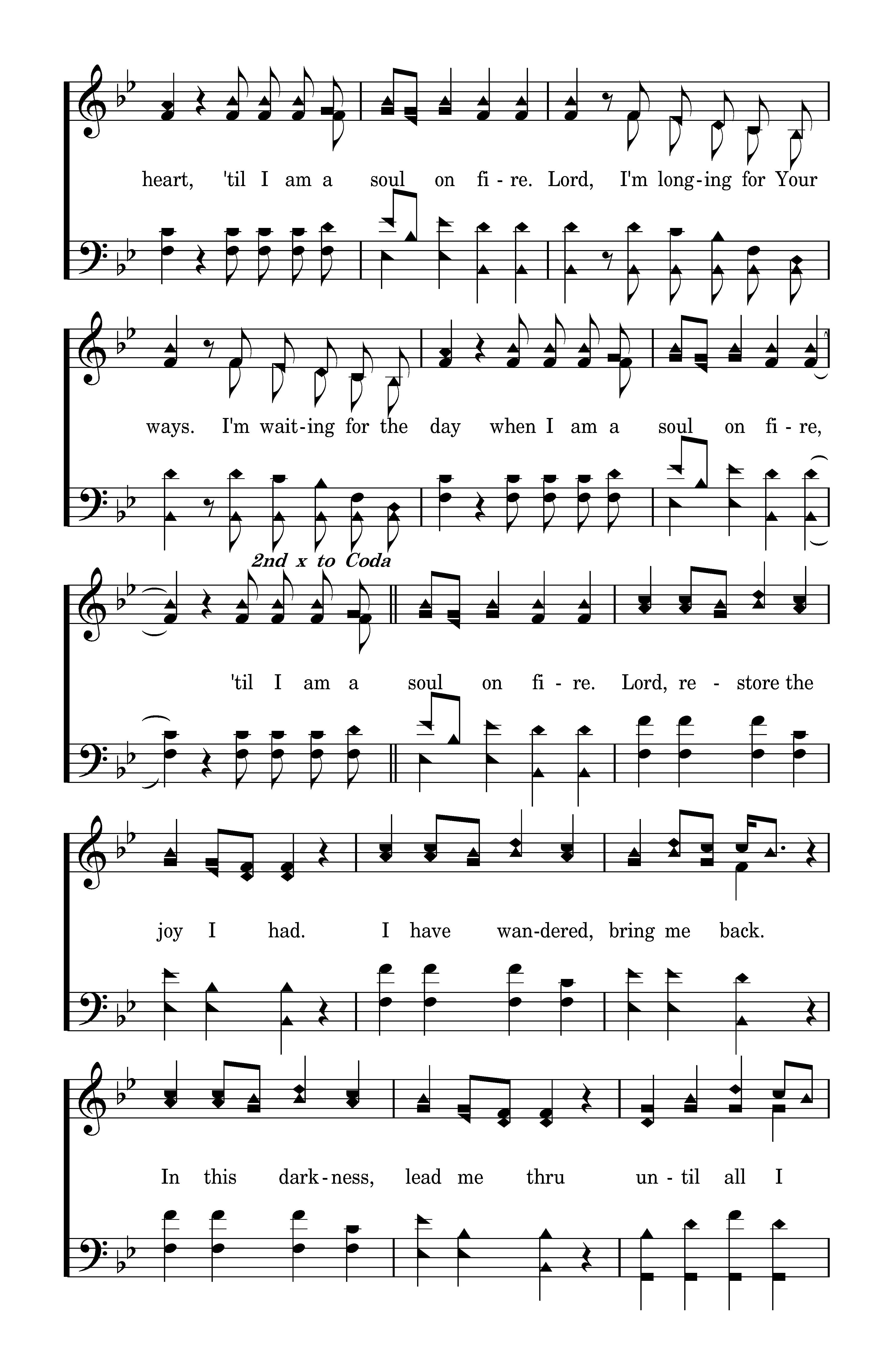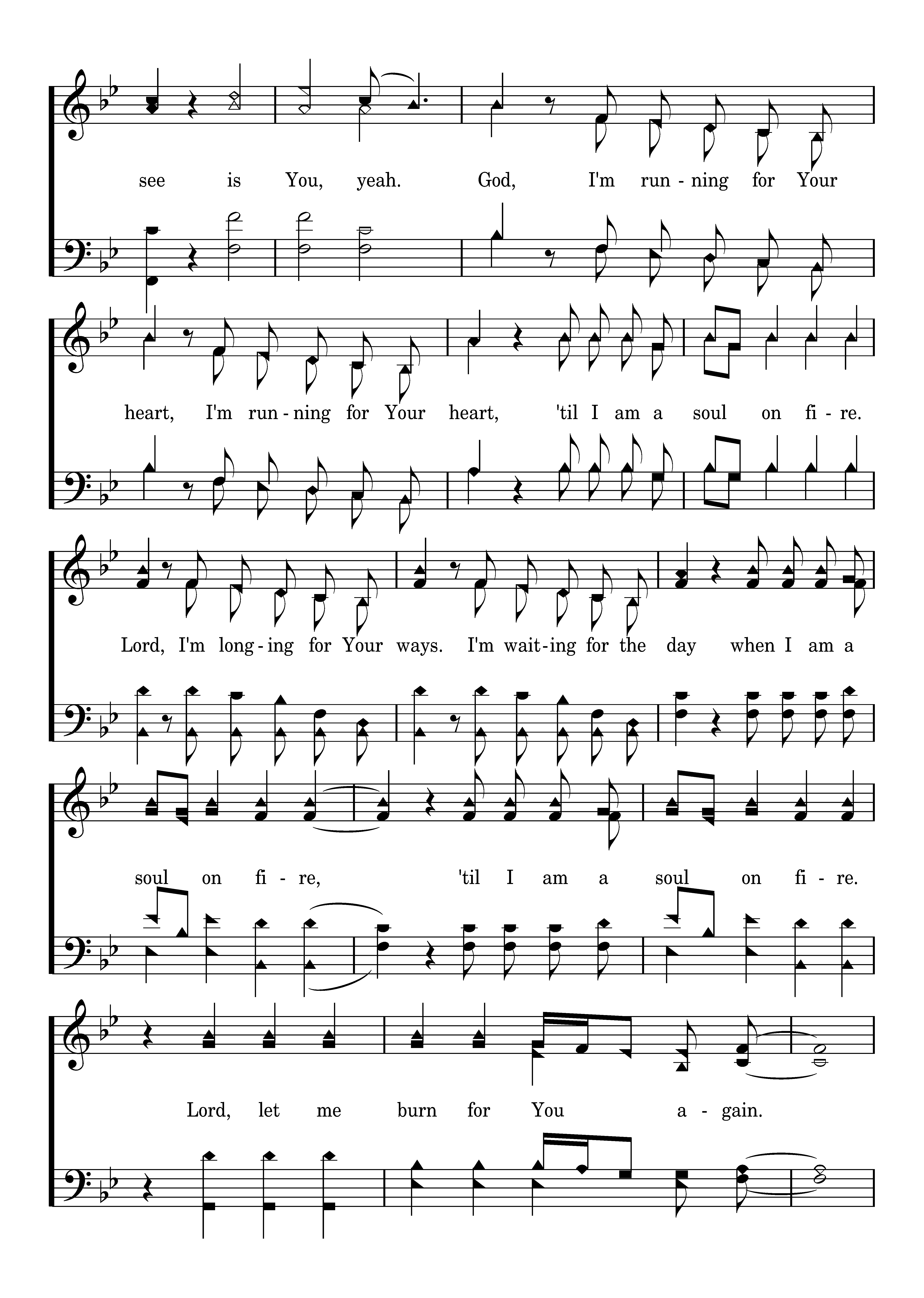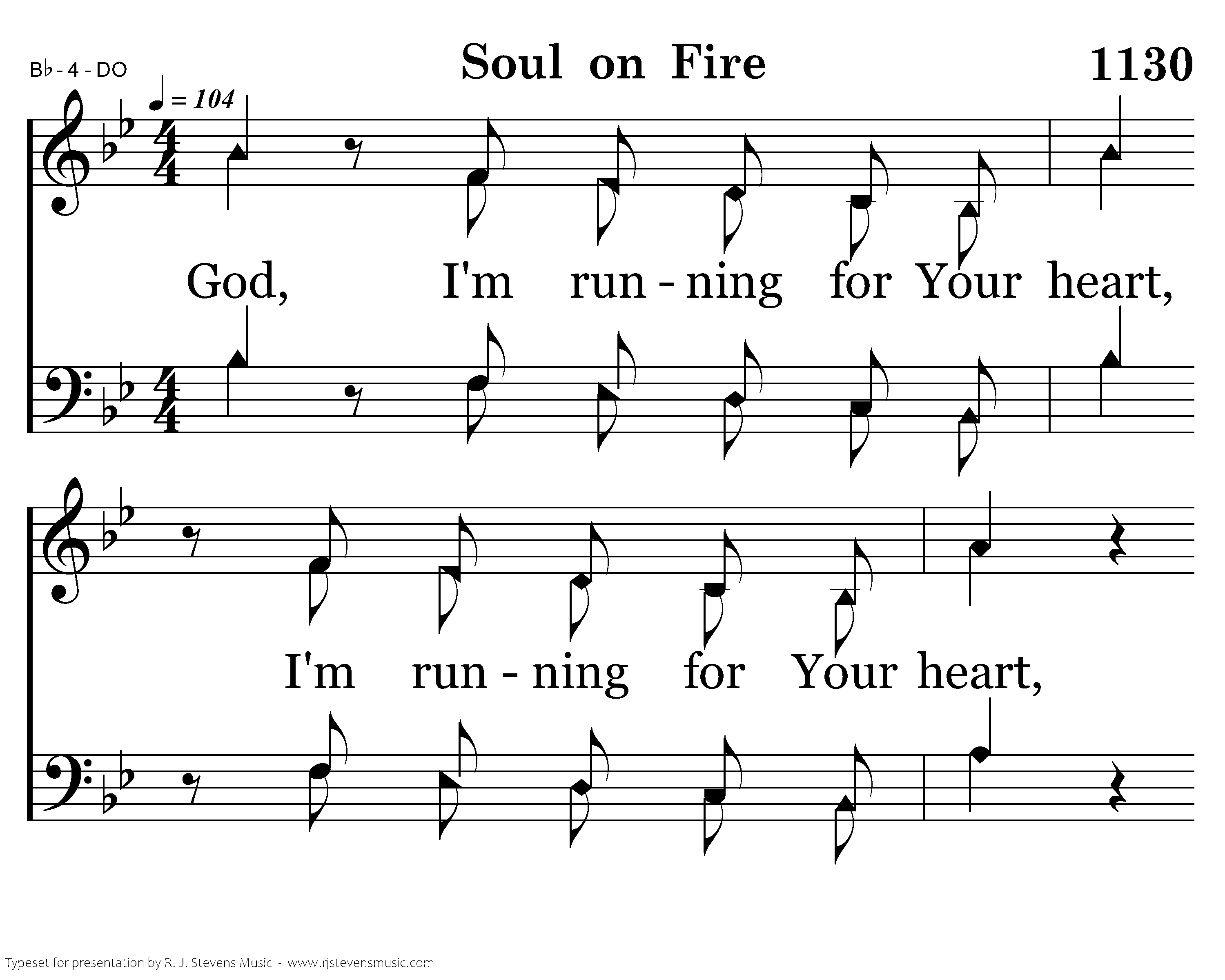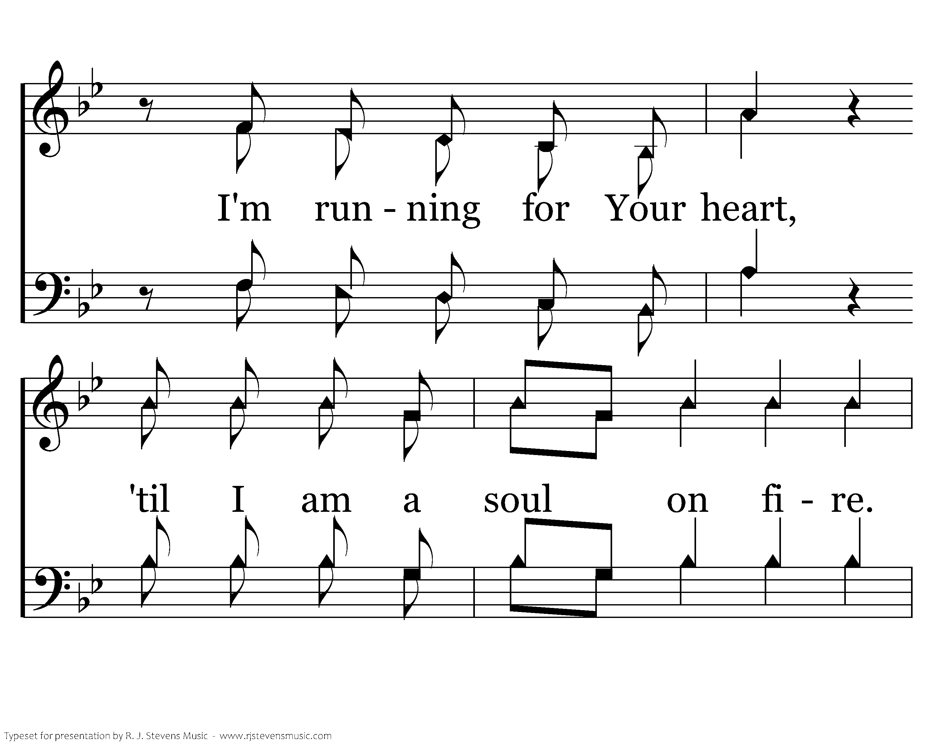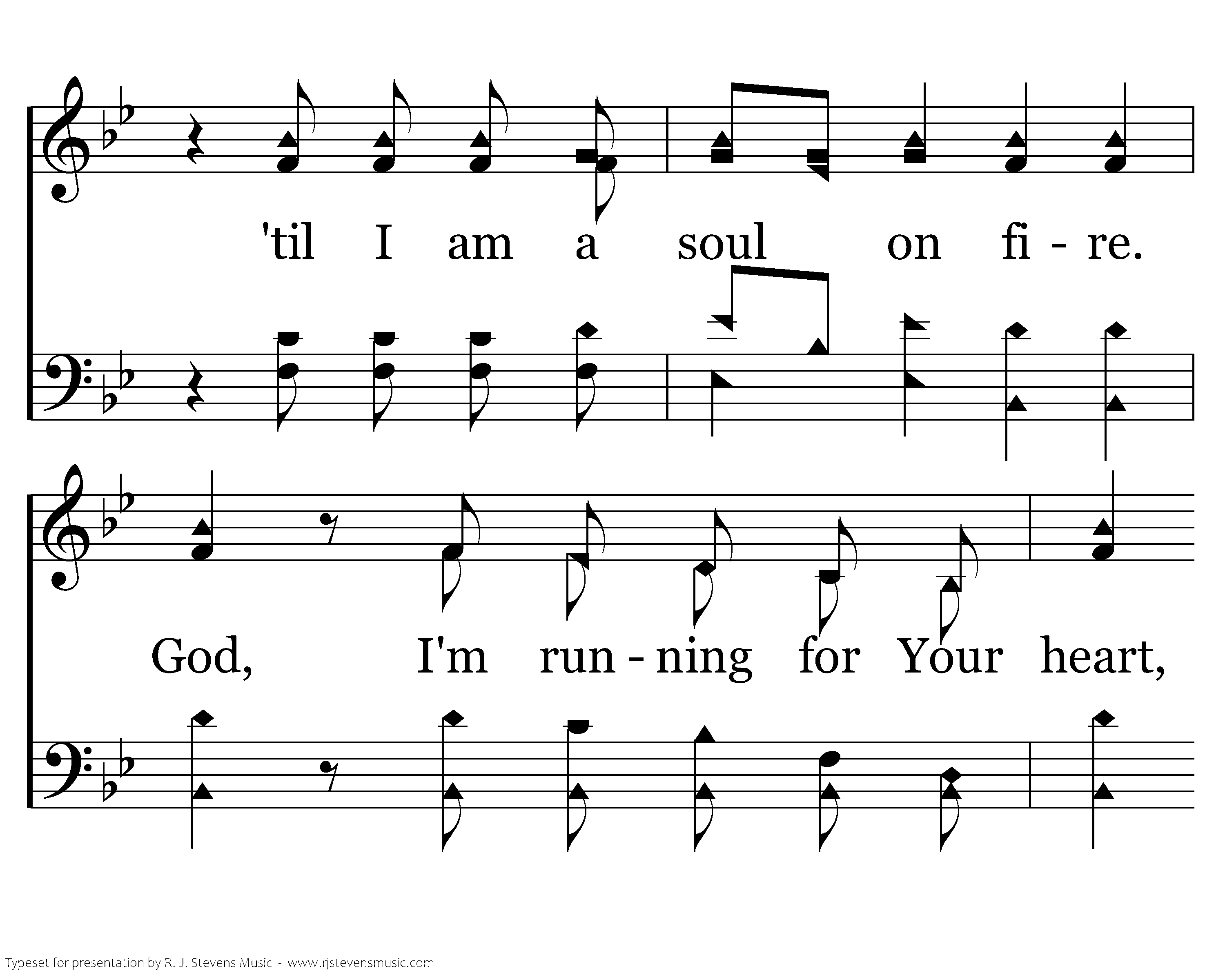 God, I'm running for Your heart, I'm running for Your heart, 'til I am a soul on fire. Lord, I'm longing for Your ways. I'm waiting for the day when I am a soul on fire, 'til I am a soul on fire. God, I'm running for Your heart, I'm running for Your heart, 'til I am a soul on fire. Lord, I'm longing for Your ways. I'm waiting for the day when I am a soul on fire, 'til I am a soul on fire. Lord, restore the joy I had. I have wandered, bring me back. In this darkness, lead me thru until all I see is You, yeah. God, I'm running for Your heart, I'm running for Your heart, 'til I am a soul on fire. Lord, I'm longing for Your ways. I'm waiting for the day when I am a soul on fire, 'til I am a soul on fire. Lord, let me burn for You again. Let me return to You again. Lord, let me burn for You again. Let me return to You again. I'm waiting for the day when I am a soul on fire, 'til I am a soul on fire.