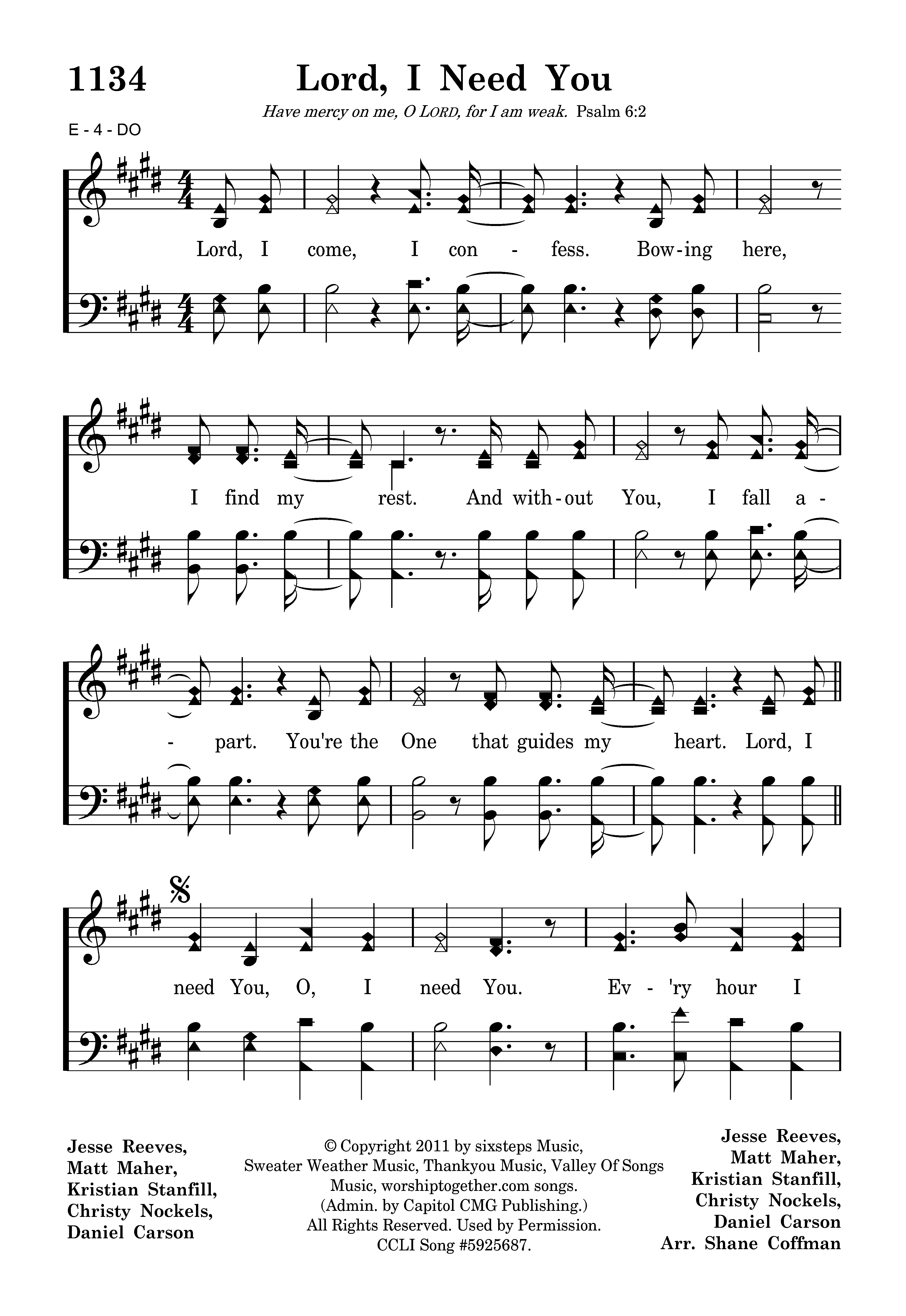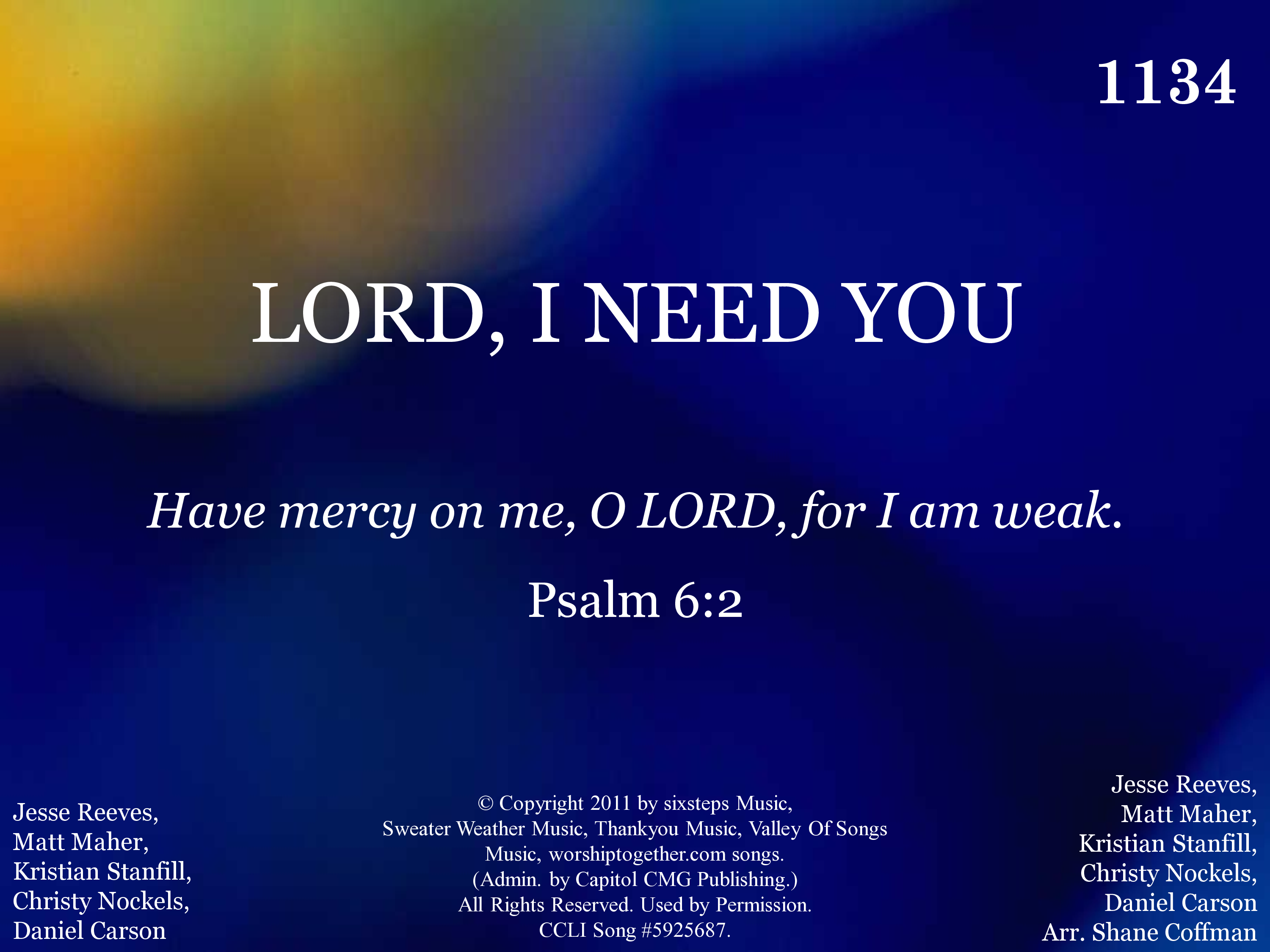 Lord, I come, I confess. Bowing here, I find my rest. And without You, I fall apart. You're the One that guides my heart. Lord, I need You, O, I need You. Ev'ry hour I need You. My one defense, my righteousness, O God, how I need You. Where sin runs deep, Your grace is more. Where grace is found is where You are. And where You are, Lord, I am free. Holiness is Christ in me. Where You are, Lord, I am free. Holiness is Christ in me. So teach my song to rise to You when temptation comes my way, and when I cannot stand I'll fall on You. Jesus, You're my hope and stay. And when I cannot stand I'll fall on You. Jesus, You're my hope and stay. Lord, I need You, O, I need You. Ev'ry hour I need You. My one defense, my righteousness, O God, how I need You. My You. need You, O, I need You. Ev'ry hour I need You. My one defense, my righteousness, O God, how I need one defense, my righteousness, O God, how I need You.