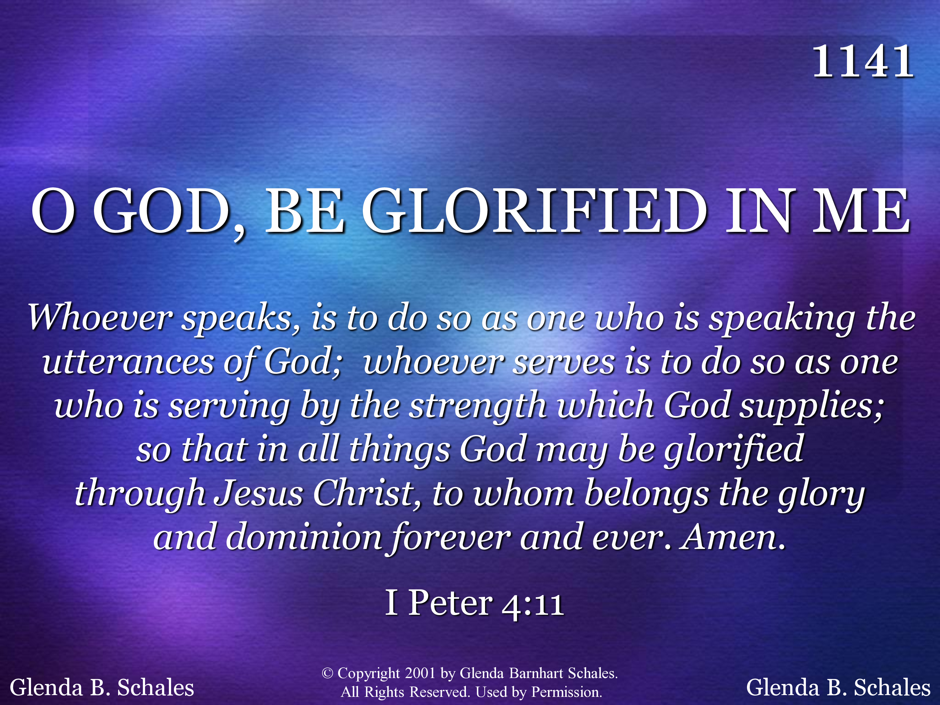 - © Copyright 2001 by Glenda B. Schales. All Rights Reserved. Used by Permission.