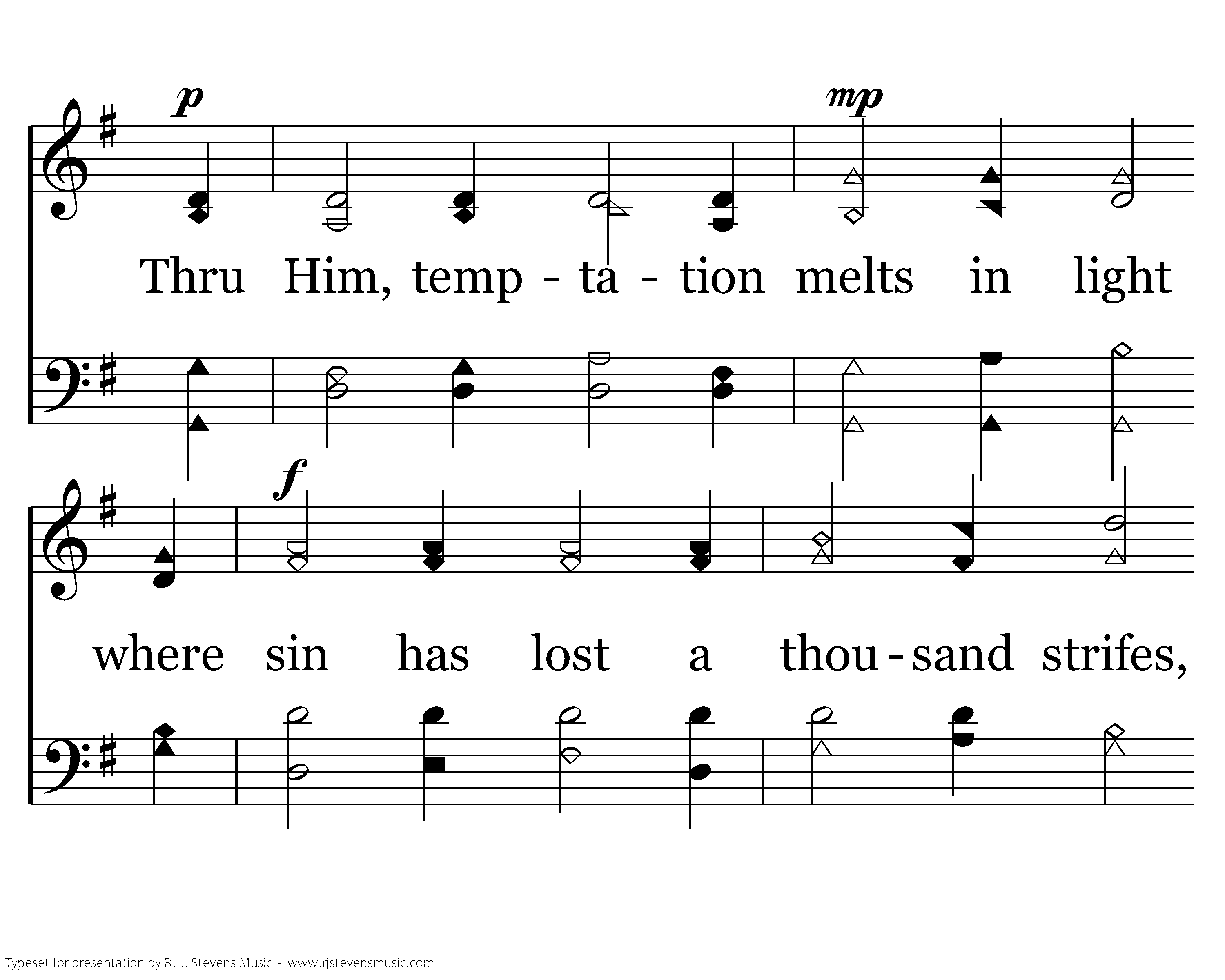 We are a people of God's plan: to be a glory to His praise. He reconciled us by His Hand and thru deep darkness, made the Way. Thru Him, temptation melts in light where sin has lost a thousand strifes, as Christ arises in His might, He leads us forth to show His life. O God, be glorified in me.