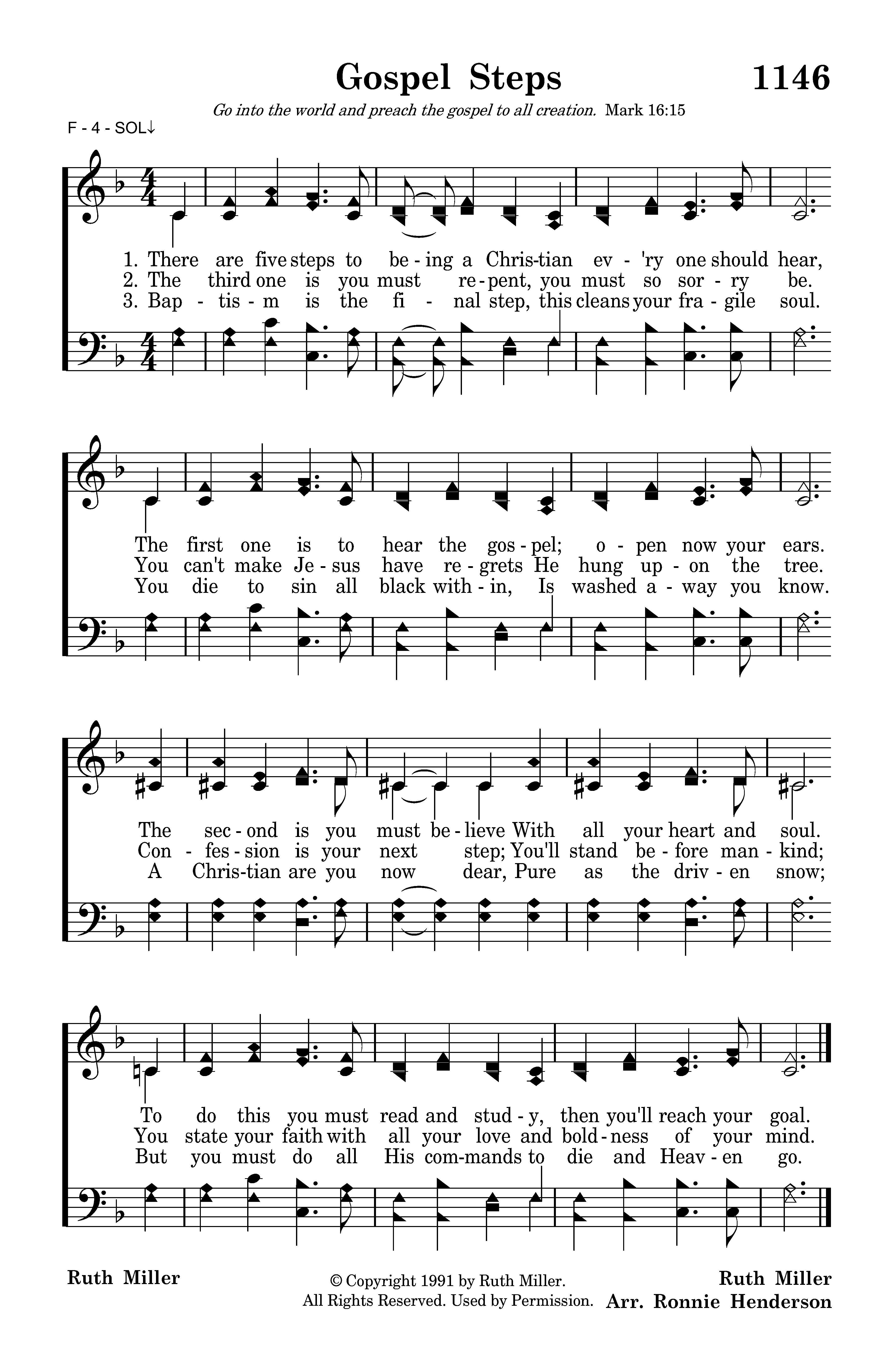 Baptism is the final step, this cleans your fragile soul. You die to sin all black within, Is washed away you know. A Christian are you now dear, Pure as the driven snow; But you must do all His commands to die and Heaven go.