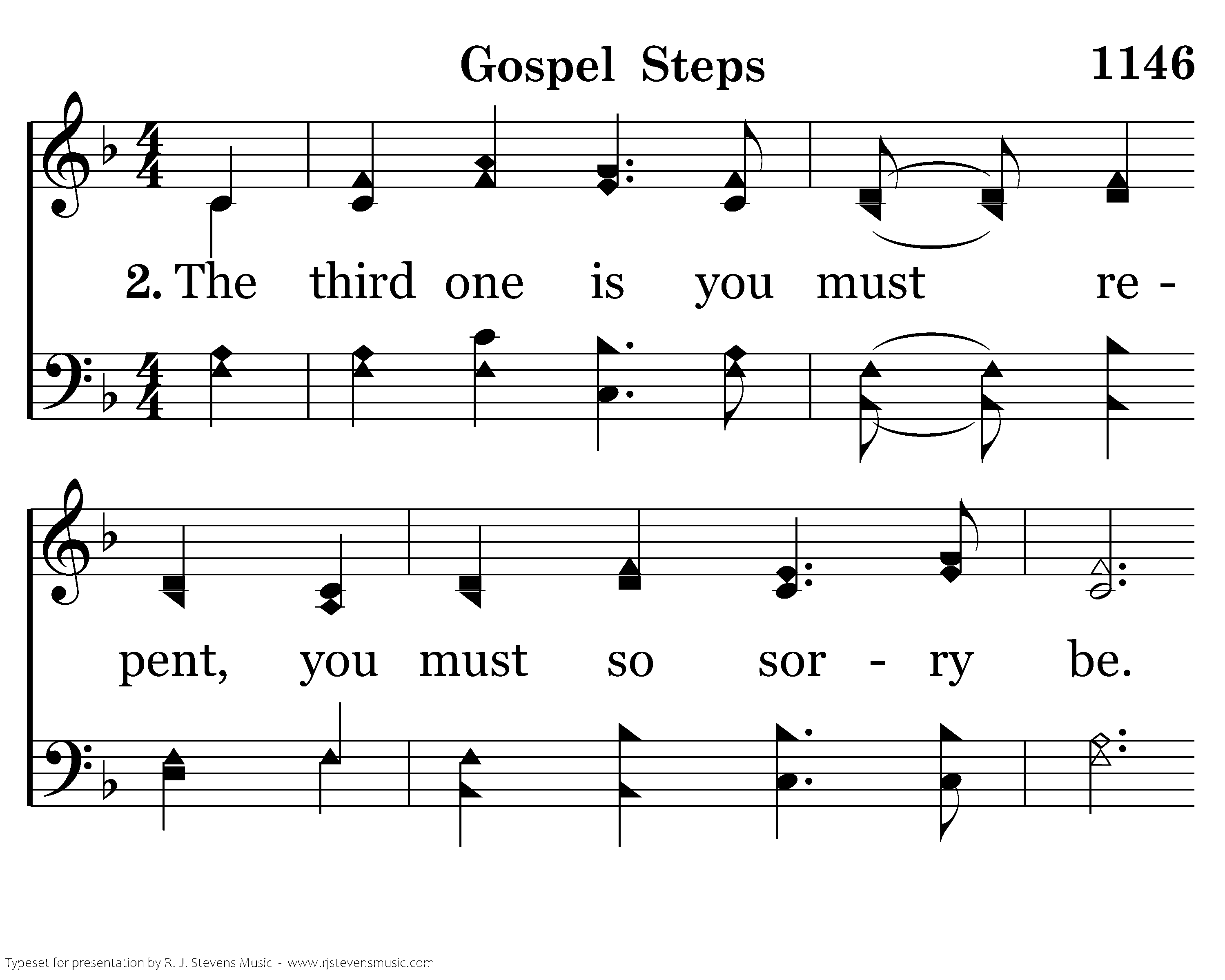 The third one is you must repent, you must so sorry be. You can't make Jesus have regrets He hung upon the tree. Confession is your next step; You'll stand before mankind; You state your faith with all your love and boldness of your mind.