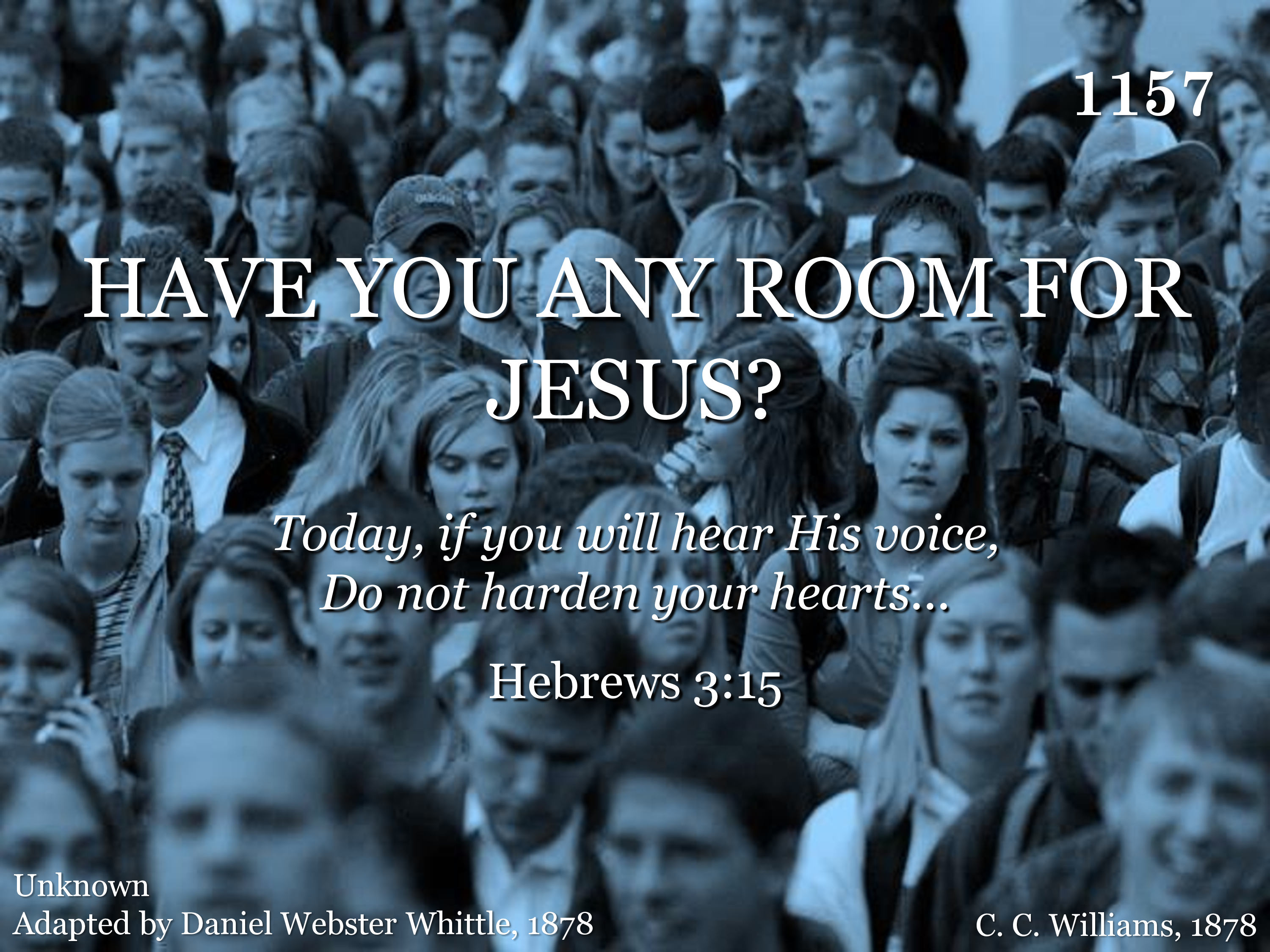 Have you any room for Jesus, As in grace He calls again? O today is time accepted, Tomorrow you may call in vain.