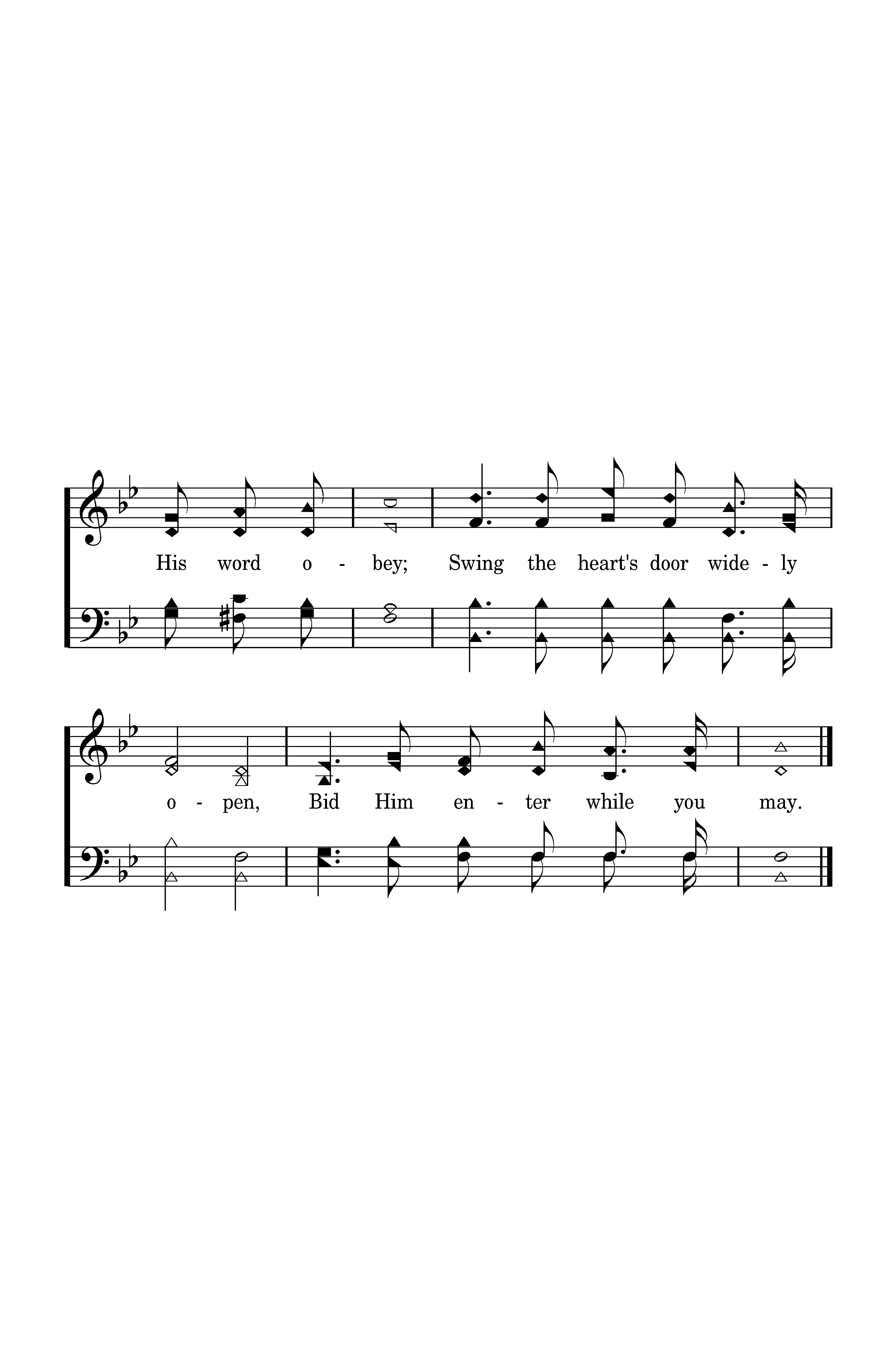 Room for Jesus, King of glory! Hasten now, His word obey; Swing the heart's door widely open, Bid Him enter while you may.