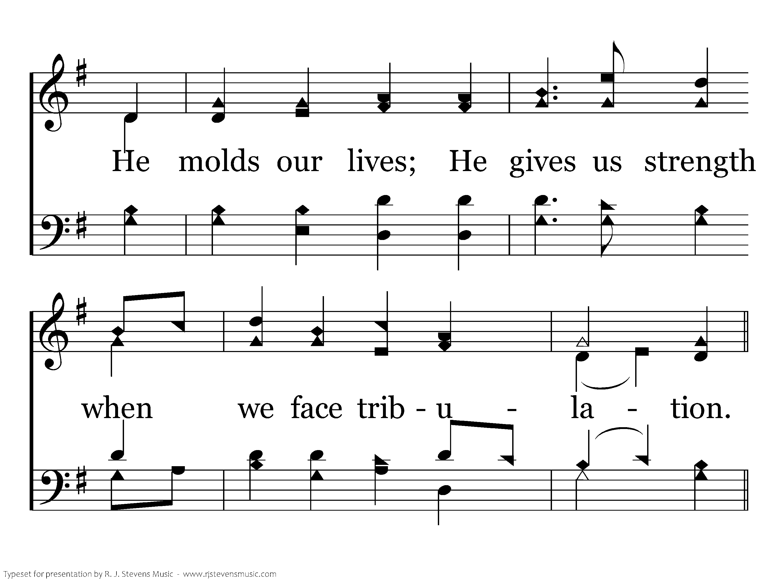 God's workmanship is evident As we seek restoration. He molds our lives; He gives us strength when we face tribulation. "God's workmanship is evident," Should be our exclamation! From age to age, from birth to death, To heaven's jubilation!
