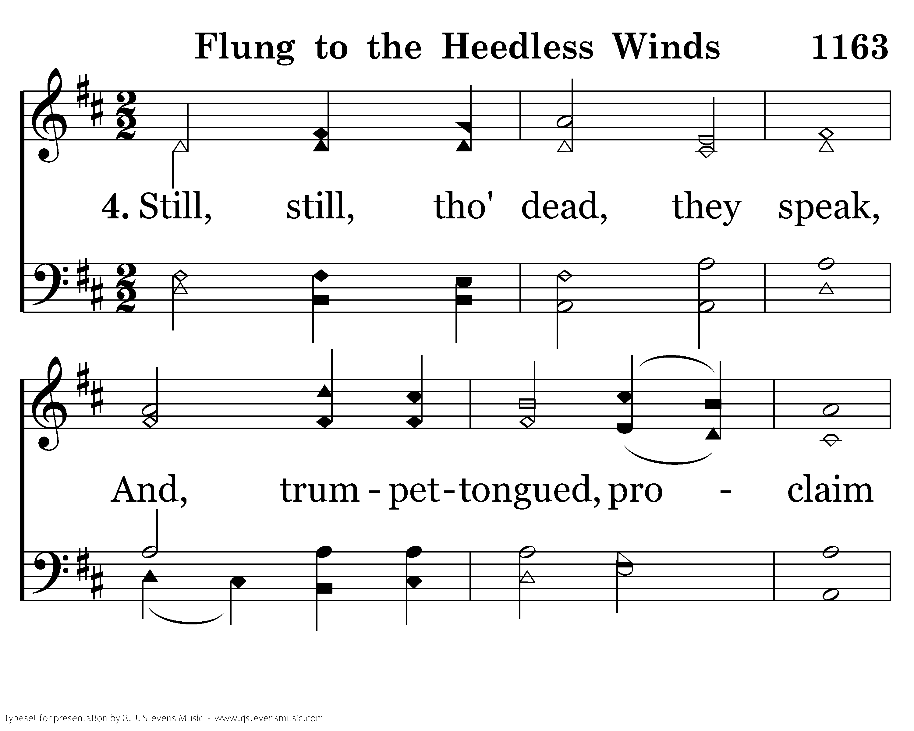 Still, still, tho' dead, they speak, And, trumpet-tongued, proclaim To many_a wak'ning land, The one availing Name.