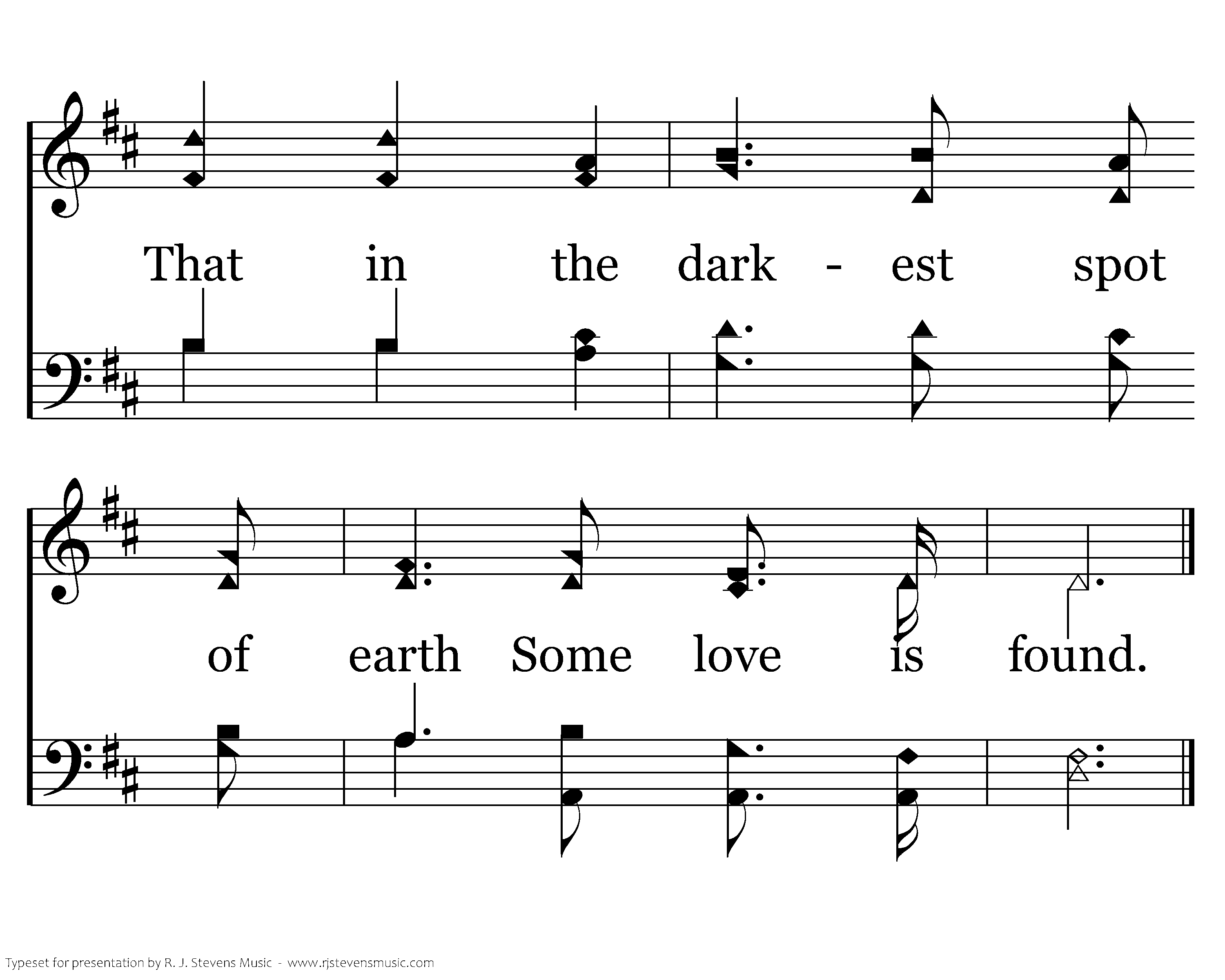 I thank You, too, that You have made Joy to abound; So many gentle thoughts and deeds Circling us round, That in the darkest spot of earth Some love is found.