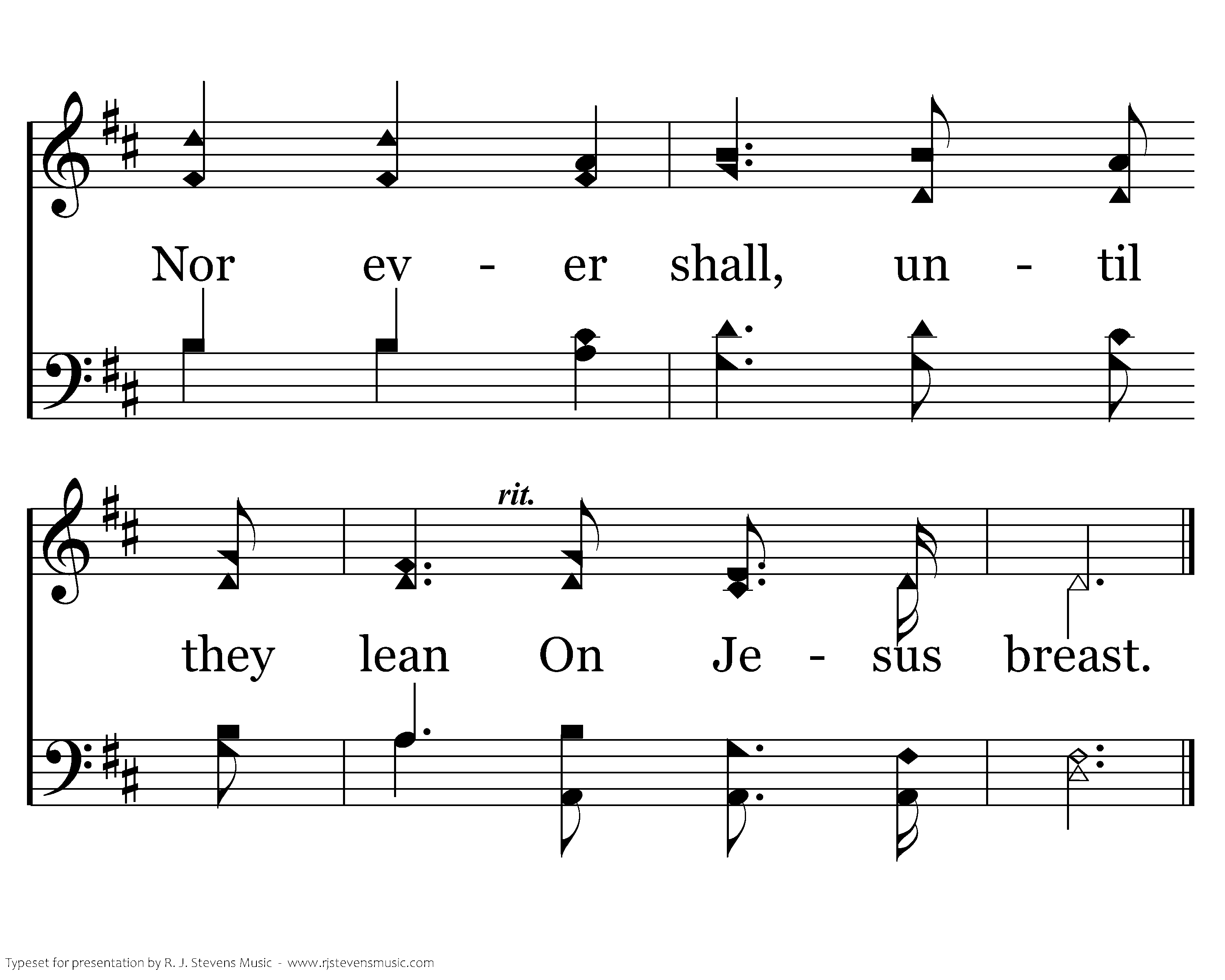 I thank You, Lord, that here our souls, Though amply blessed, Can never find, although they seek, A perfect rest; Nor ever shall, until they lean On Jesus breast.