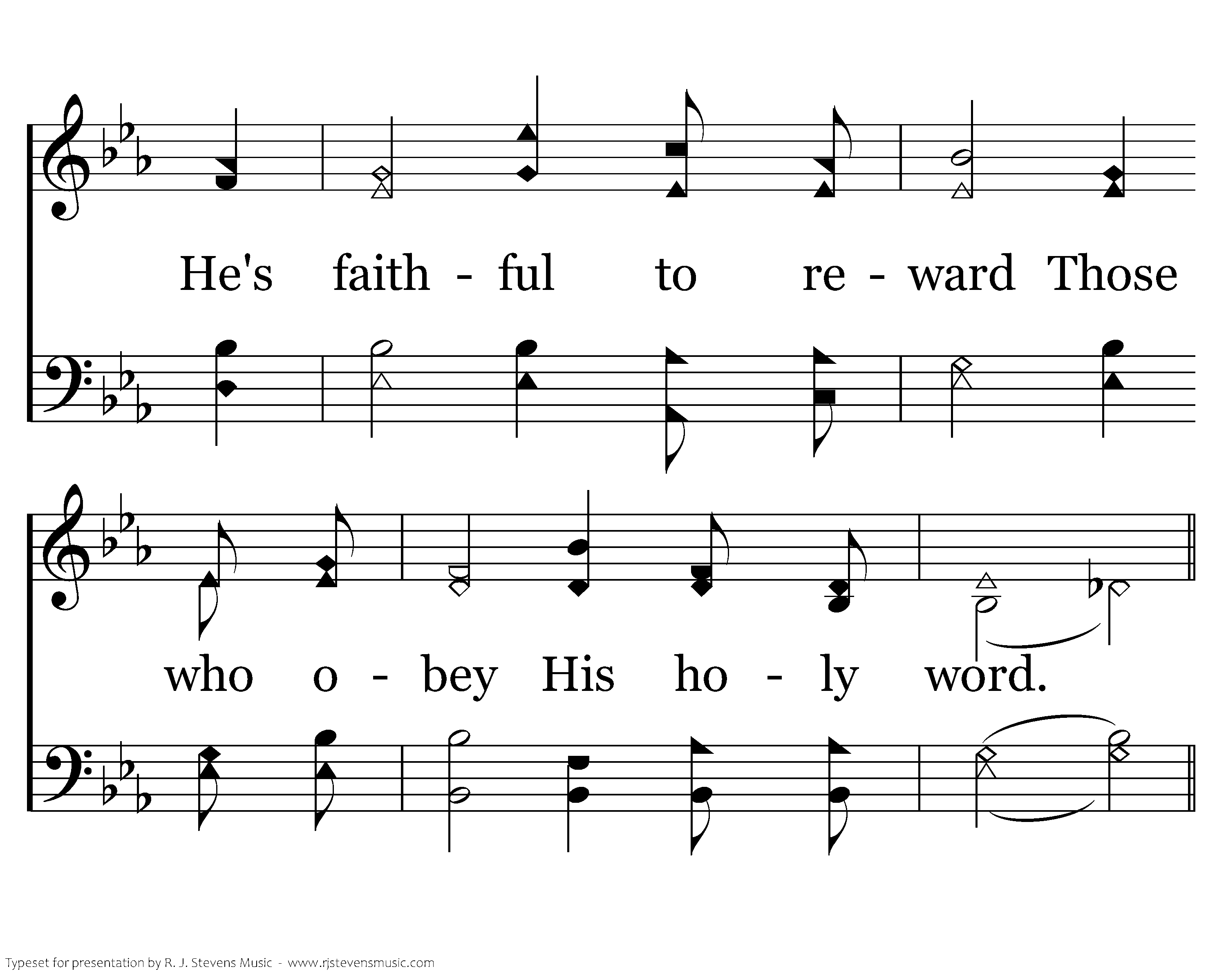 Righteous is Jehovah! He is just; He is the Lord; He's faithful to reward Those who obey His holy word.