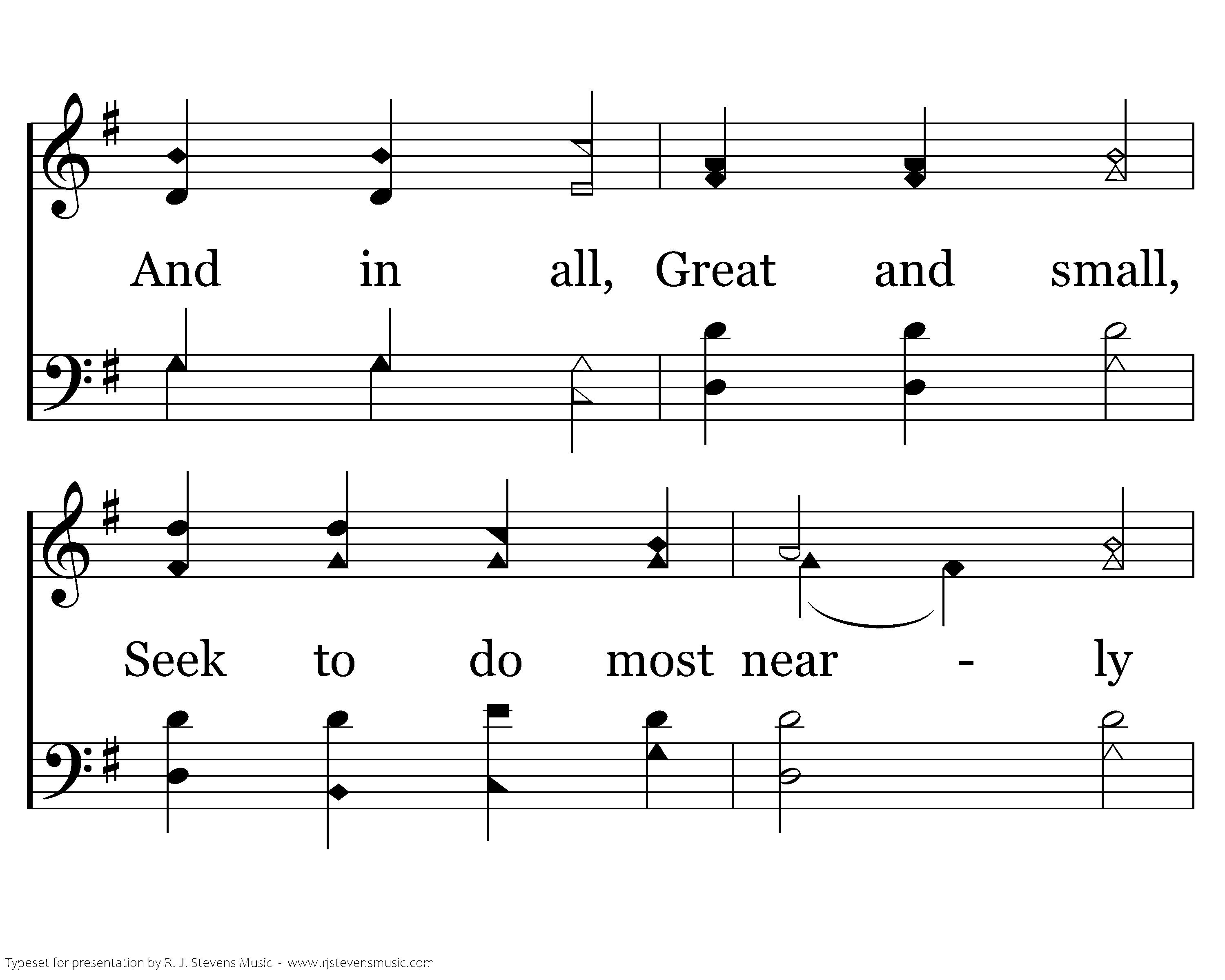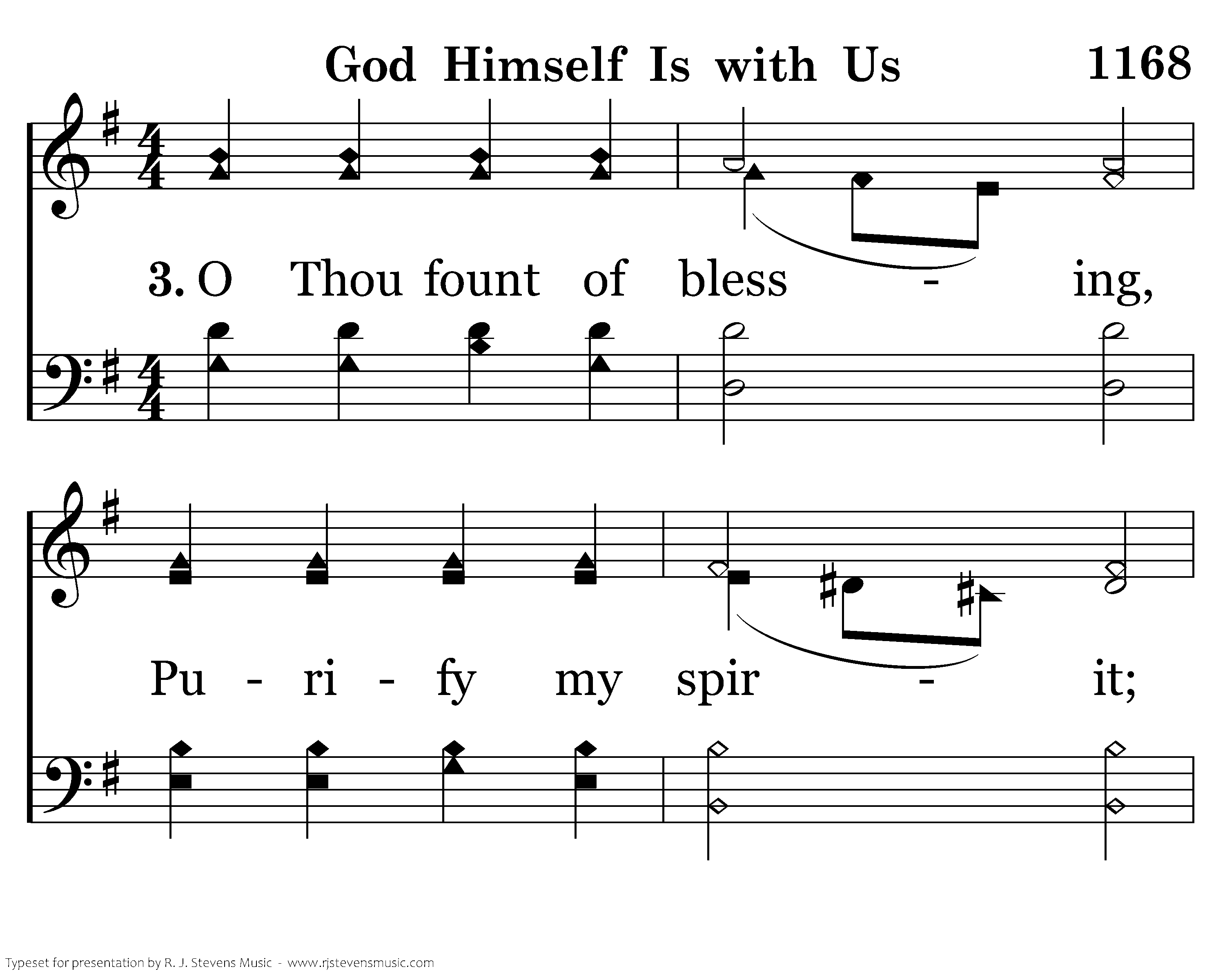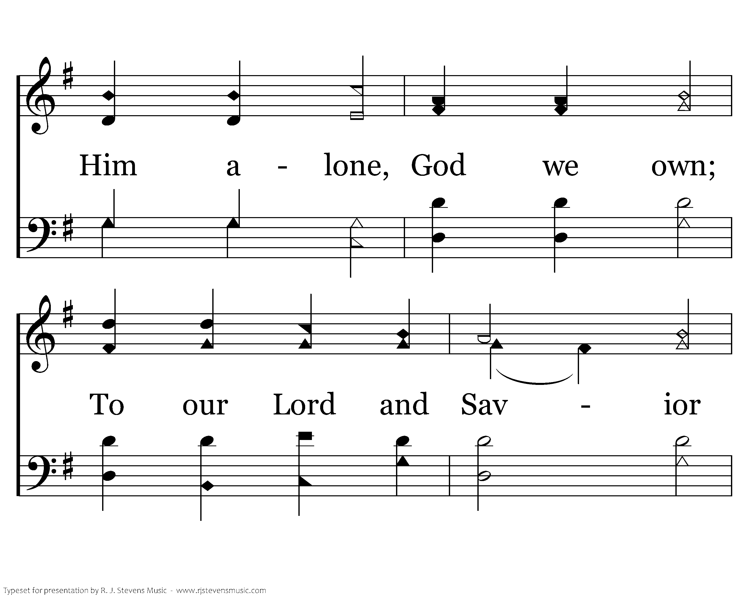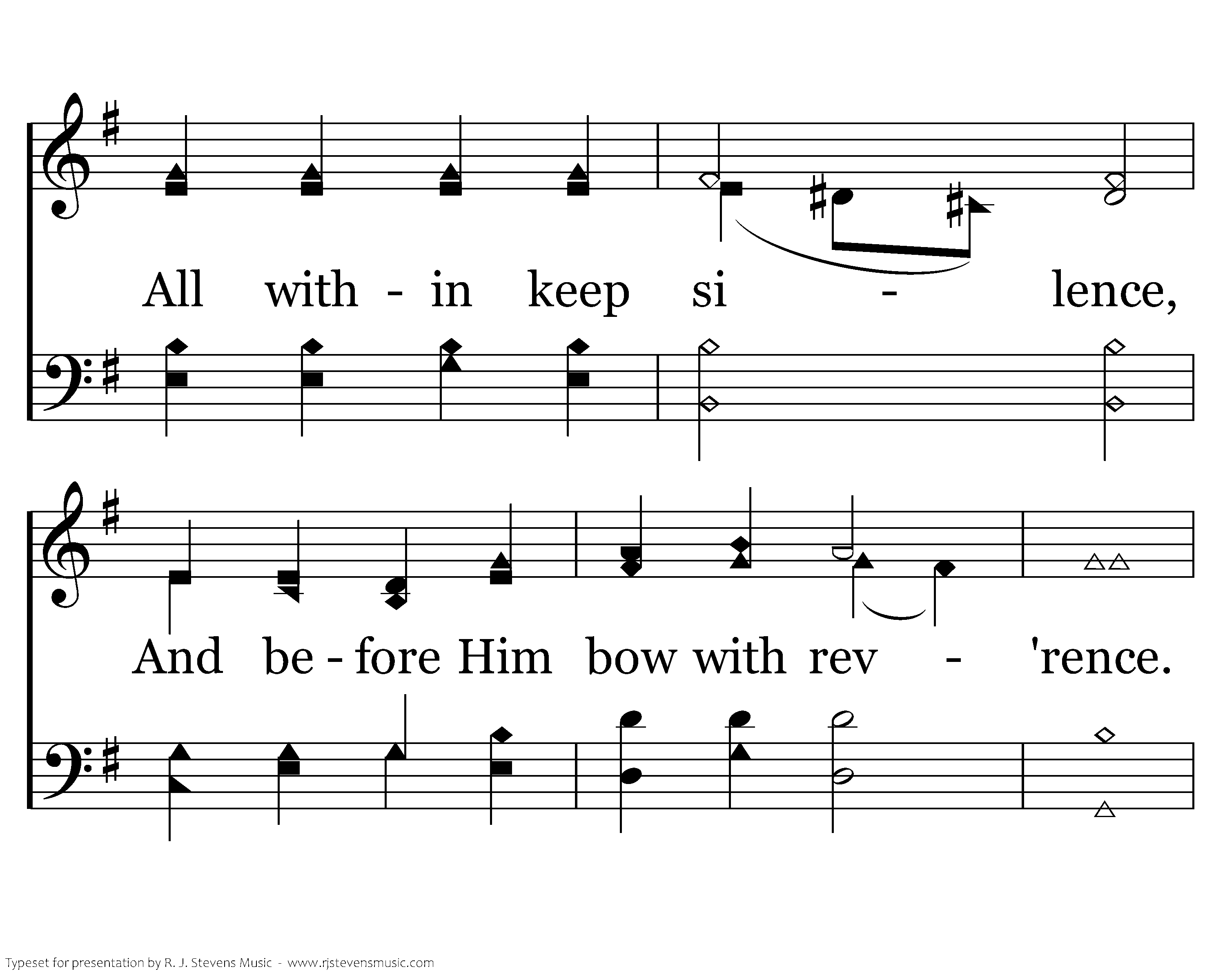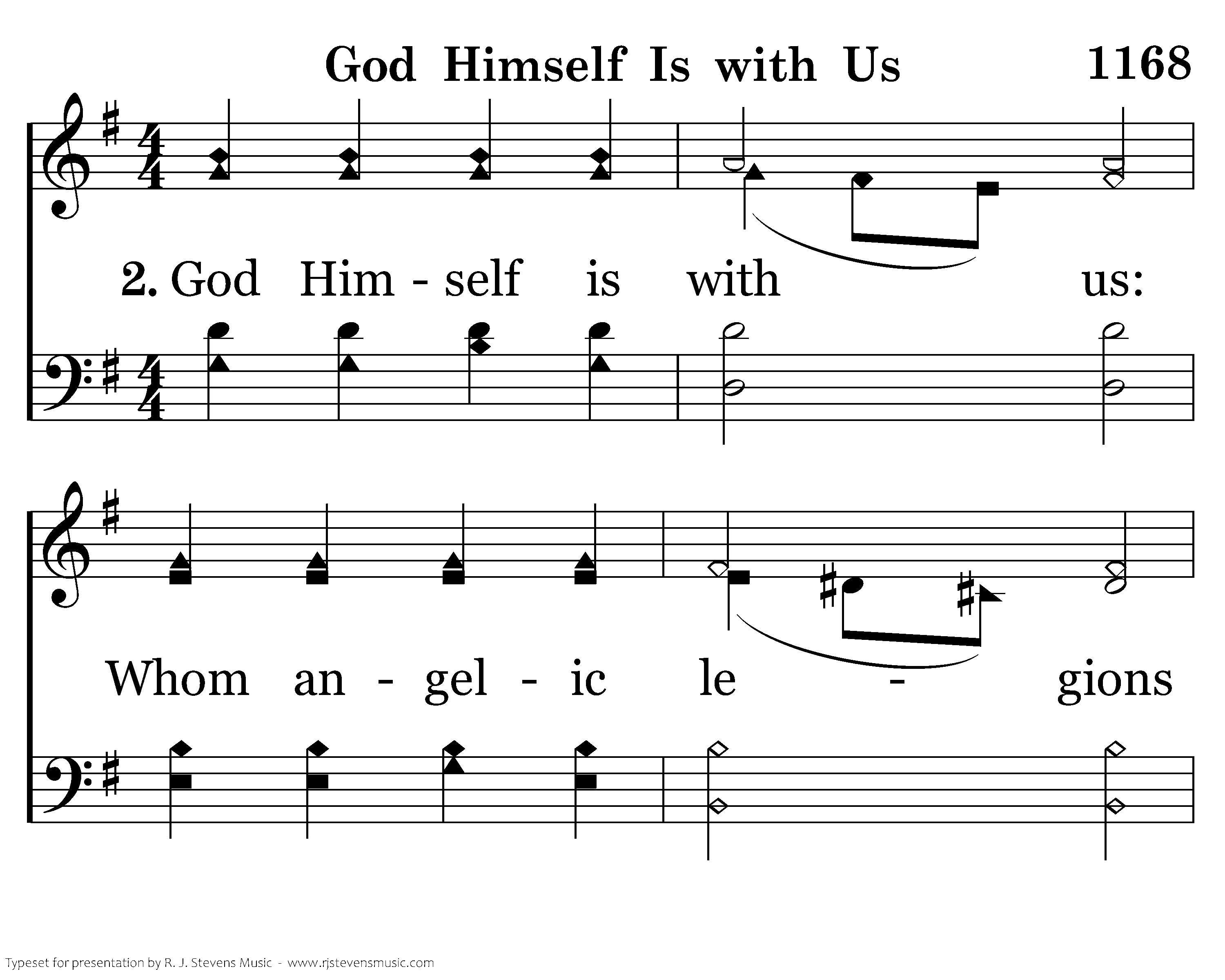 God Himself is with us! Let us now adore Him, And with awe appear before Him. God is in His temple, All within keep silence, And before Him bow with rev'rence. Him alone, God we own; To our Lord and Savior Praises sing forever.