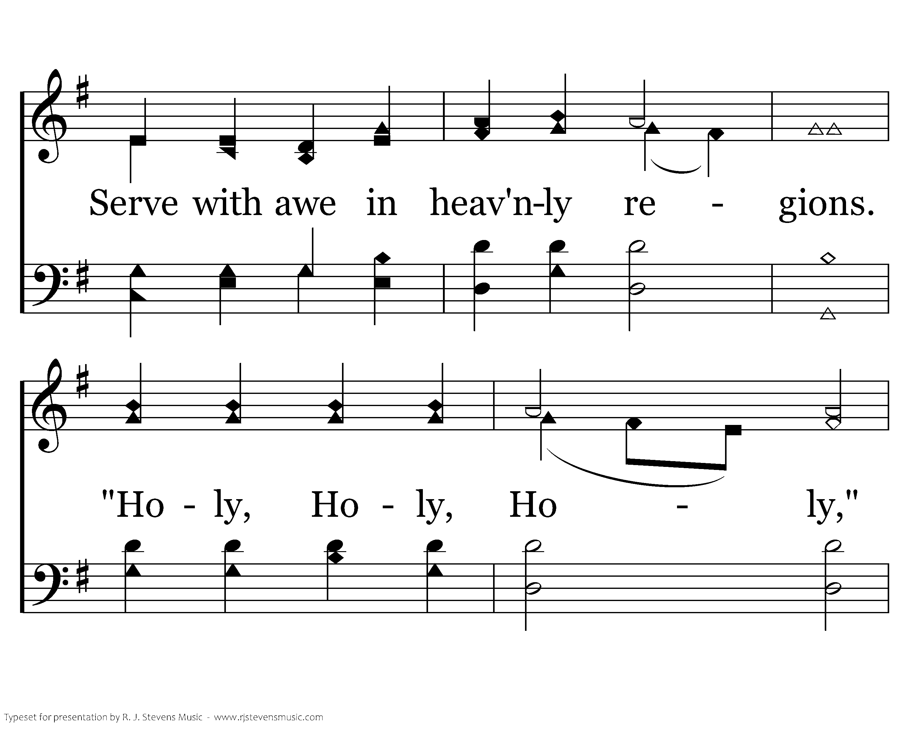 God Himself is with us: Whom angelic legions Serve with awe in heav'nly regions. "Holy, Holy, Holy," Sing the hosts of heaven, Praise to God be ever given. Bow Thy ear To us here; Hear, O Christ, the praises That Thy church now raises.
