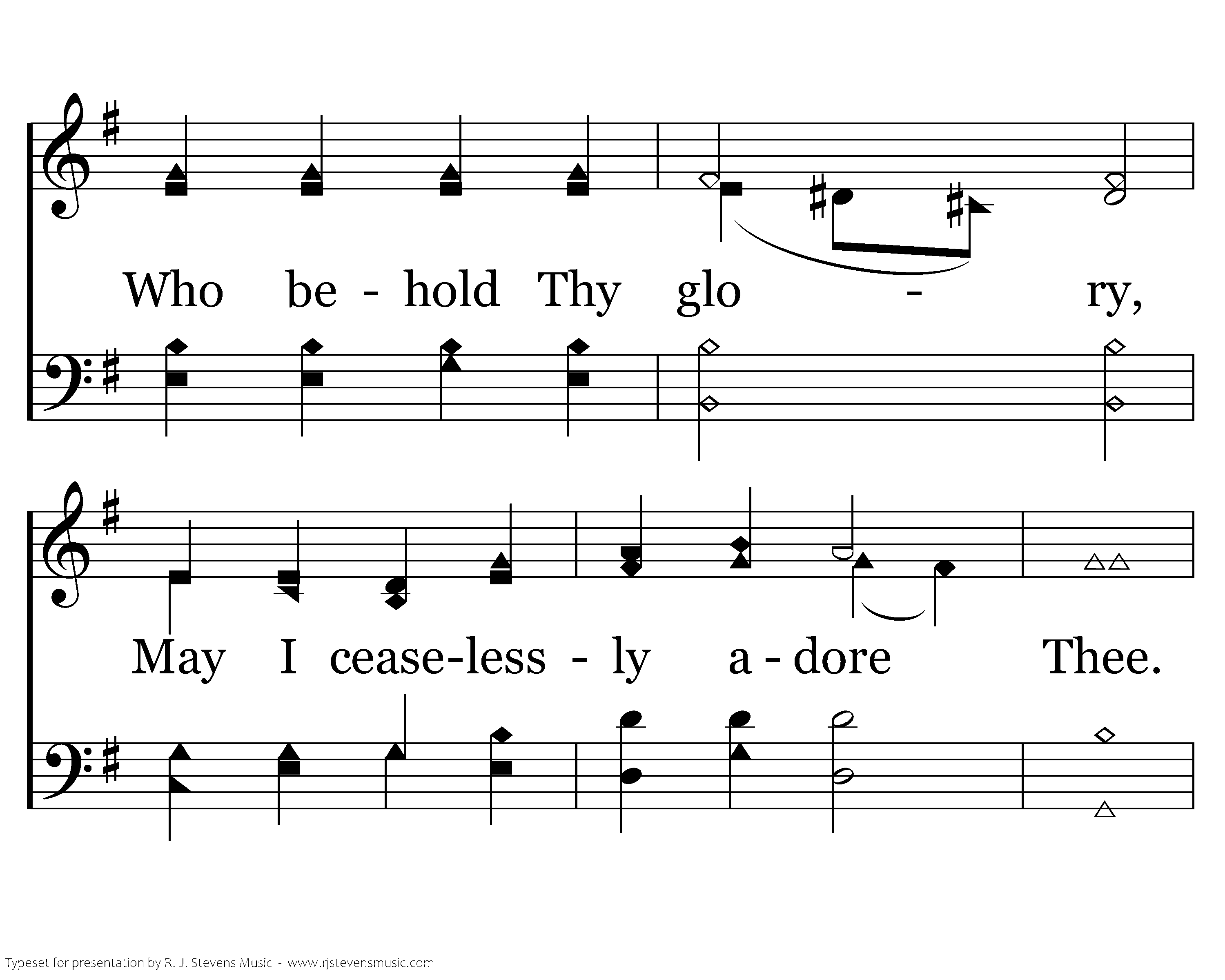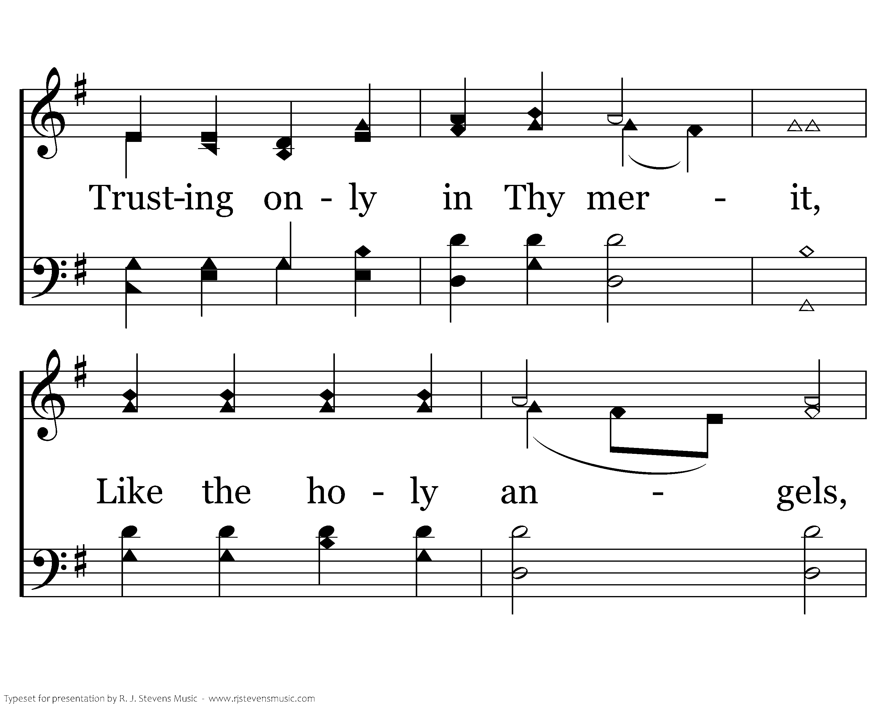 O Thou fount of blessing, Purify my spirit; Trusting only in Thy merit, Like the holy angels, Who behold Thy glory, May I ceaselessly adore Thee. And in all, Great and small, Seek to do most nearly What Thou lovest dearly.