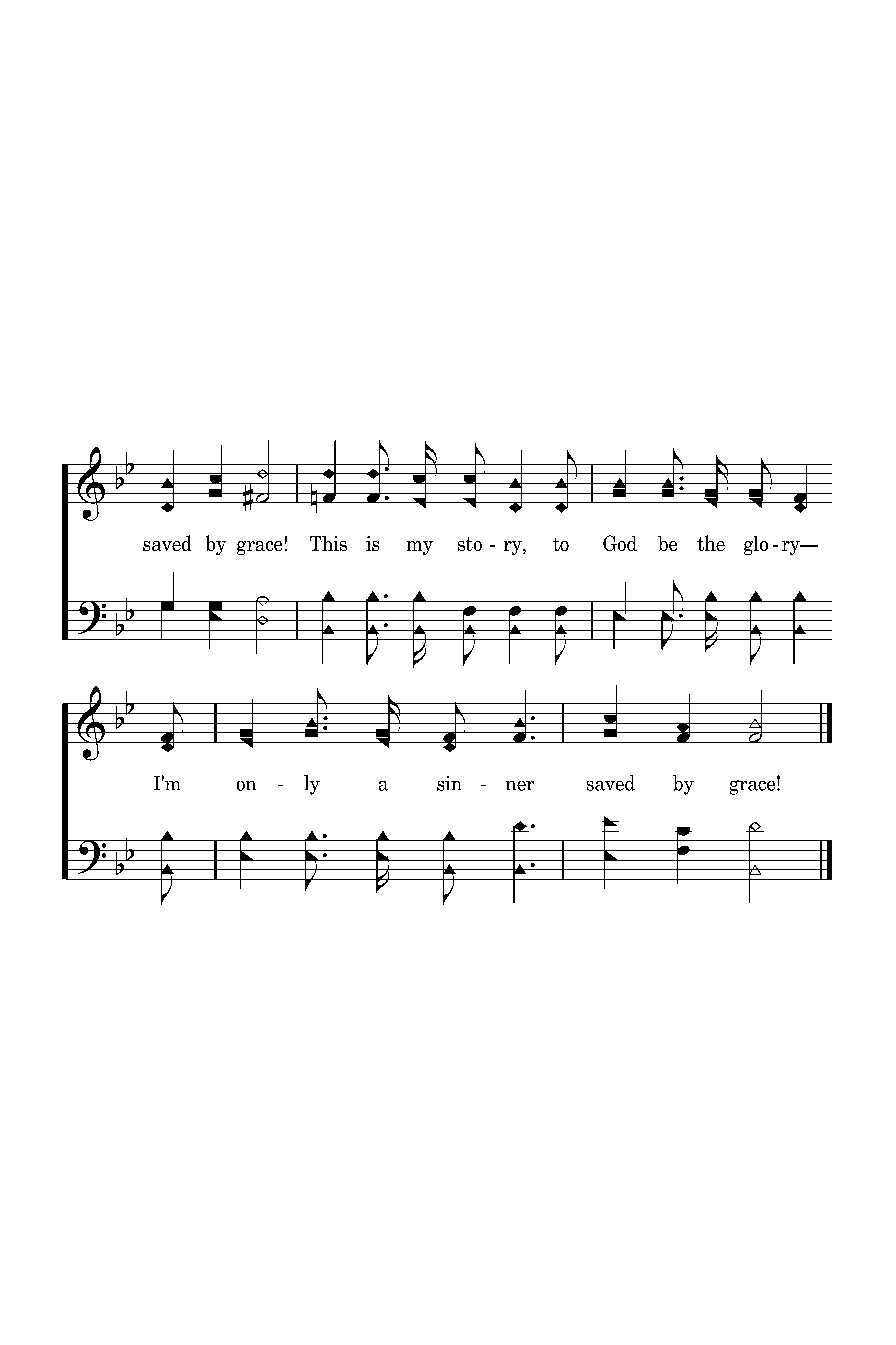 Only a sinner saved by grace! Only a sinner saved by grace! This is my story, to God be the glo-ry I'm only a sinner saved by grace!