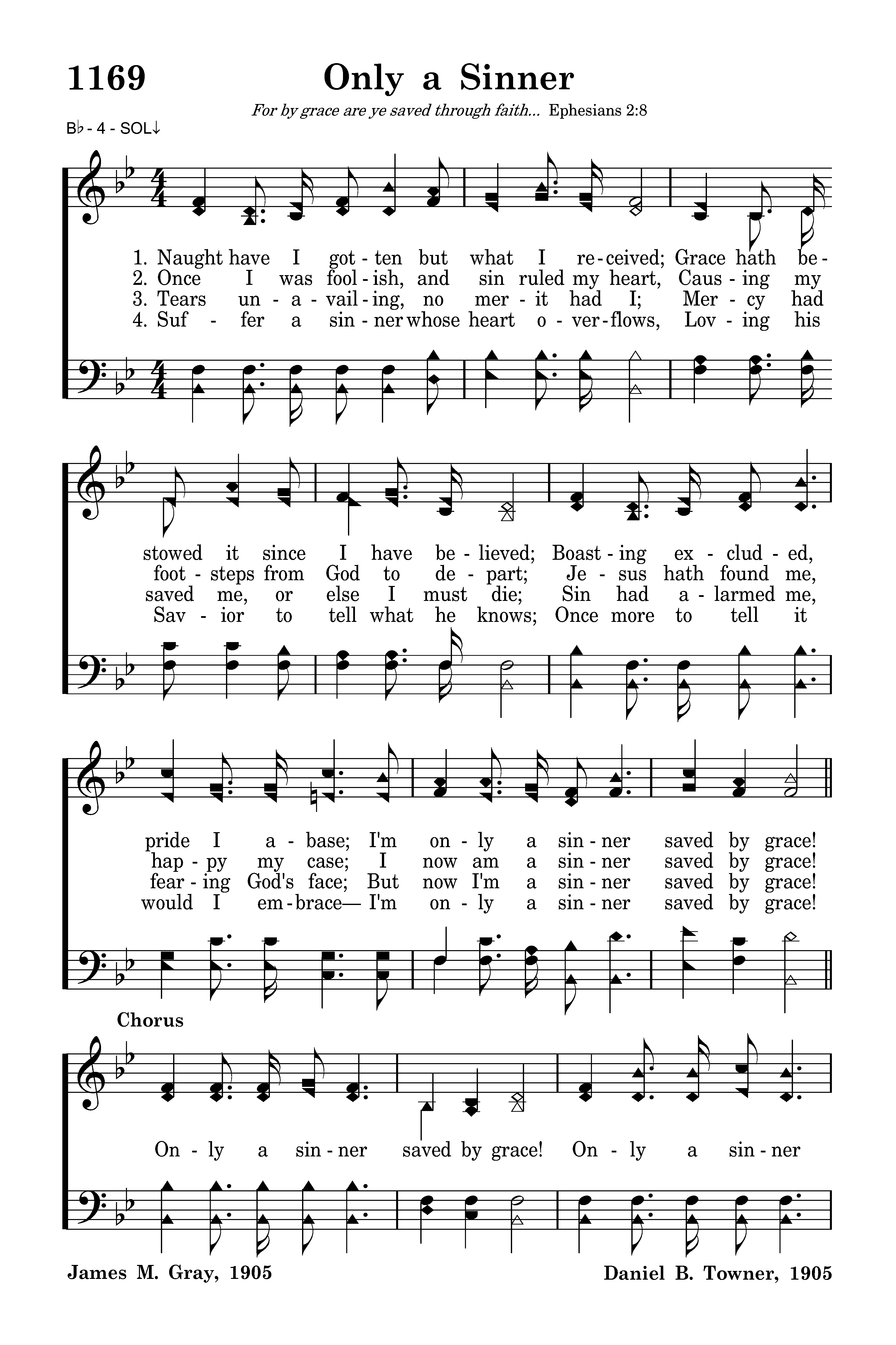 Suffer a sinner whose heart overflows, Loving his Savior to tell what he knows; Once more to tell it would I embrace I'm only a sinner saved by grace!