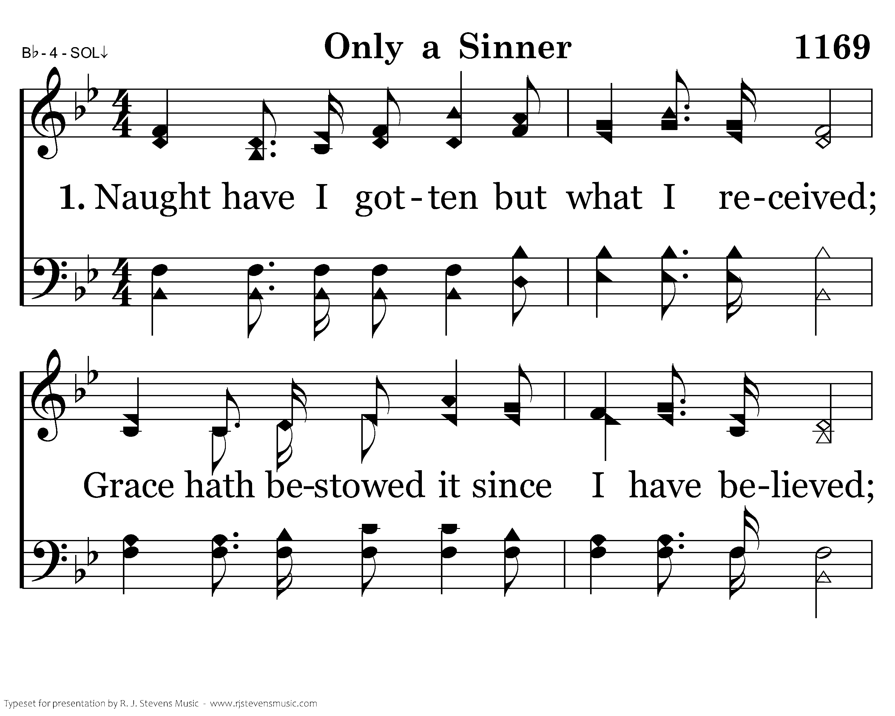Naught have I gotten but what I received; Grace hath bestowed it since I have believed; Boasting excluded, pride I abase; I'm only a sinner saved by grace!