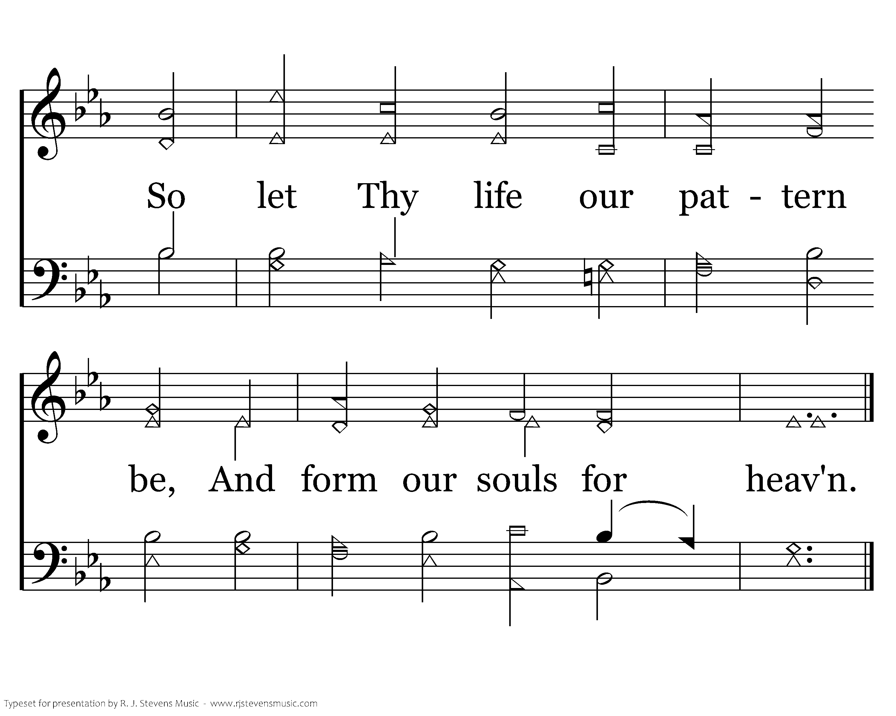 Lord, as to Thy dear cross we flee, And plead to be forgiv'n, So let Thy life our pattern be, And form our souls for heav'n.