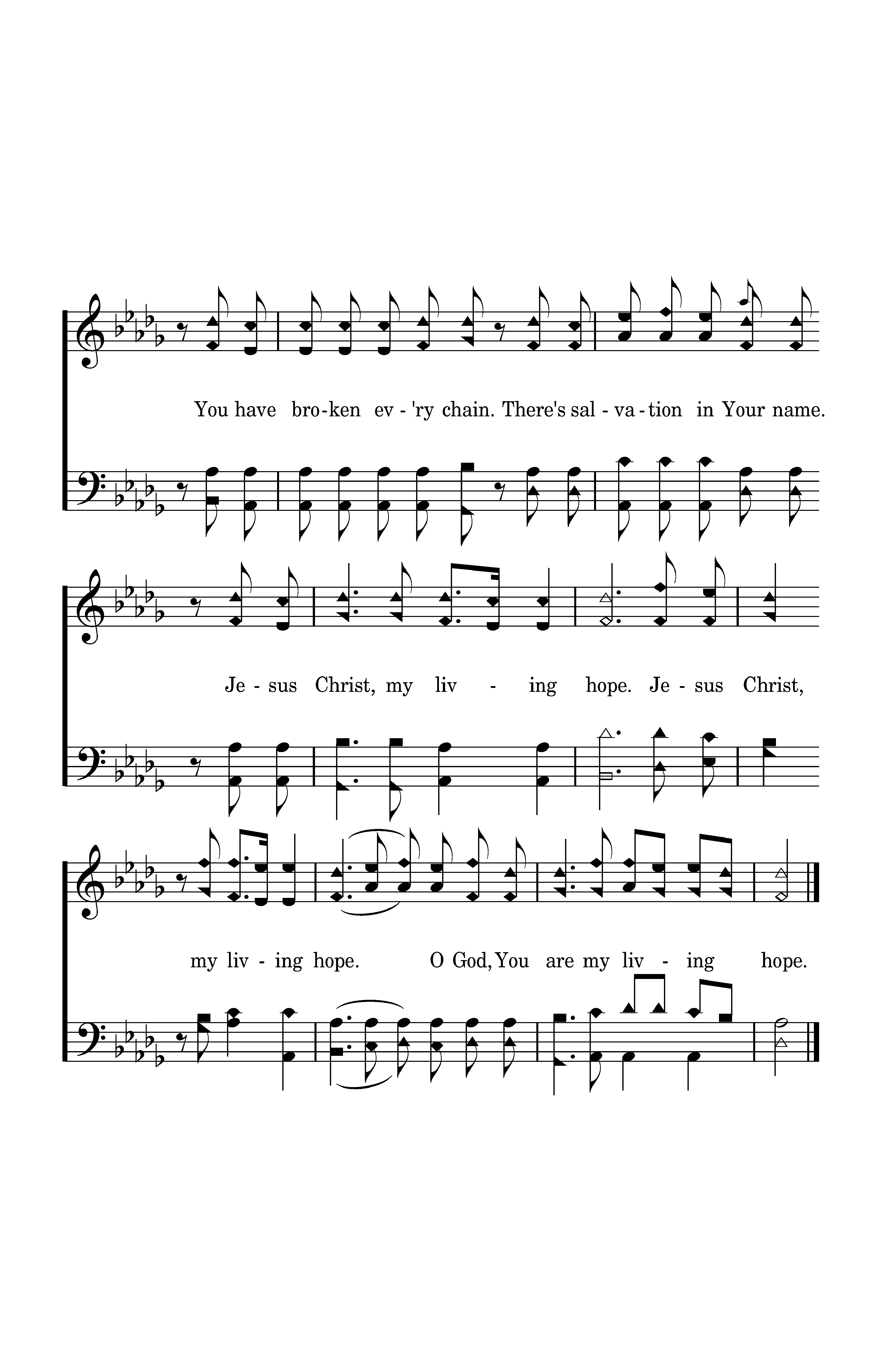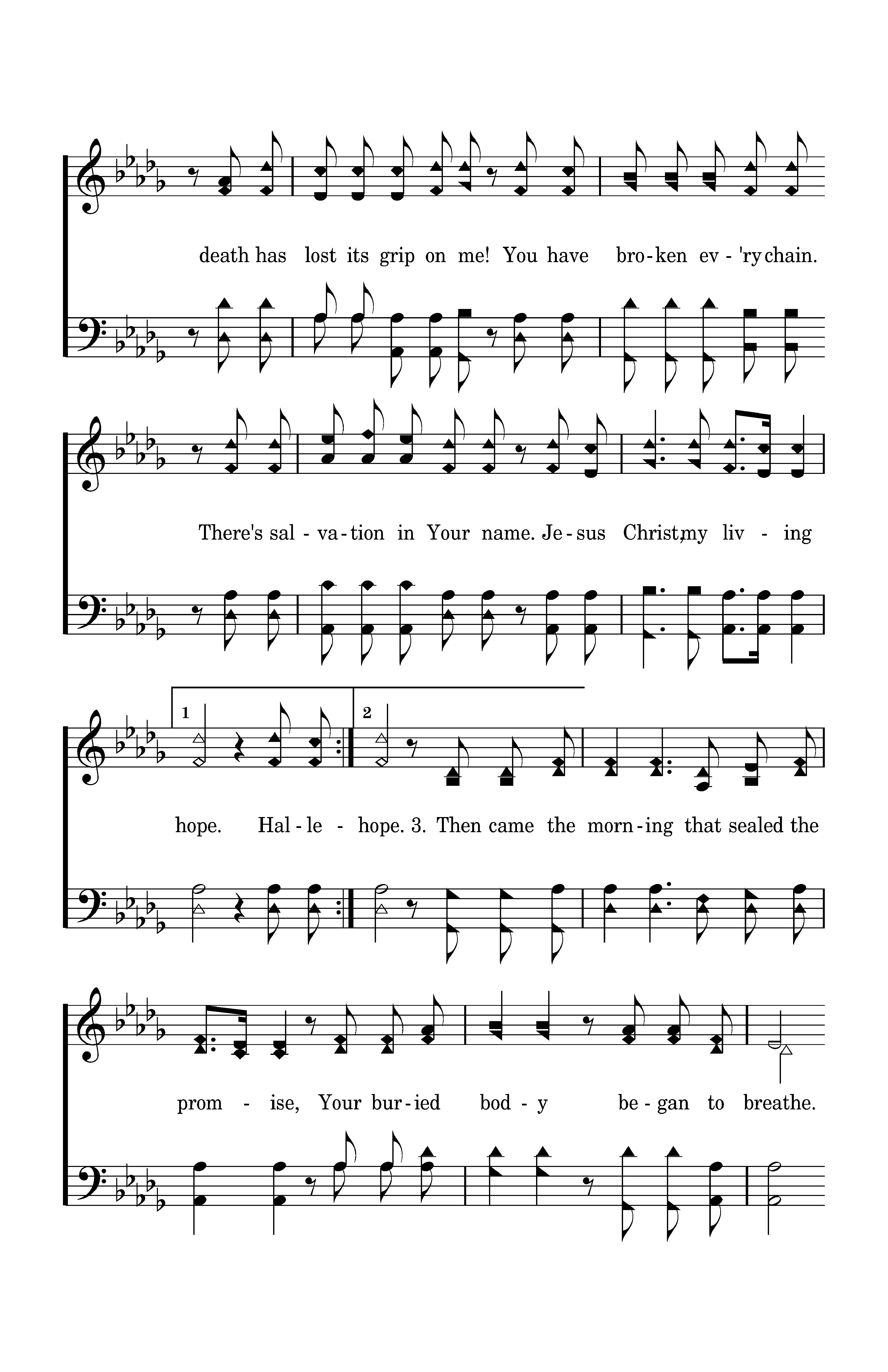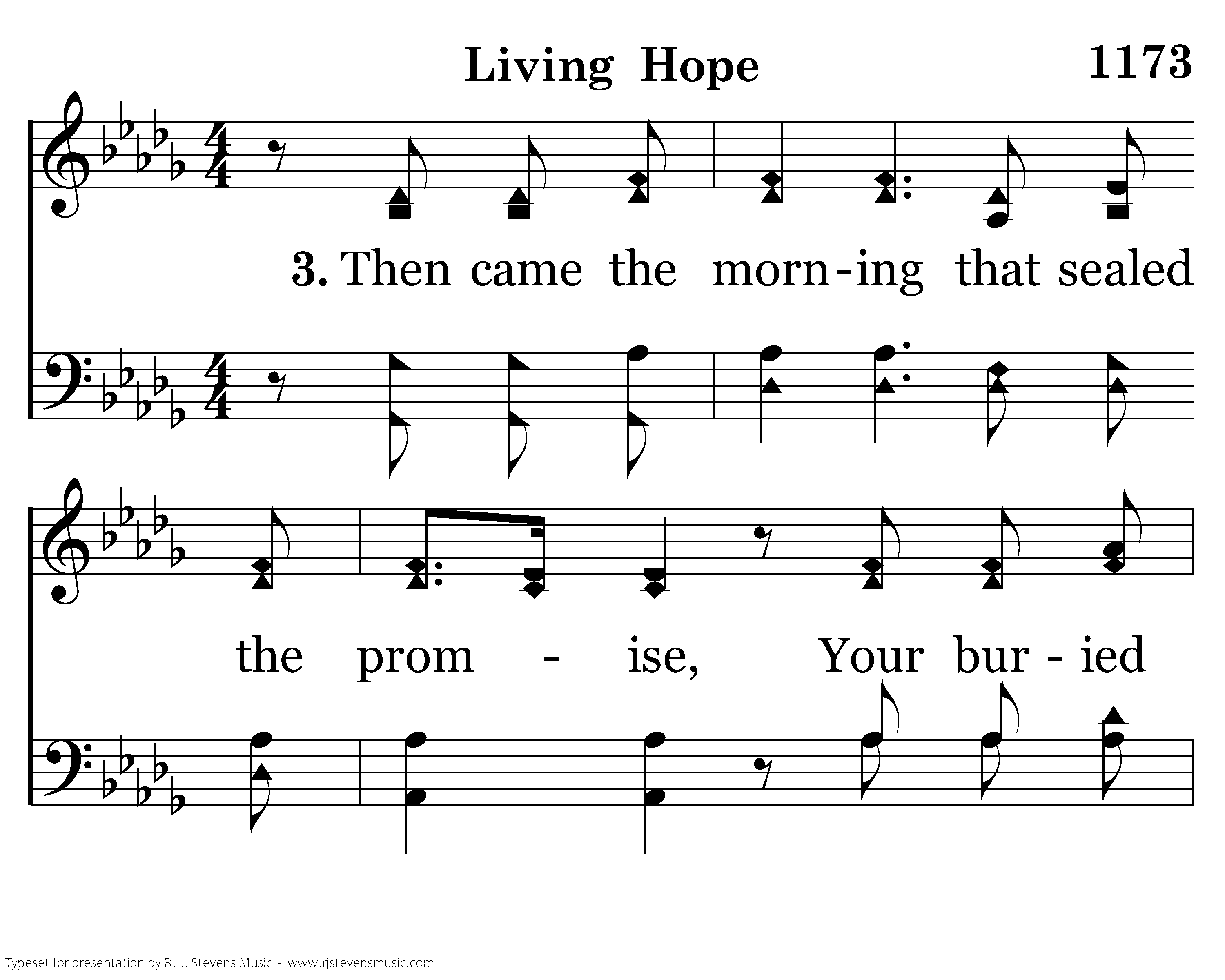 Then came the morning that sealed the promise, Your buried body began to breathe. Out of the silence, the Roaring Lion declared the grave has no claim on me. Then came the morning that sealed the promise, Your buried body began to breathe. Out of the silence, the Roaring Lion declared the grave has no claim on me. Jesus, Yours is the victory! Hallelujah, praise the One who set me free! Hallelujah, death has lost its grip on me! You have broken ev'ry chain. There's salvation in Your name. Jesus Christ, my living hope. Jesus Christ, my living hope. O God, You are my living hope.