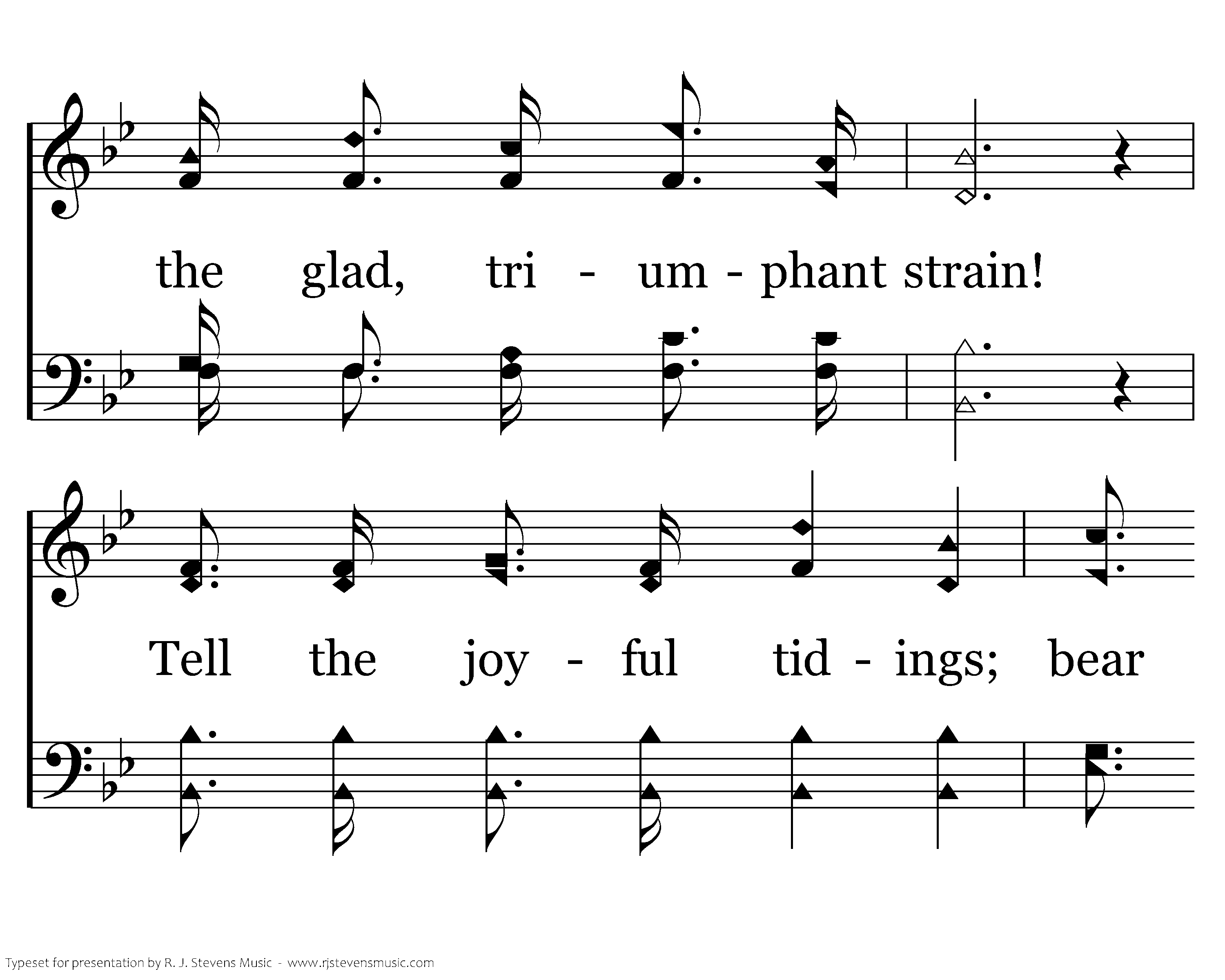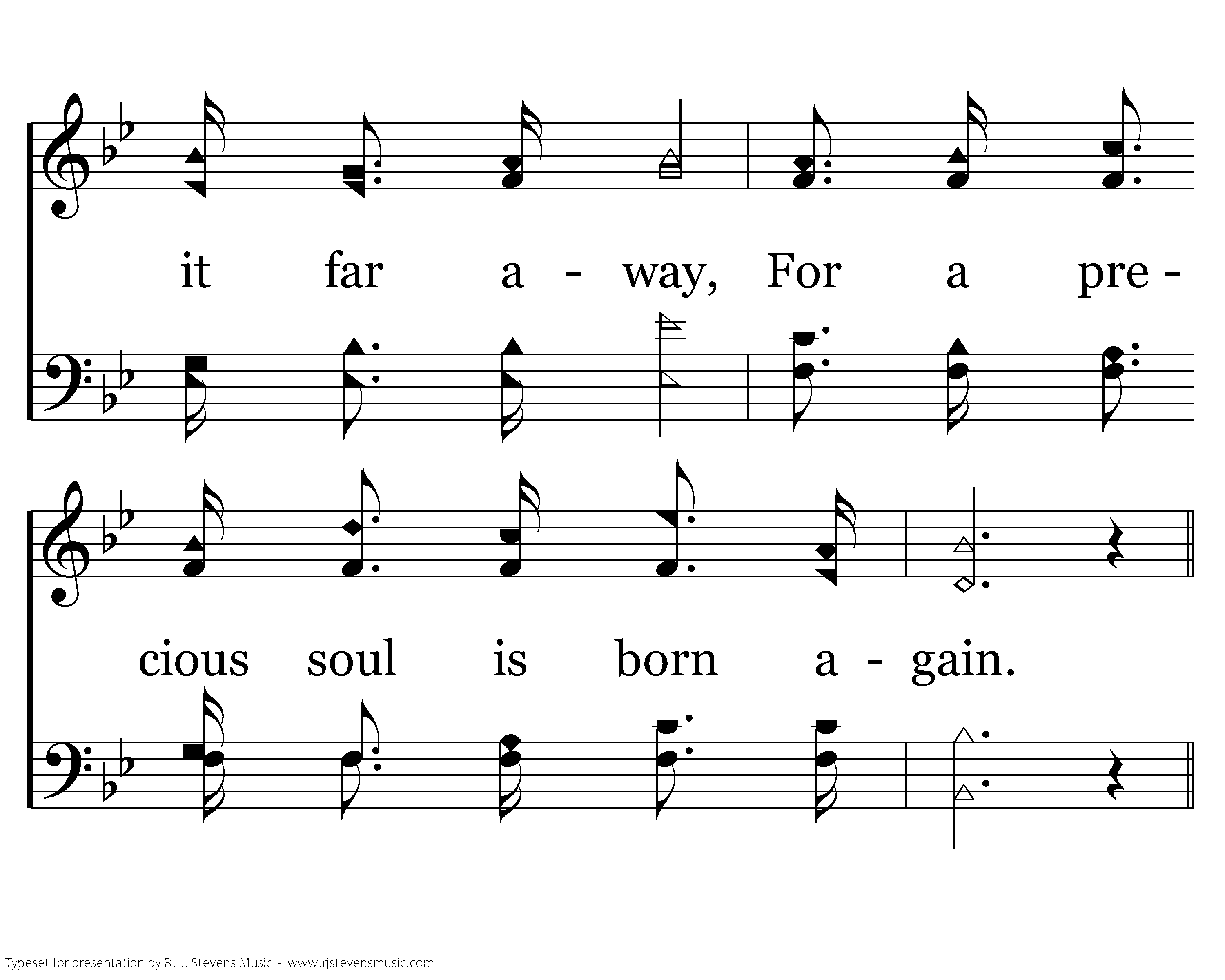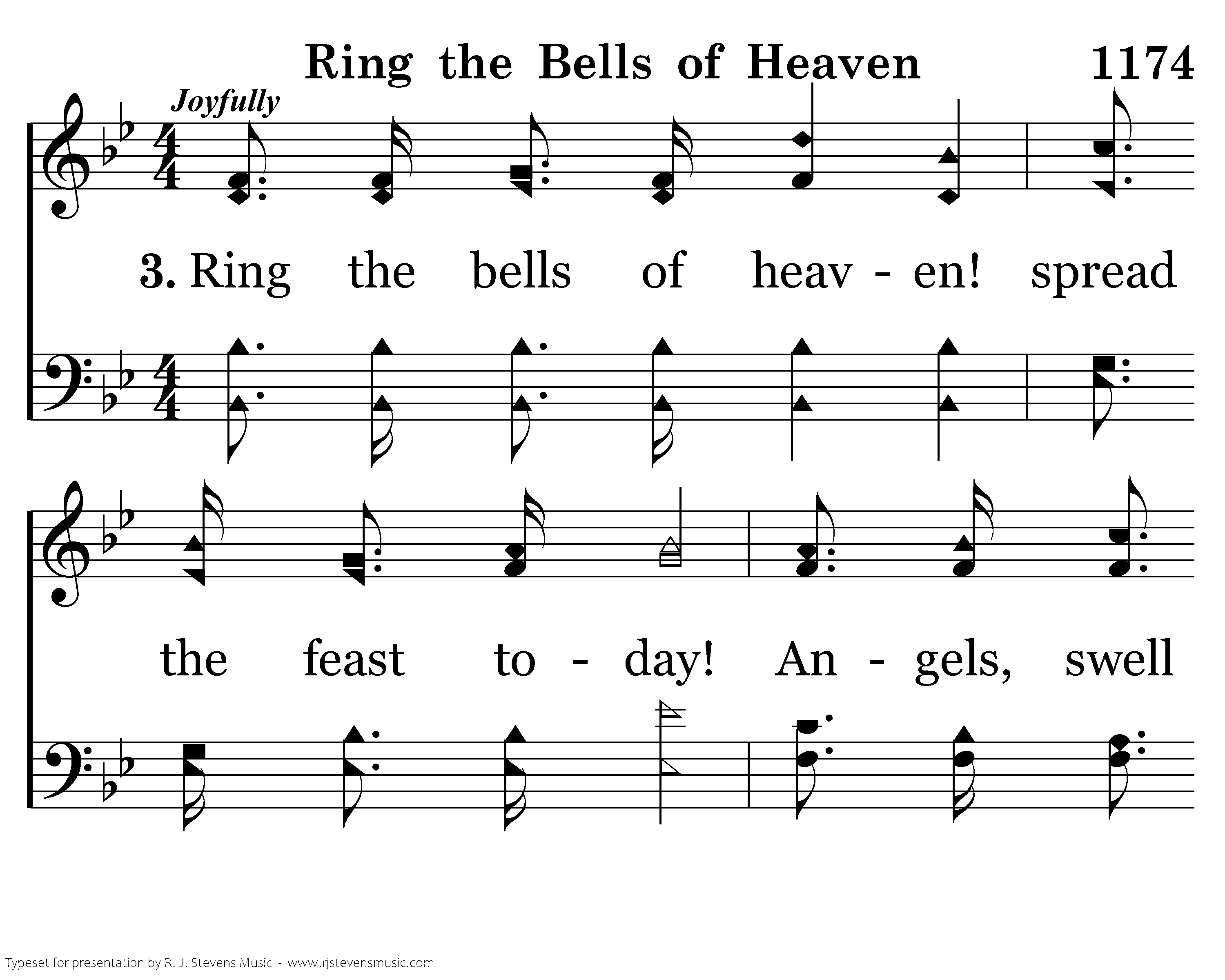 Ring the bells of heaven! spread the feast today! Angels, swell the glad, triumphant strain! Tell the joyful tidings; bear it far away, For a precious soul is born again.