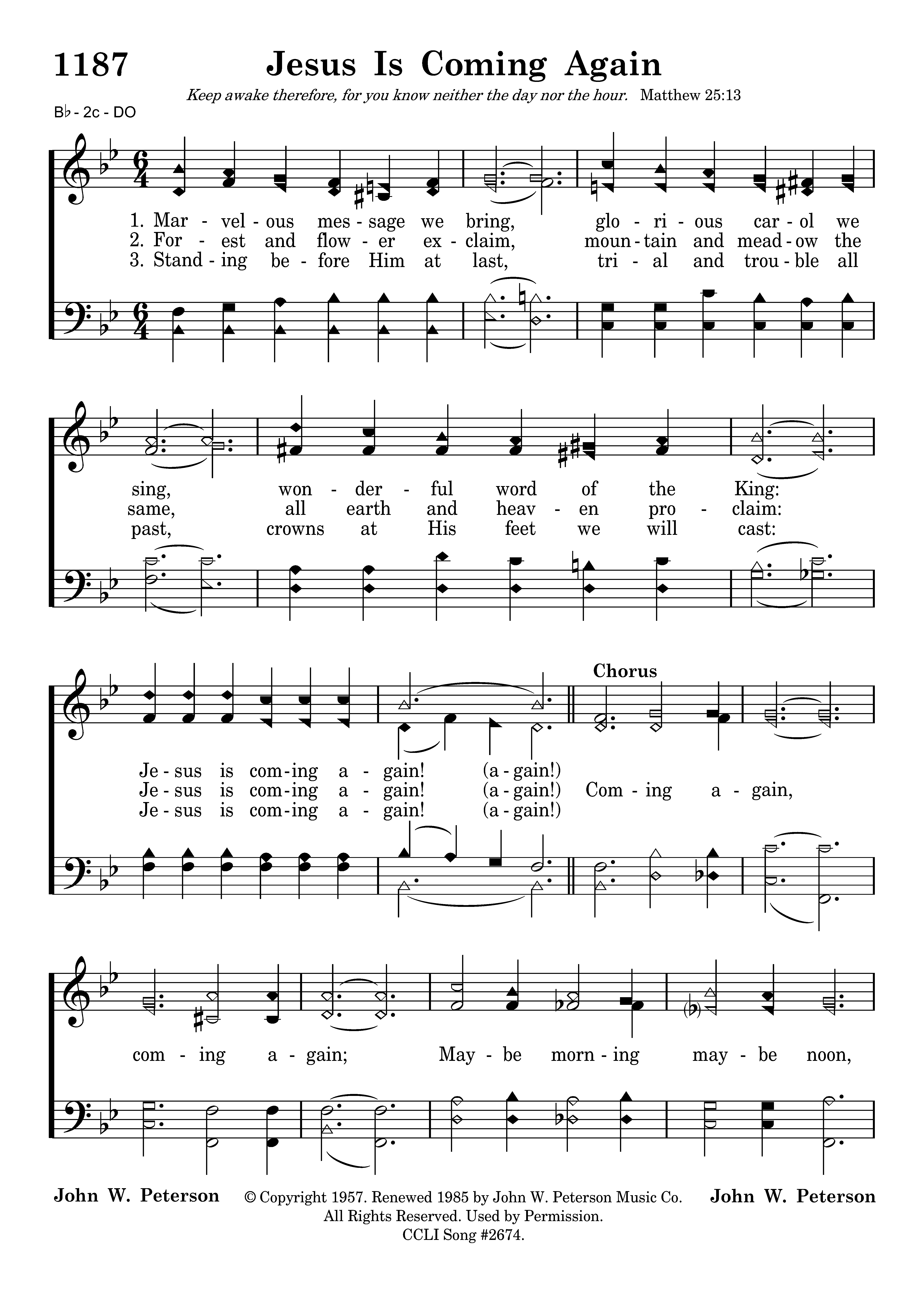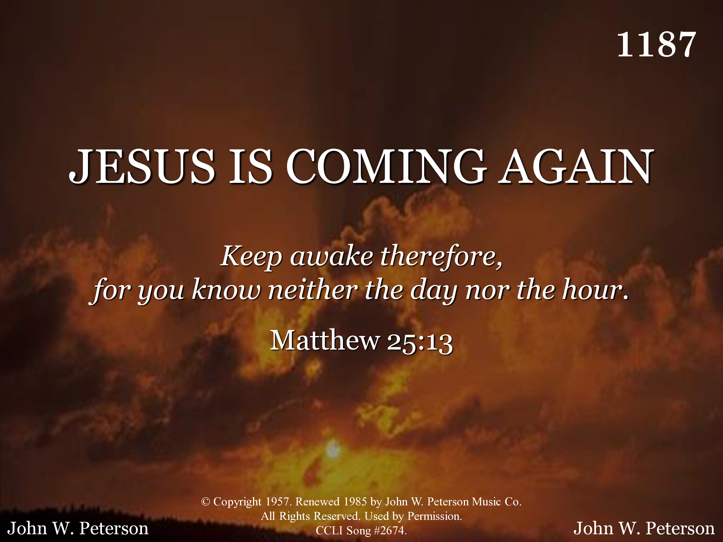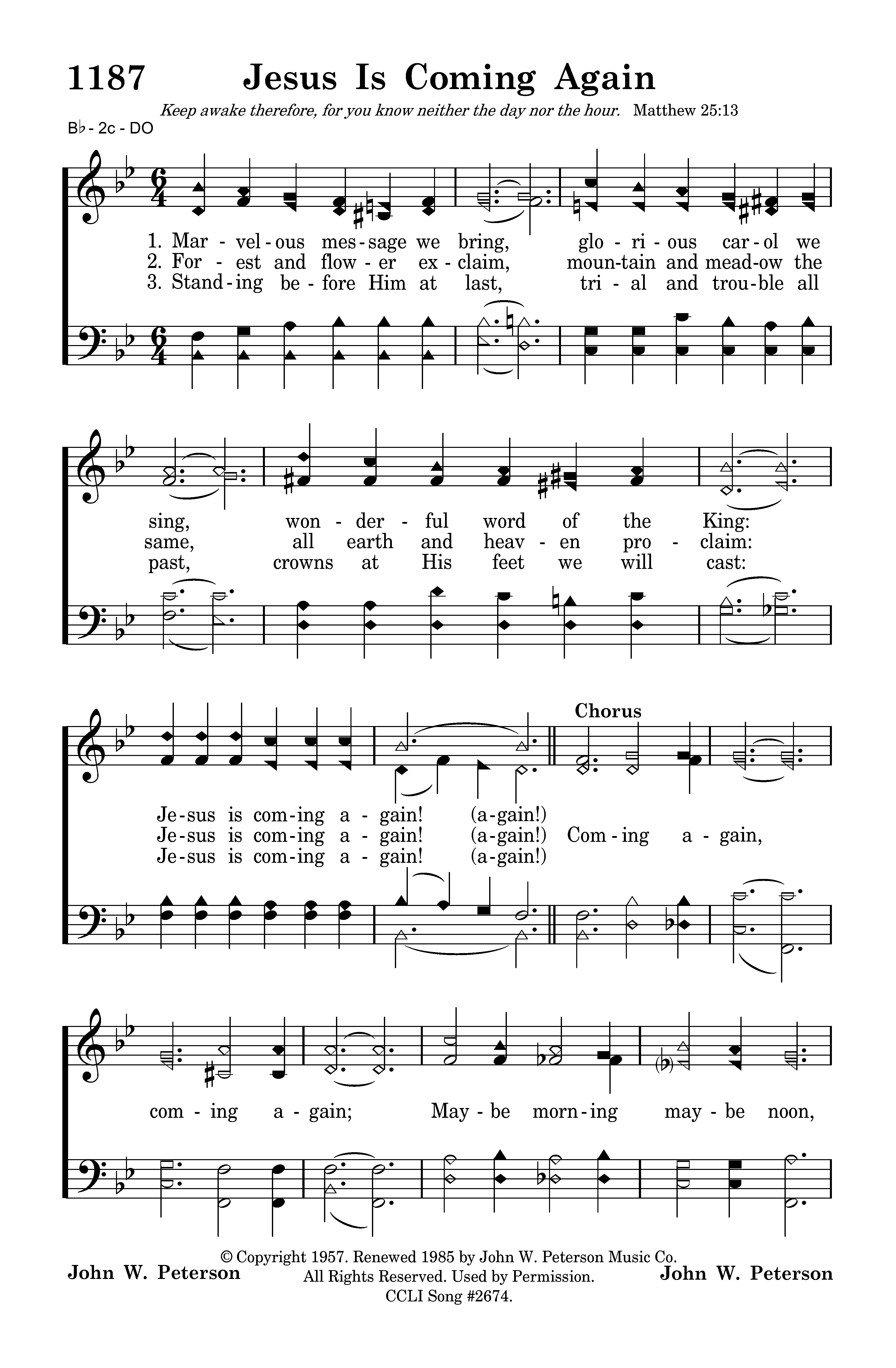 - Copyright © 1957. Renewed 1985 by John W. Peterson Music Co. (Admin. by John W. Peterson Music Co.) All Rights Reserved. Used by Permission.