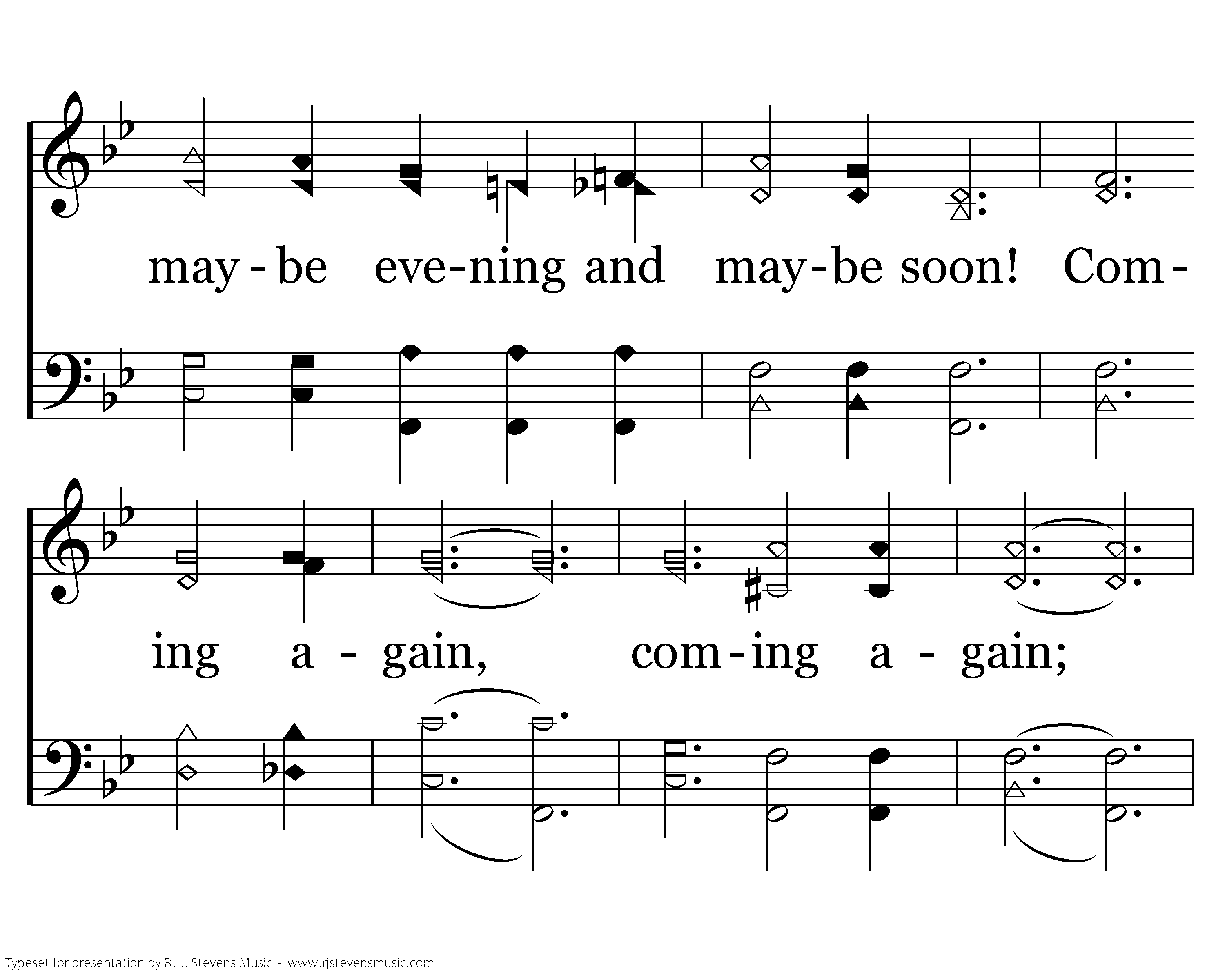 Coming again, coming again; Maybe morning maybe noon, maybe evening and maybe soon! Coming again, coming again; O what a wonderful day it will be Jesus is coming again!